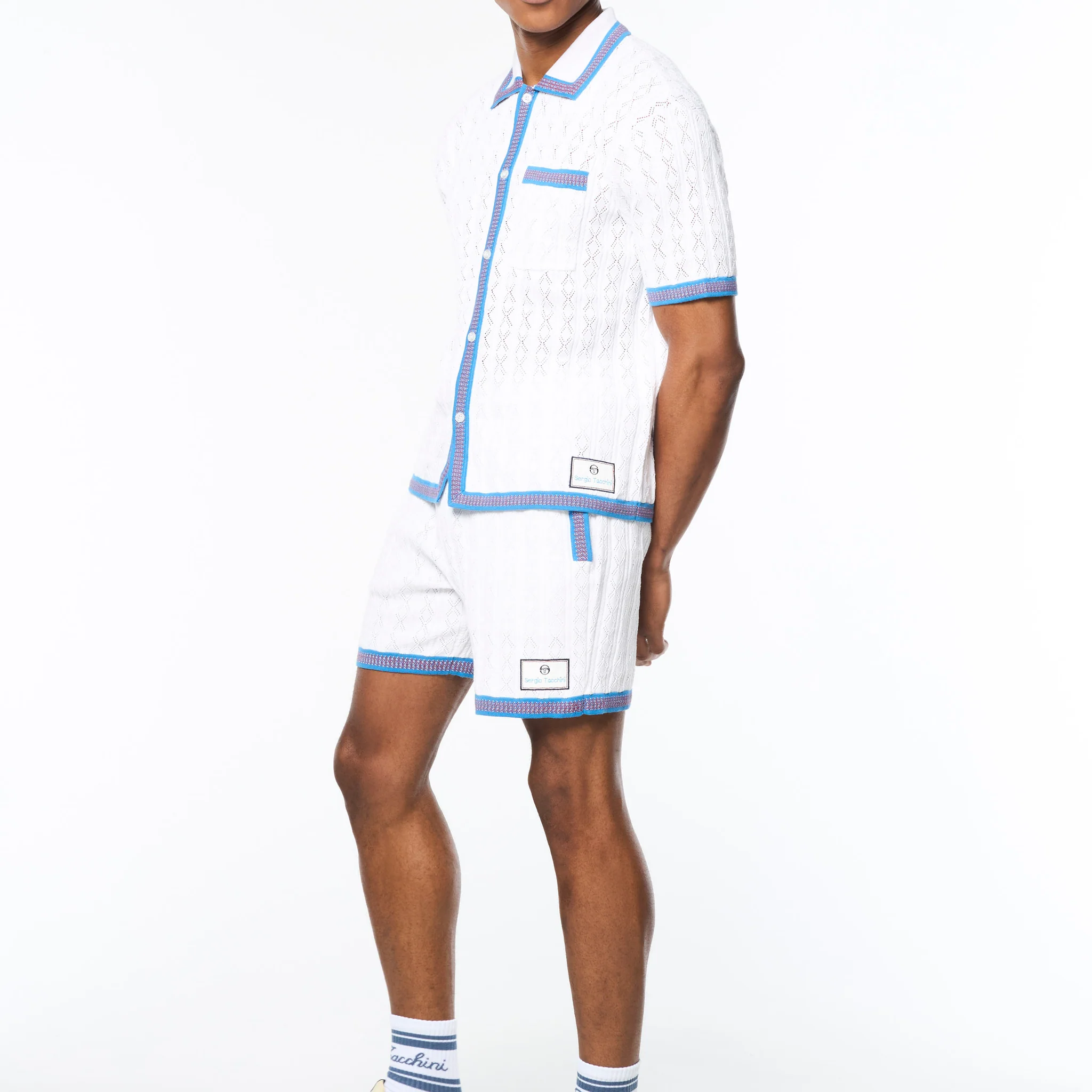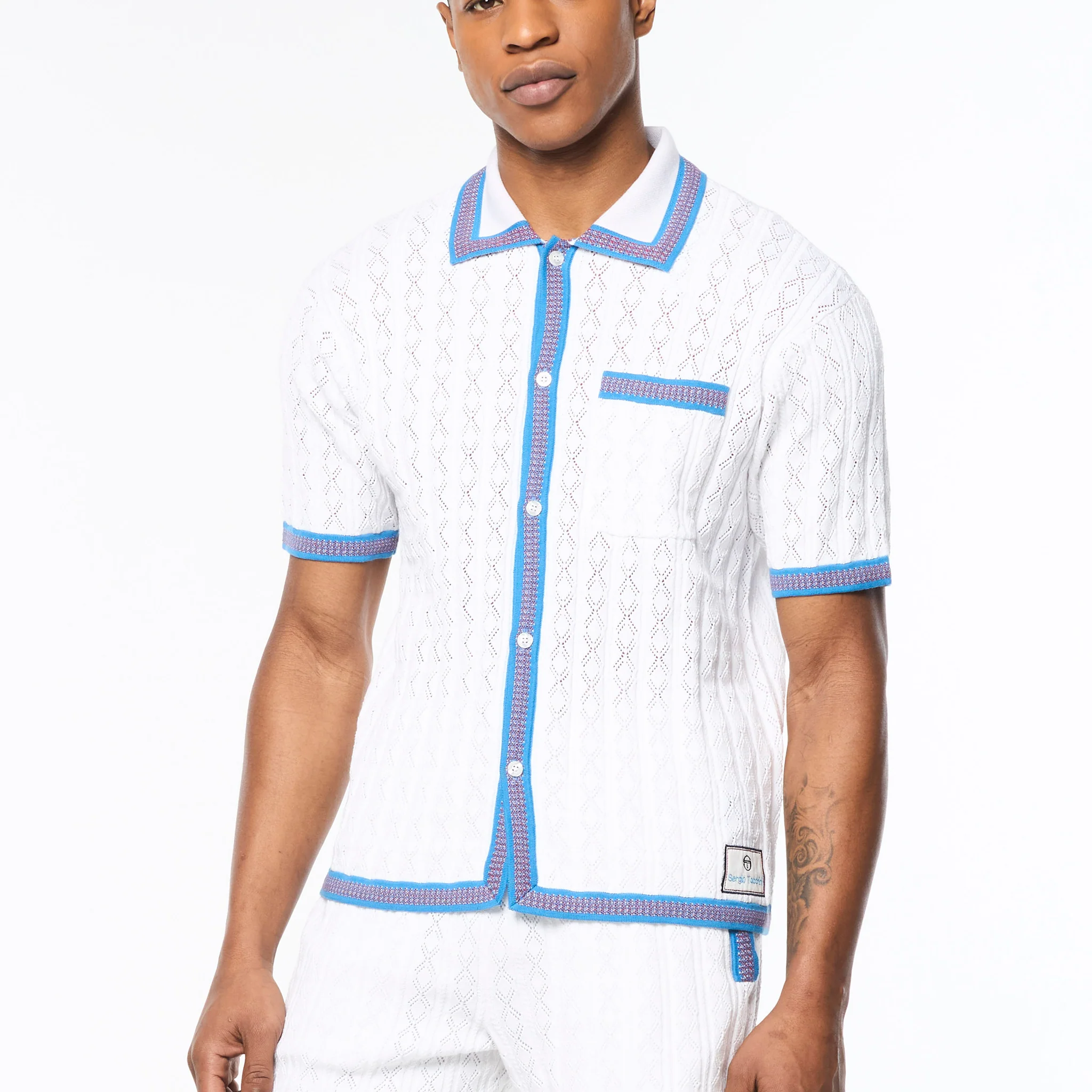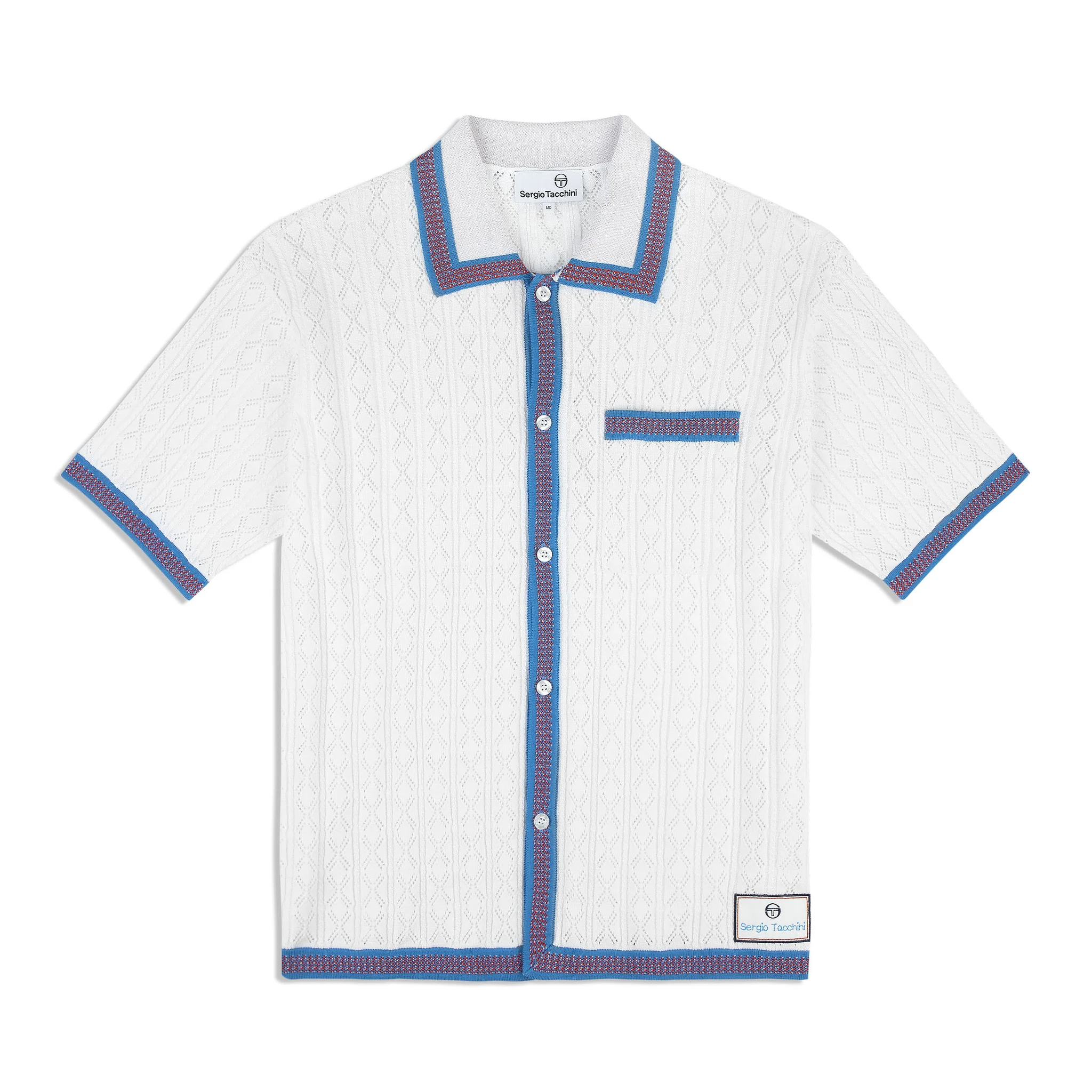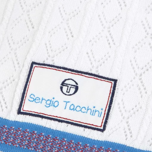 A luxurious take on vintage resort leisurewear, the Aldo Pointelle Polo is crafted from premium high-twist cotton yarn using an airy open pointelle-knit technique that’s lightweight, breathable, and exceptionally soft to the touch. Designed with exquisite attention to detail, this elevated polo is complete with jacquard-knit stripe trims and a custom Sergio Tacchini label at the hem.