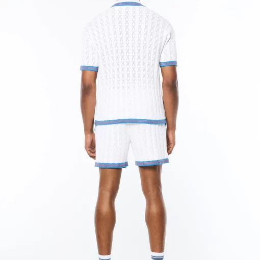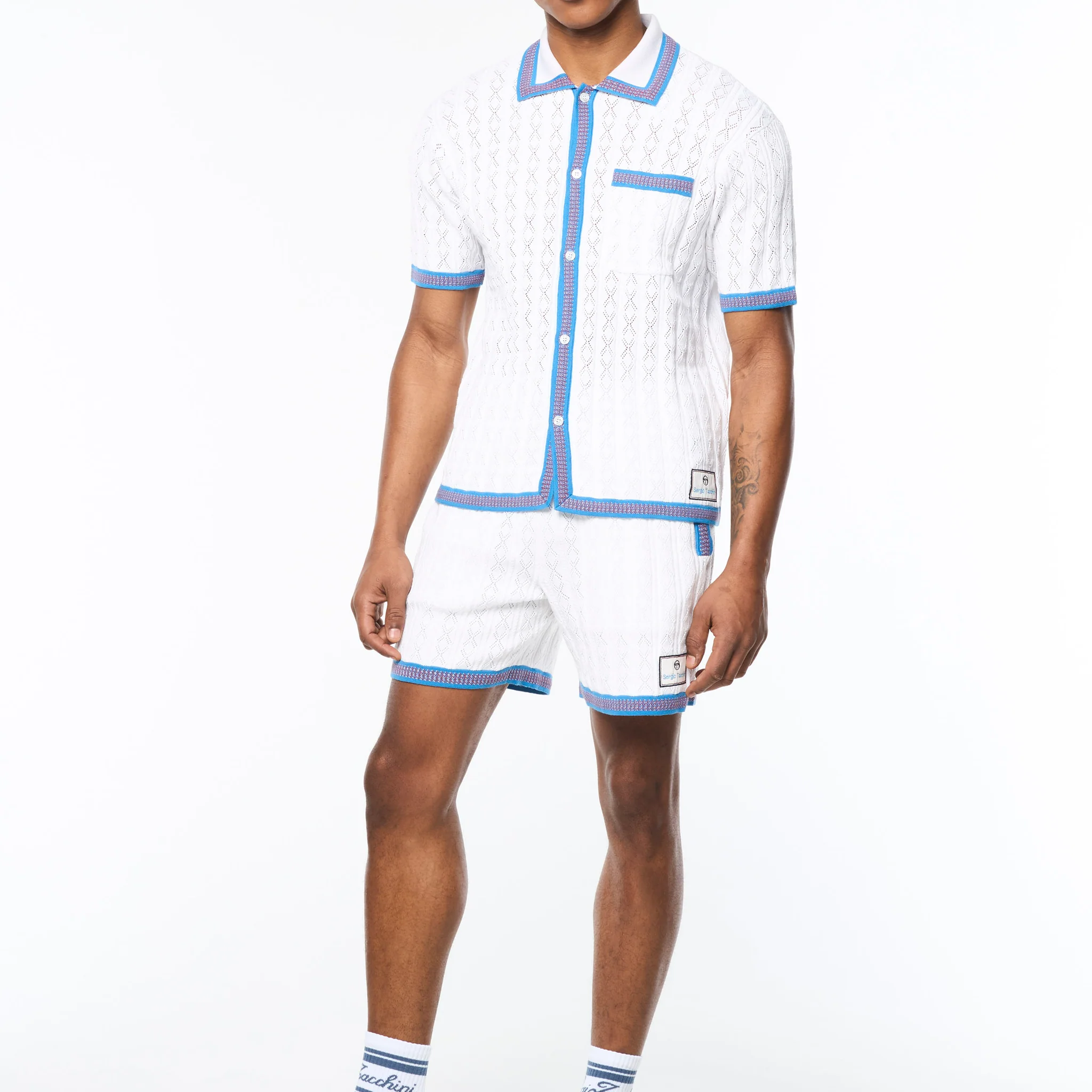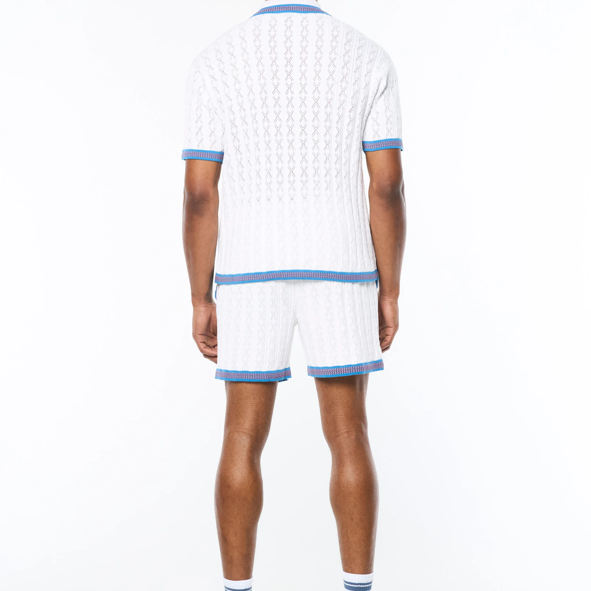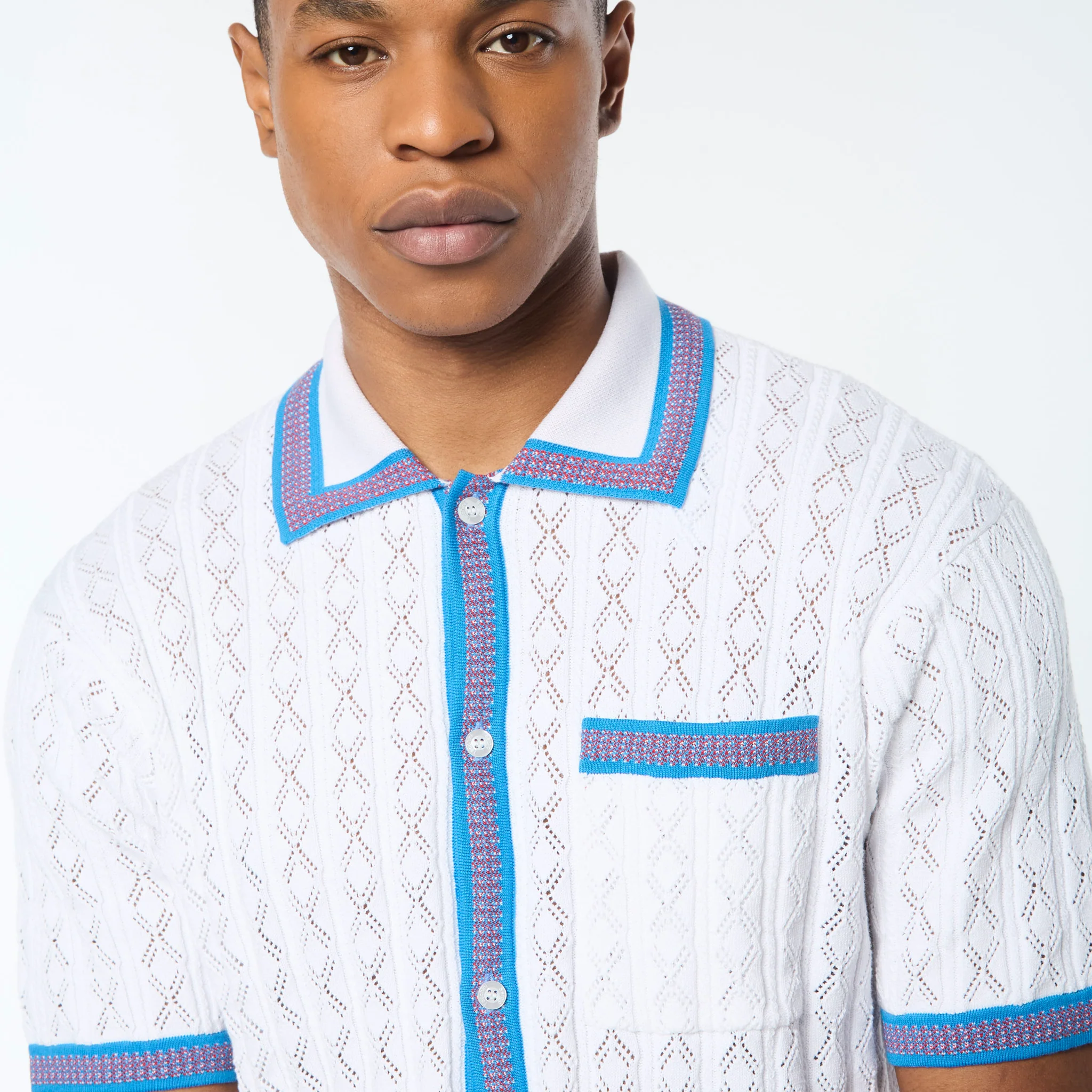A luxurious take on vintage resort leisurewear, the Aldo Pointelle Polo is crafted from premium high-twist cotton yarn using an airy open pointelle-knit technique that’s lightweight, breathable, and exceptionally soft to the touch. Designed with exquisite attention to detail, this elevated polo is complete with jacquard-knit stripe trims and a custom Sergio Tacchini label at the hem.