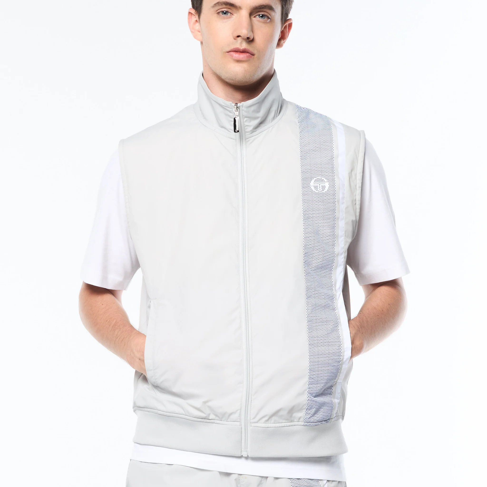 Layer up in lightweight performance. The Attivo Damarindo Vest is crafted from crisp nylon taffeta for a sleek, athletic look—ideal for transitional weather or training on the go. Featuring a full-zip front and stand-up collar for added comfort, this versatile vest is finished with our signature Damarindo double stripe in a bold mesh-effect print down the front.