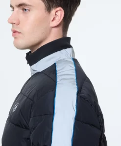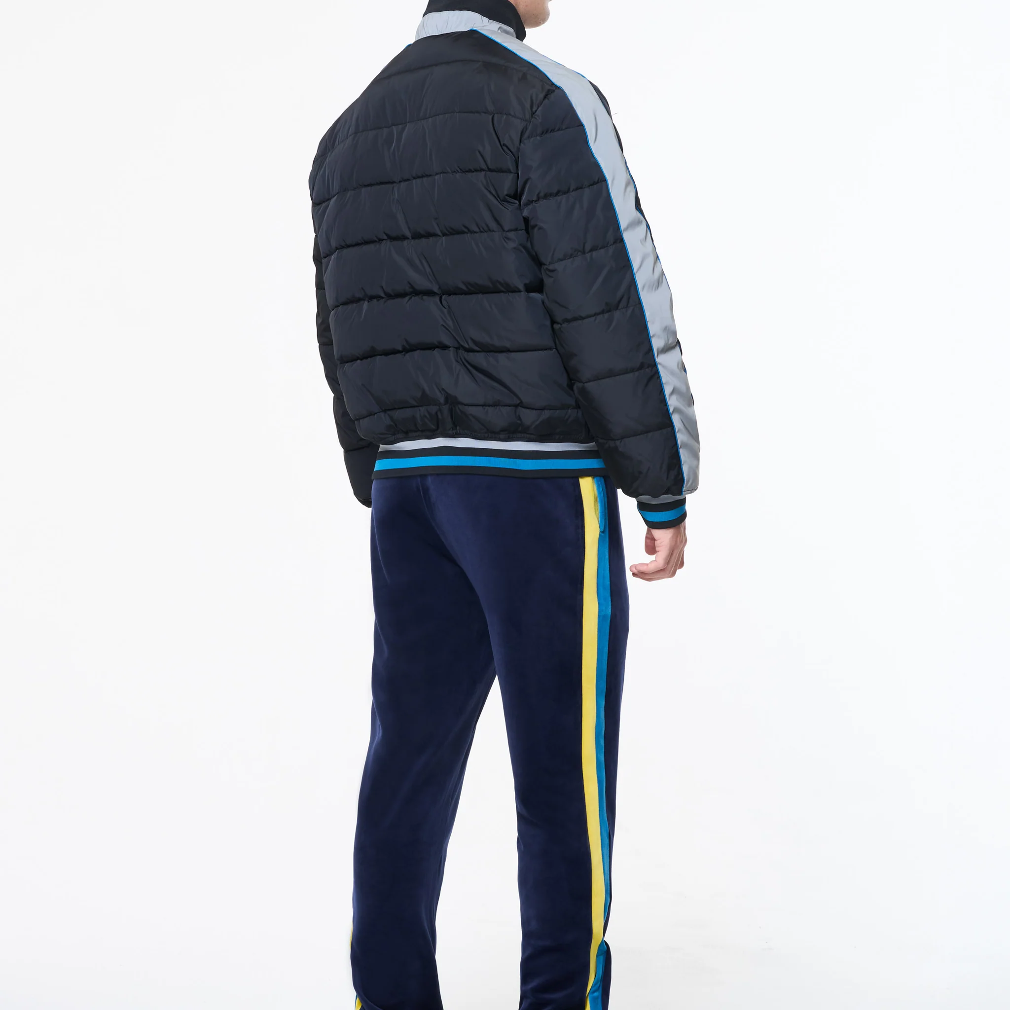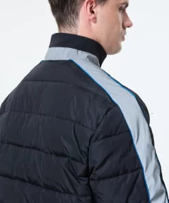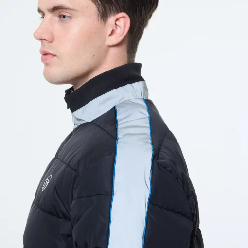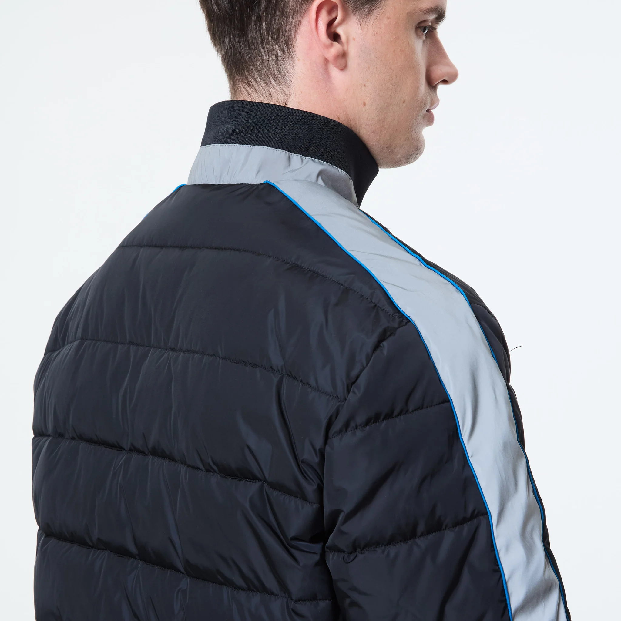 Engineered for warmth with elevated style. The Caldo Puffer Jacket is cut from durable nylon with all-over insulated baffles for superior comfort in colder temps. Featuring reflective panels and contrast piping accents down the sleeves, this sleek puffer is finished with striped rib-knit trims and zip pockets for secure storage. Designed to stand out—day or night.