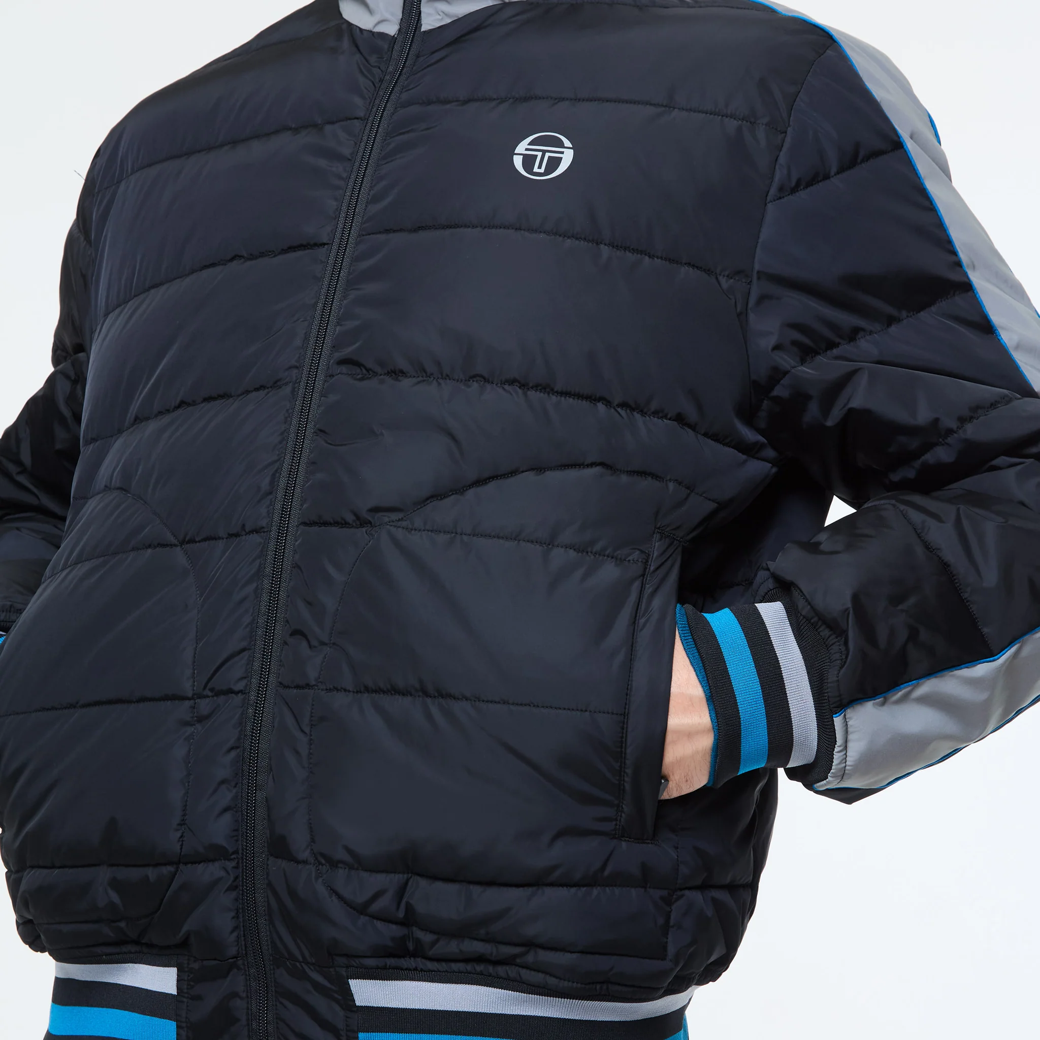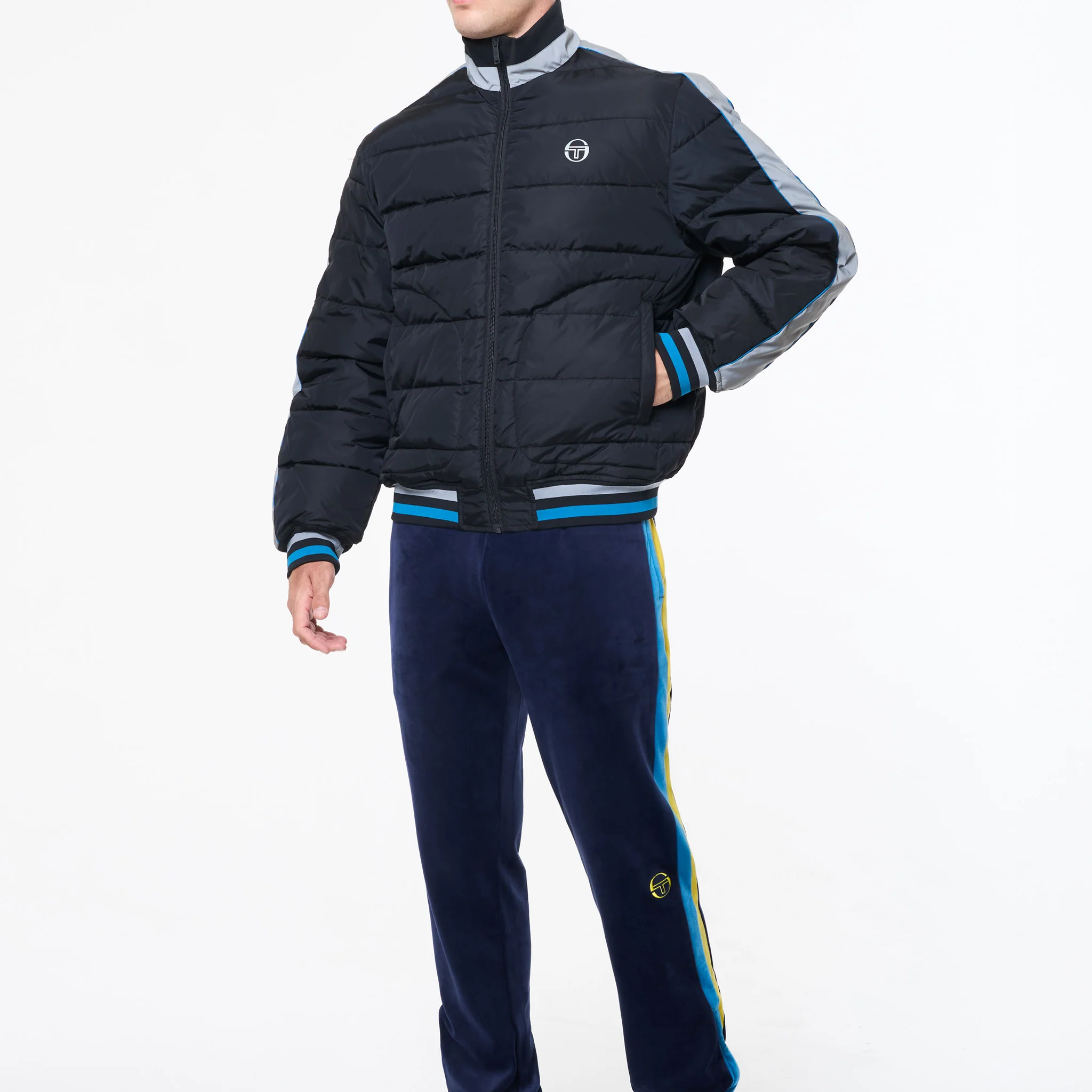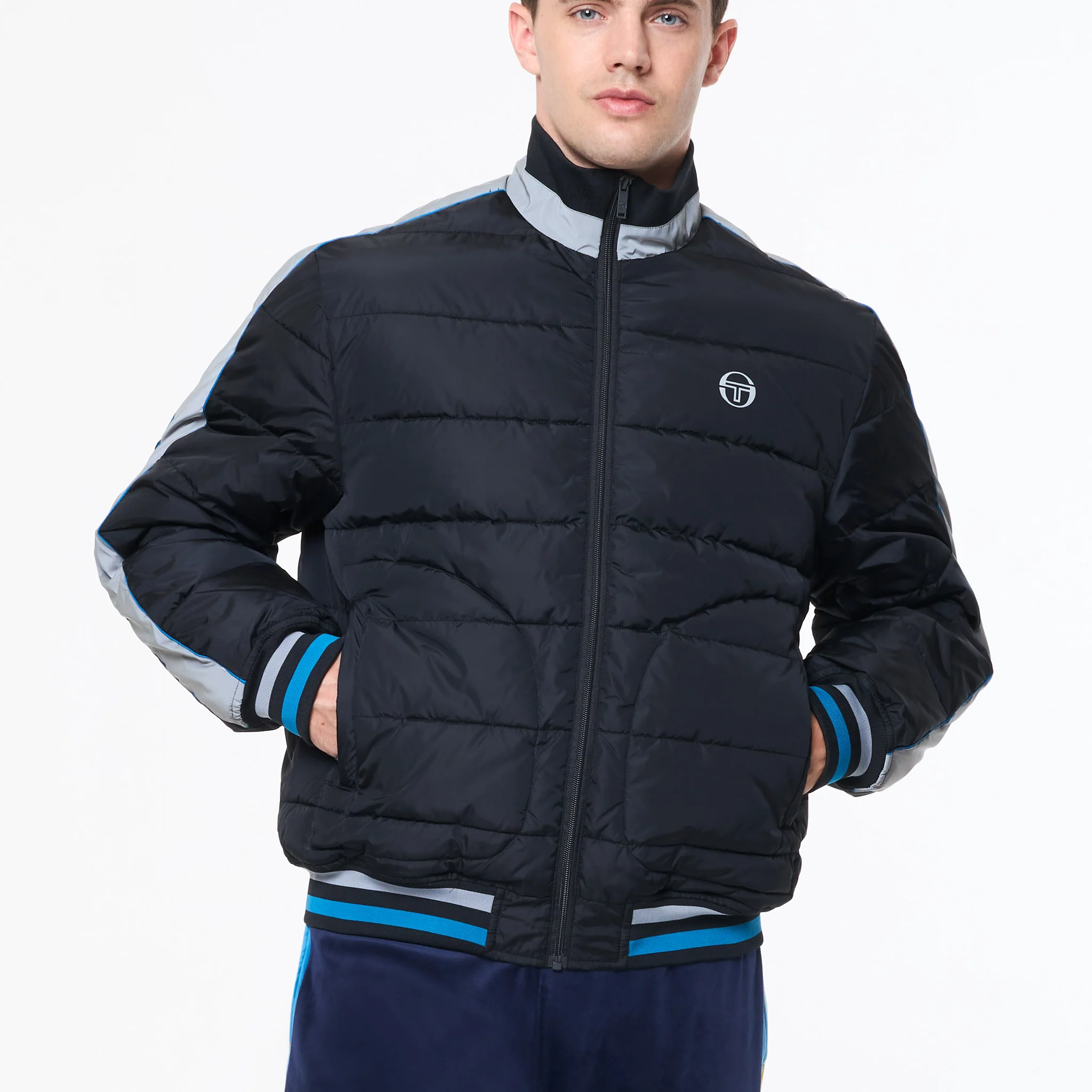 Engineered for warmth with elevated style. The Caldo Puffer Jacket is cut from durable nylon with all-over insulated baffles for superior comfort in colder temps. Featuring reflective panels and contrast piping accents down the sleeves, this sleek puffer is finished with striped rib-knit trims and zip pockets for secure storage. Designed to stand out—day or night.