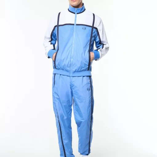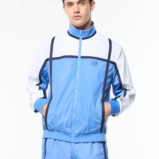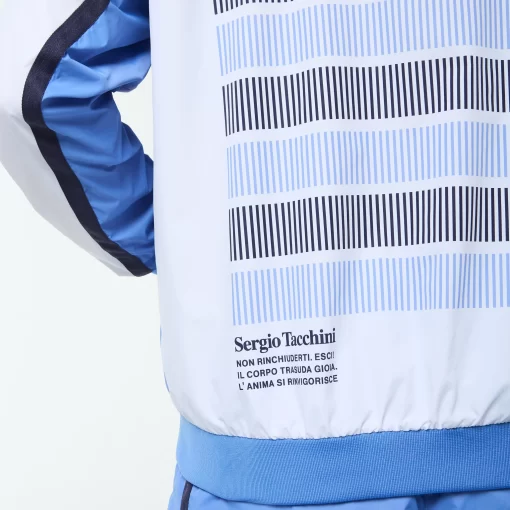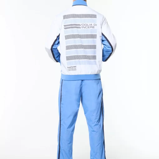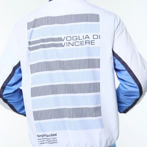 Sport meets statement. The Campo Court Track Jacket is crafted from crisp and lightweight nylon taffeta with a breathable mesh lining—built to move on and off the court. Bold color-block paneling and contrast taping deliver a dynamic visual punch, while custom Sergio Tacchini artwork and Italian sports slogans at the back celebrate the brand’s heritage. Voglia di vincere— desire to win.