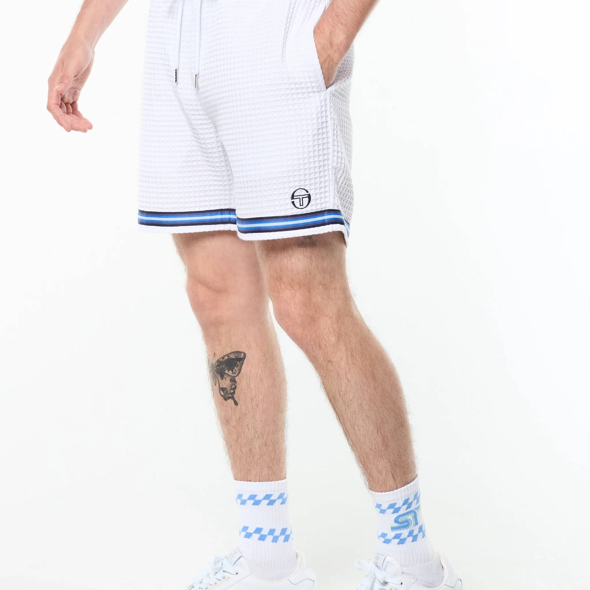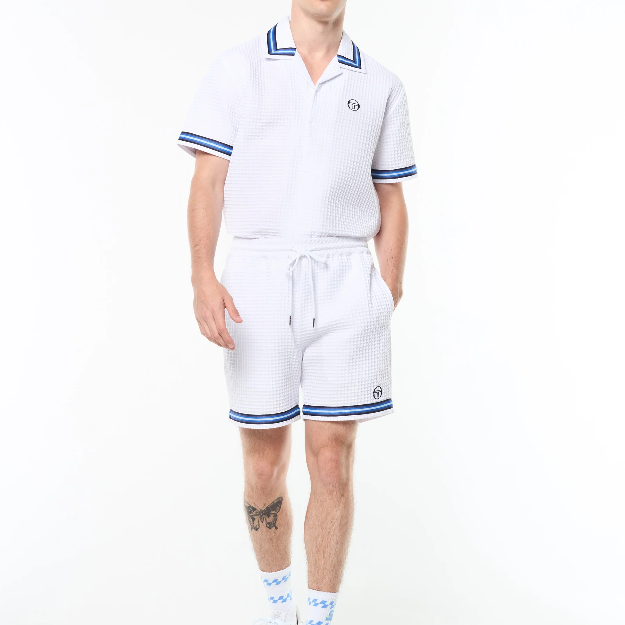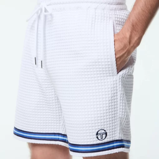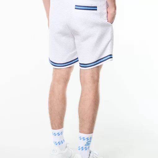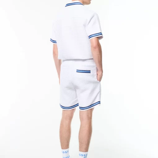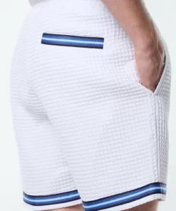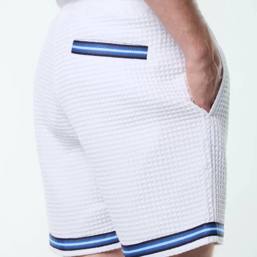 Effortless polish with a textured twist. The Chiaro Cabana Short is crafted from a premium woven waffle for soft texture and laid-back structure. Topped with an elasticated drawstring waistband for a secure fit, these shorts are finished with contrast stripe taping at the hem and rear pocket for a signature sport-inspired touch.