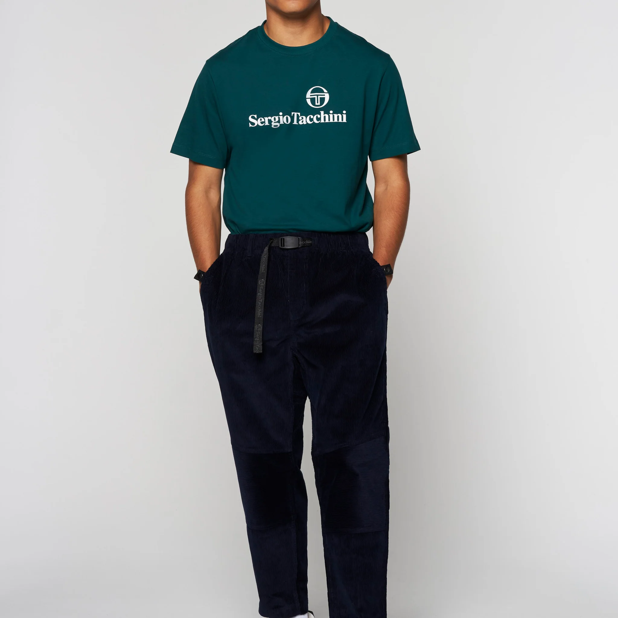 Crafted from premium wide-wale corduroy with a soft and textured hand feel, our elevated Coste Pant features rotated knee panels that run the ribbing horizontally for a stylish touch. Topped with an elasticated waistband and integrated adjustable belt, these refined pants are finished with our iconic ‘ST’ monogram logo in a felt patch at the rear pocket.