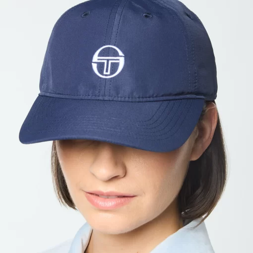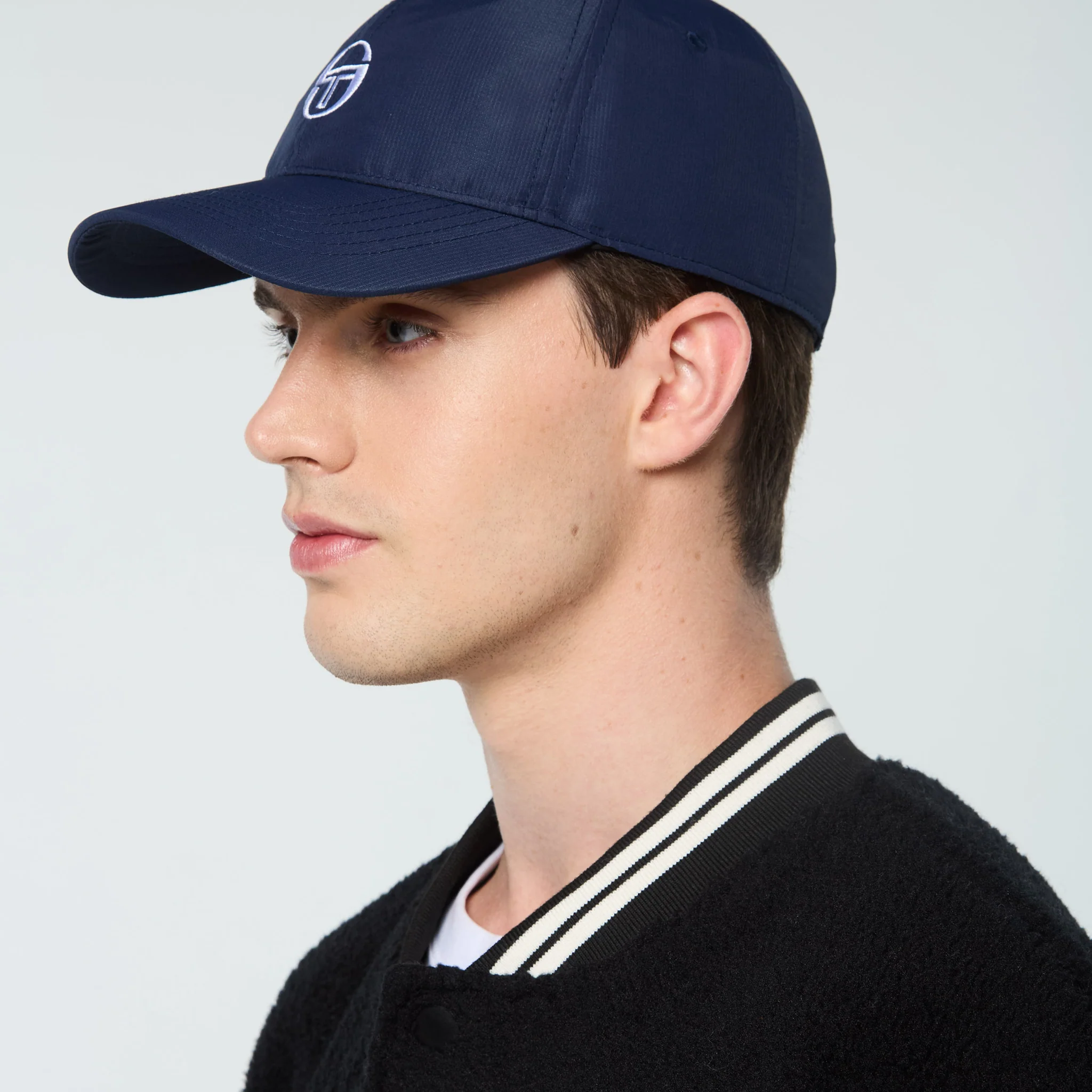Keep your cool from the court to the street with our low-profile Court Hat. Made of lightweight and durable ripstop, this classic 6-panel cap features embroidered Sergio Tacchini logos, a curved visor, and an adjustable velcro strap for the perfect fit.