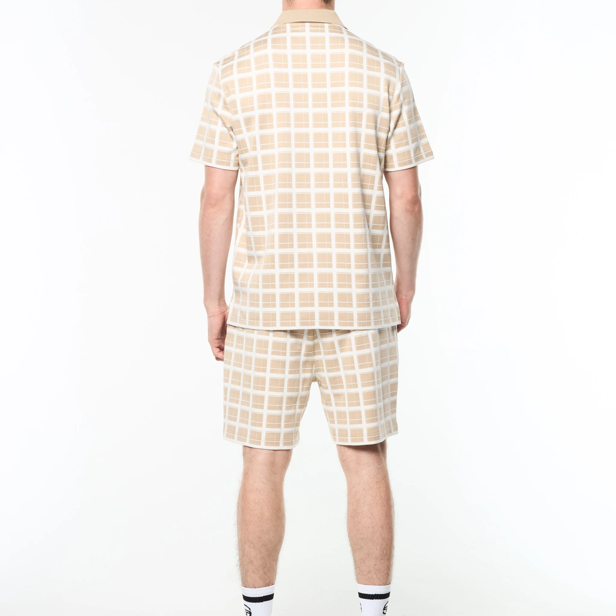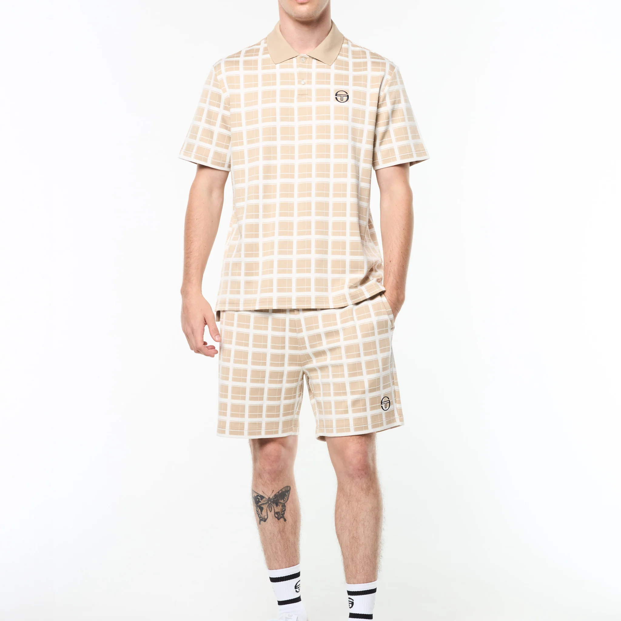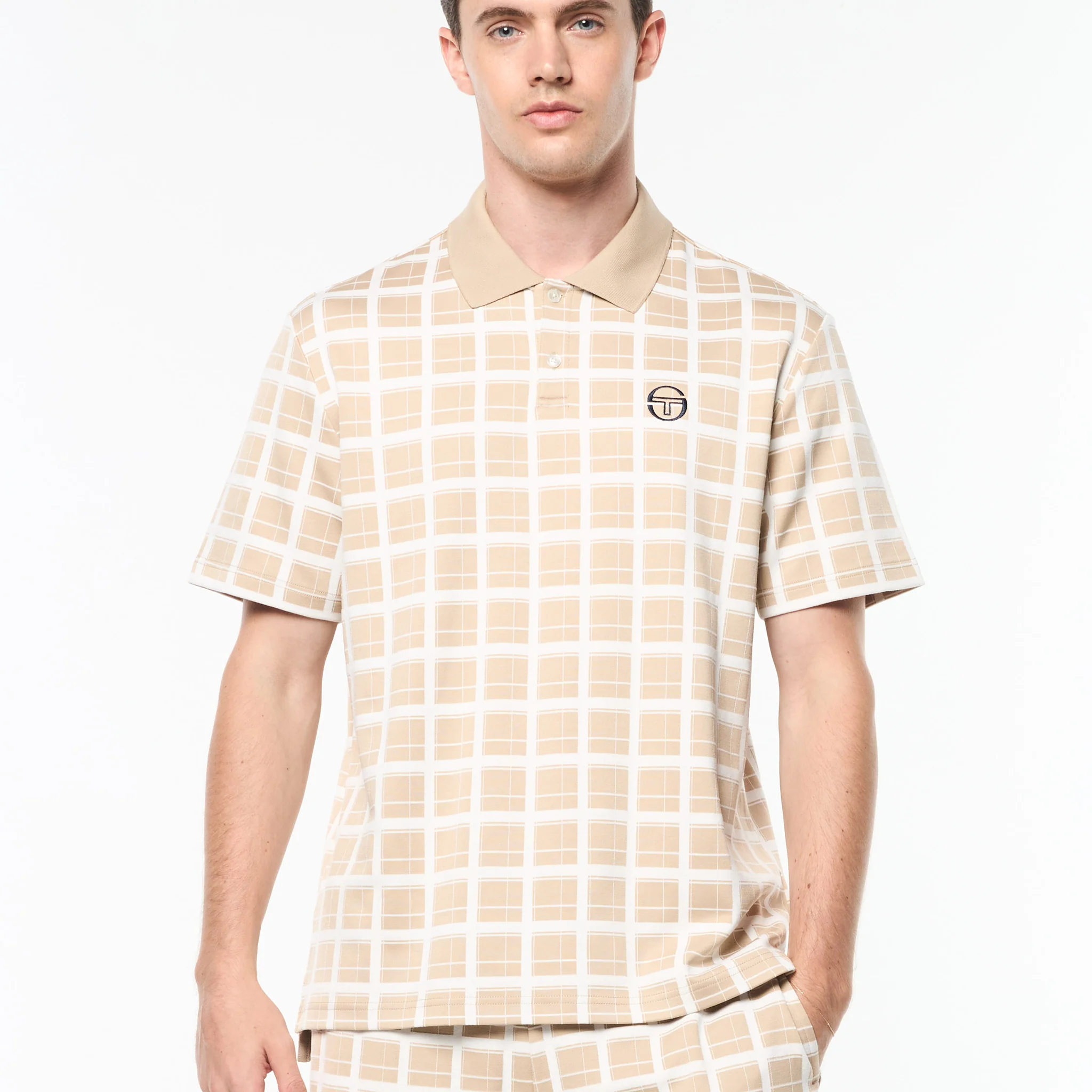 A fresh spin on a long-time Tacchini classic. The Damarindo Check Polo features an all-over custom jacquard check pattern derived from our iconic Damarindo double stripe for a breezy, youthful vibe. Topped with a solid rib-knit collar for elevated style and comfort, this premium polo keeps you classy both on and off the court.