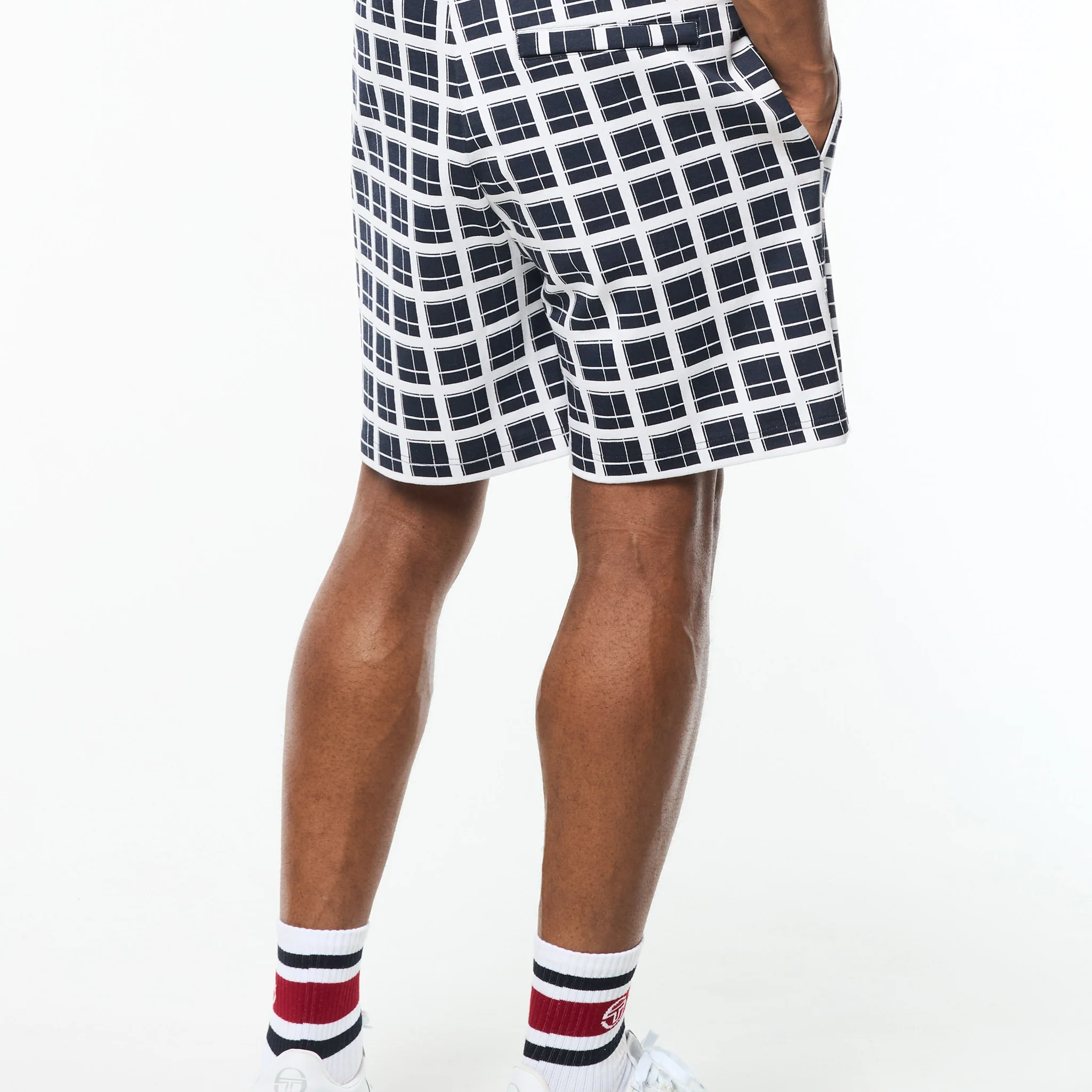 A fresh spin on a long-time Tacchini classic. The Damarindo Check Short features an all-over custom jacquard check pattern derived from our iconic Damarindo double stripe for a breezy, youthful vibe. Topped with a solid rib-knit waistband for comfort and convenience, these premium shorts keep you classy both on and off the court.