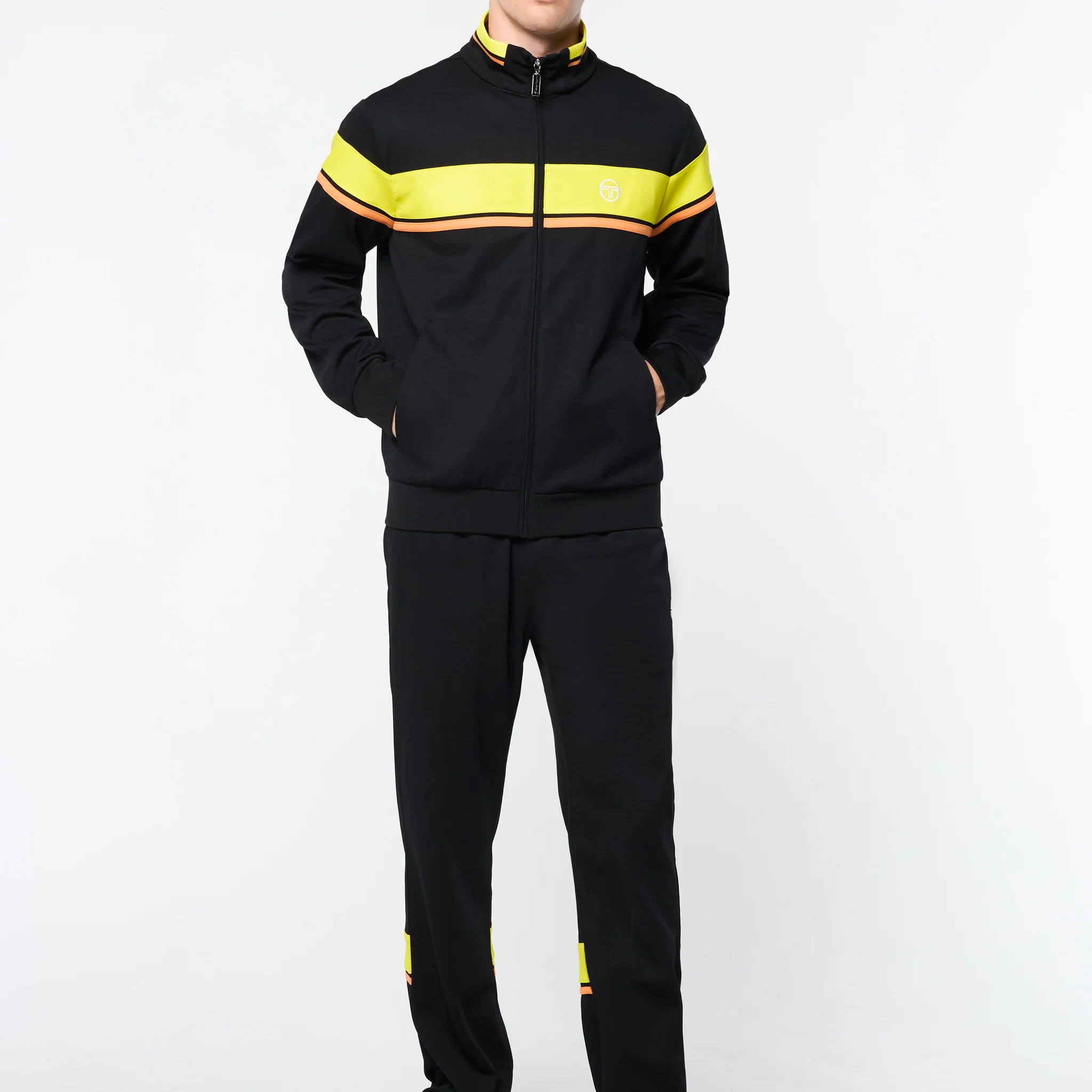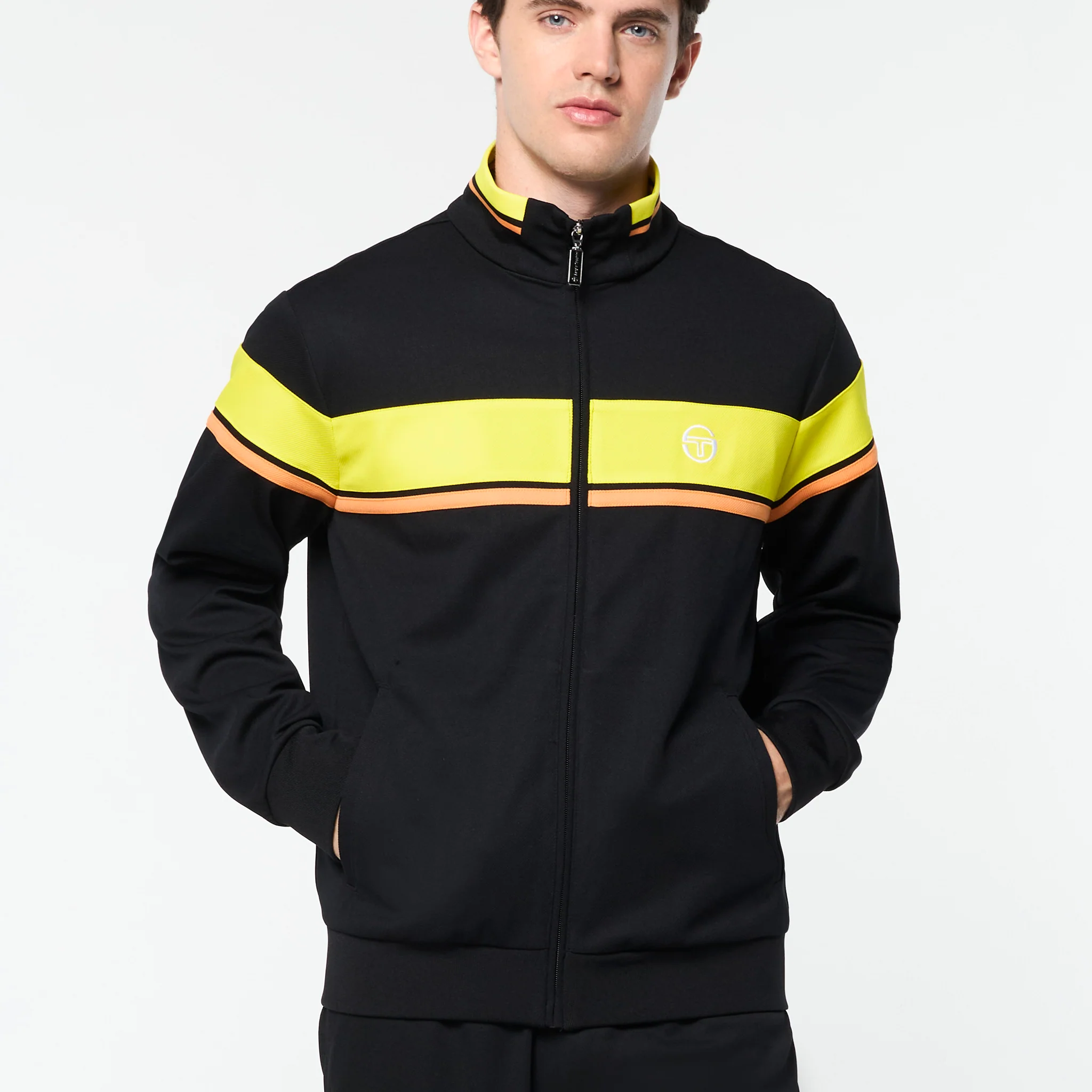 A long-time Tacchini classic, the Damarindo Track Jacket is crafted from wrinkle-resistant twill and features our distinctive double-stripe at the chest, sleeves, and stand-up collar. A heritage design with elevated comfort, this full-zip track jacket is complete with our iconic ‘ST’ monogram logo embroidered at the chest.