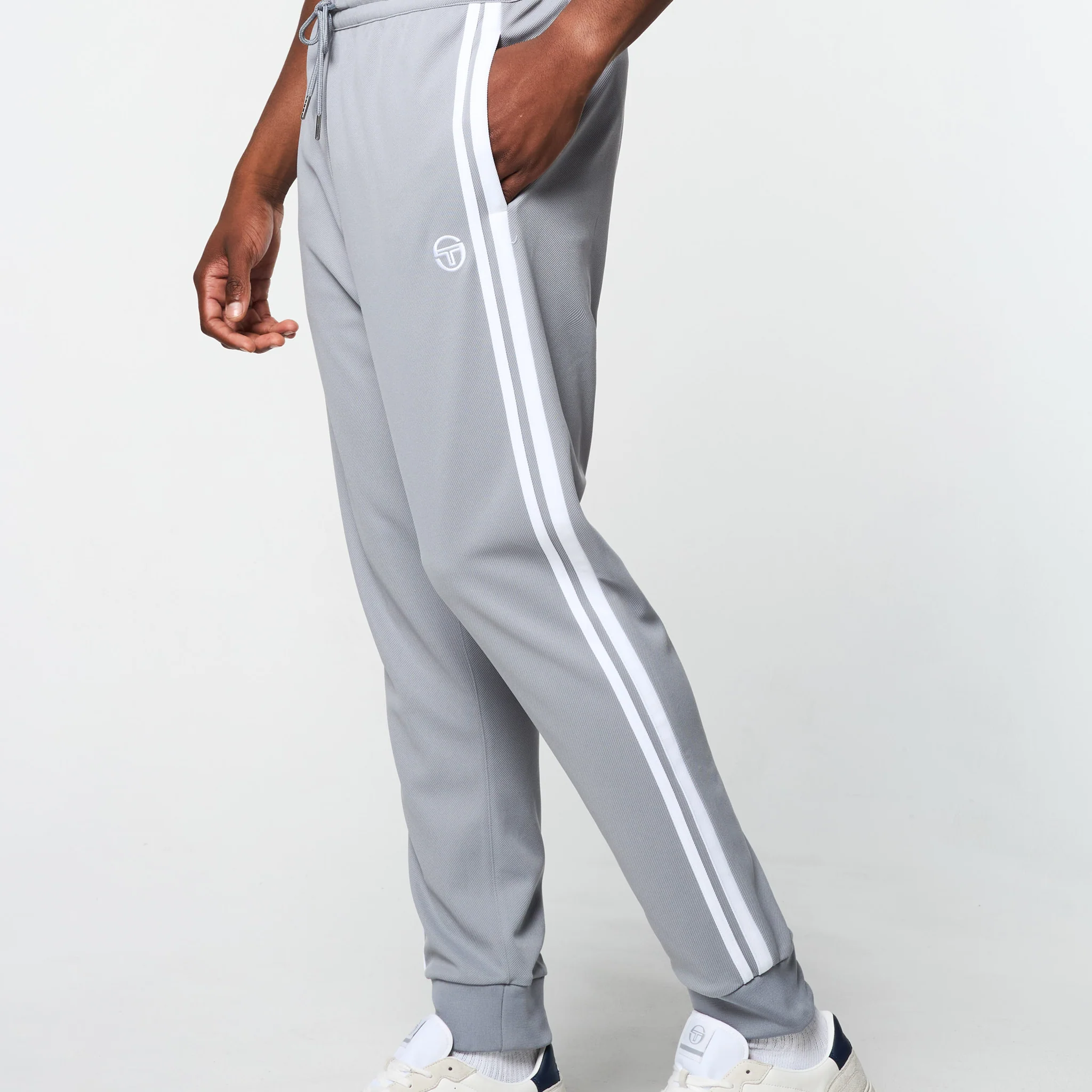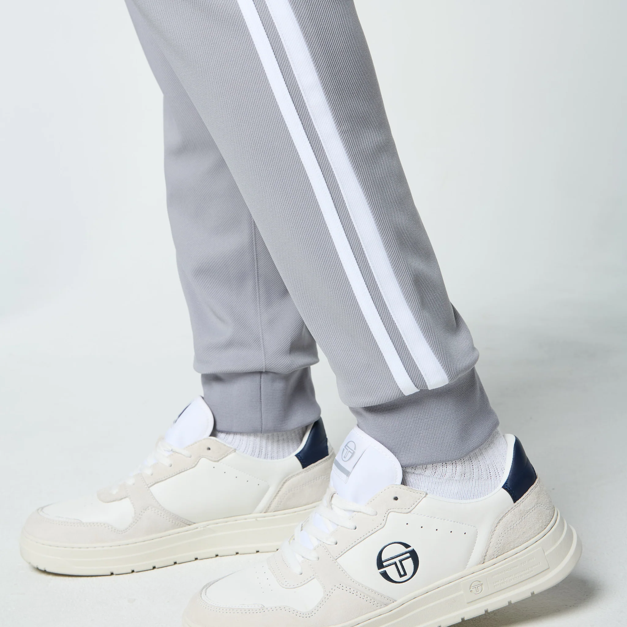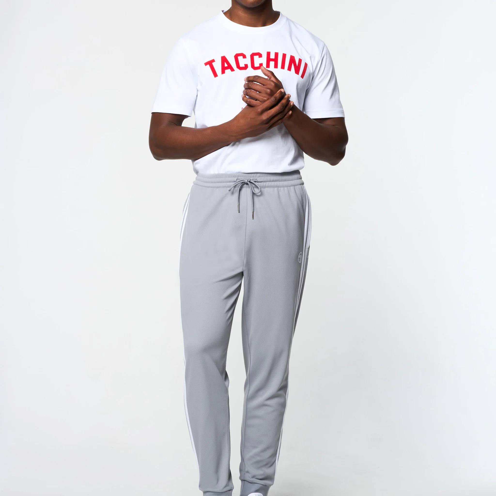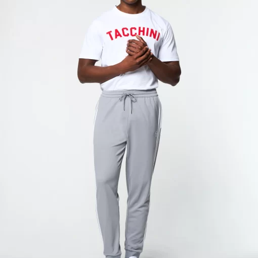 A long-time Tacchini classic, the Damarindo Track Pant is made of wrinkle-resistant twill to keep you looking fresh on the court and in the streets. Part of our heritage Archivio Collection—celebrating classic designs from the archive—these elevated track pants are complete with our distinctive double-stripe down the legs and an embroidered ‘ST’ monogram logo embroidered at the left thigh.