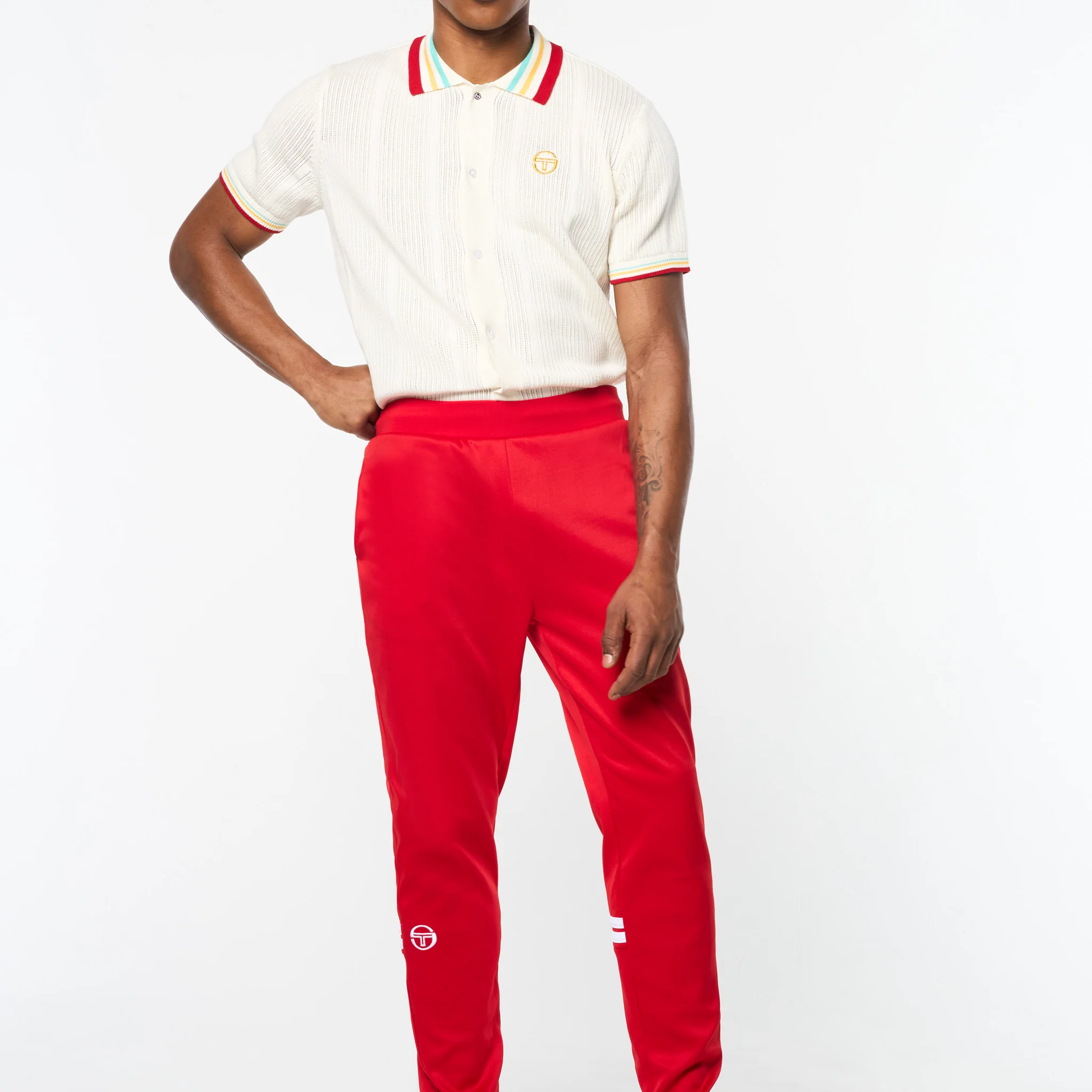 The Orion Track Pant is crafted from smooth double-knit fabric that’s comfortable, durable, and perfect for everyday on and off-court wear. Topped with a soft rib-knit waistband, these classic track pants are complete with adjustable zip-openings at the cuffs, an embroidered ‘ST’ monogram logo, and contrast double stripes for a retro vibe.
