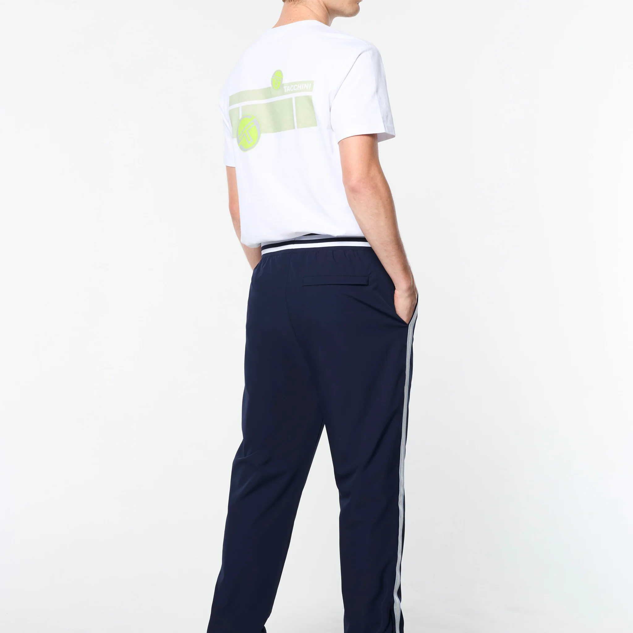 An elevated spin on classic sportswear, the Paco Track Pant is crafted from lightweight performance stretch nylon to keep you cool and moving freely through any workout. Featuring tennis net-inspired elastic mesh trim down the legs for extra style points, these athletic track pants are finished with adjustable ankle zips for courtside convenience.