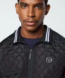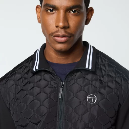 Keep cozy through cooler weather with the Sapri Quilted Track Jacket, crafted from quilted nylon with a lightweight fill, fleece sleeves, and a full-zip front for easy layering. Inspired by retro ski designs, this premium jacket is complete with zip-secured pockets and contrast tipping stripes inside the rib-knit collar.