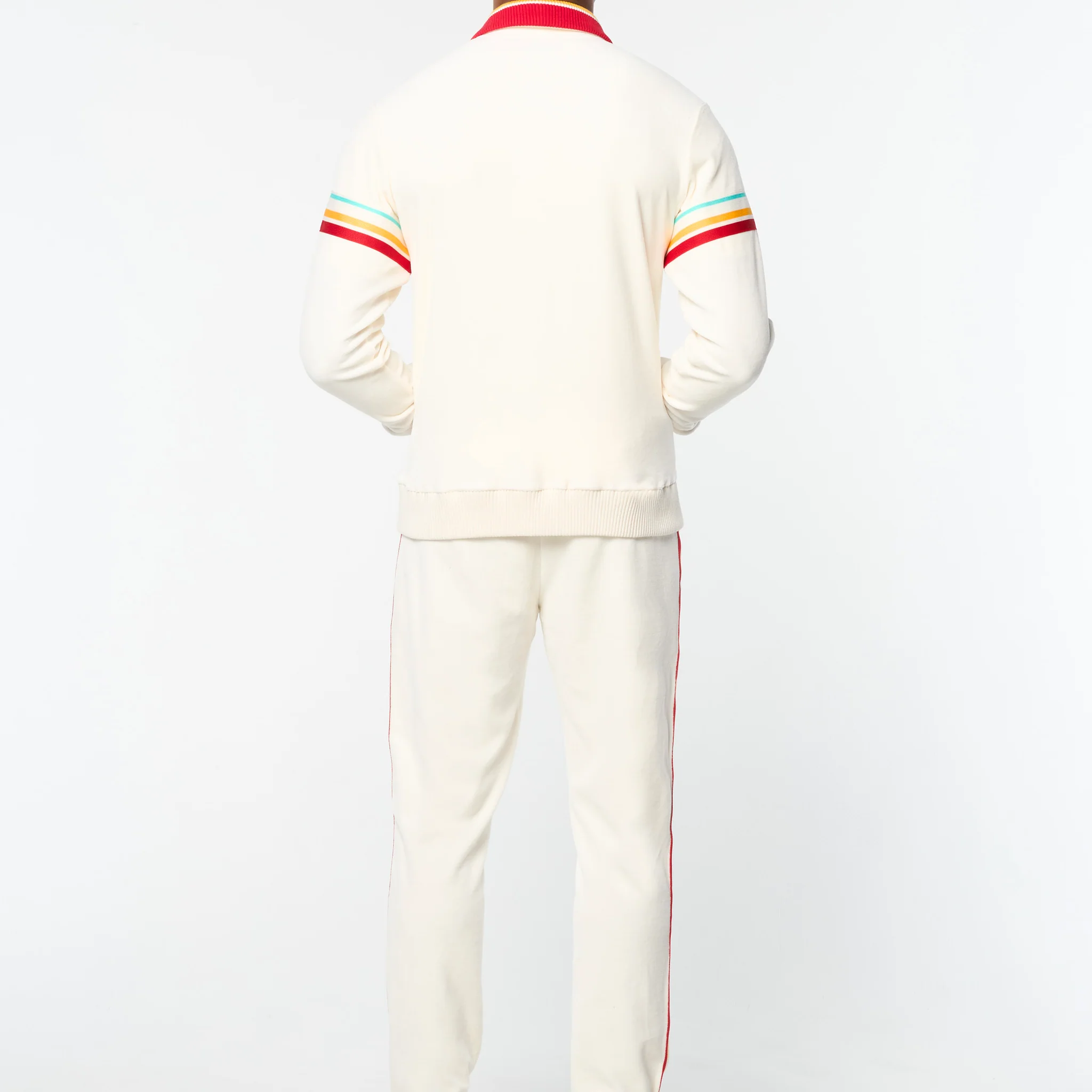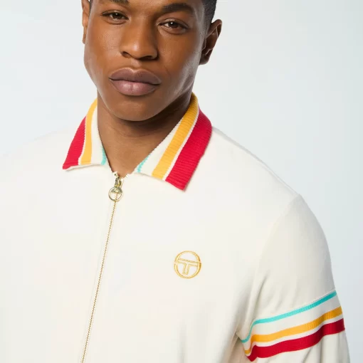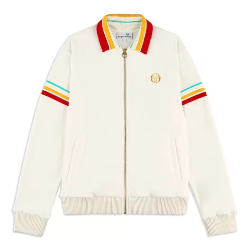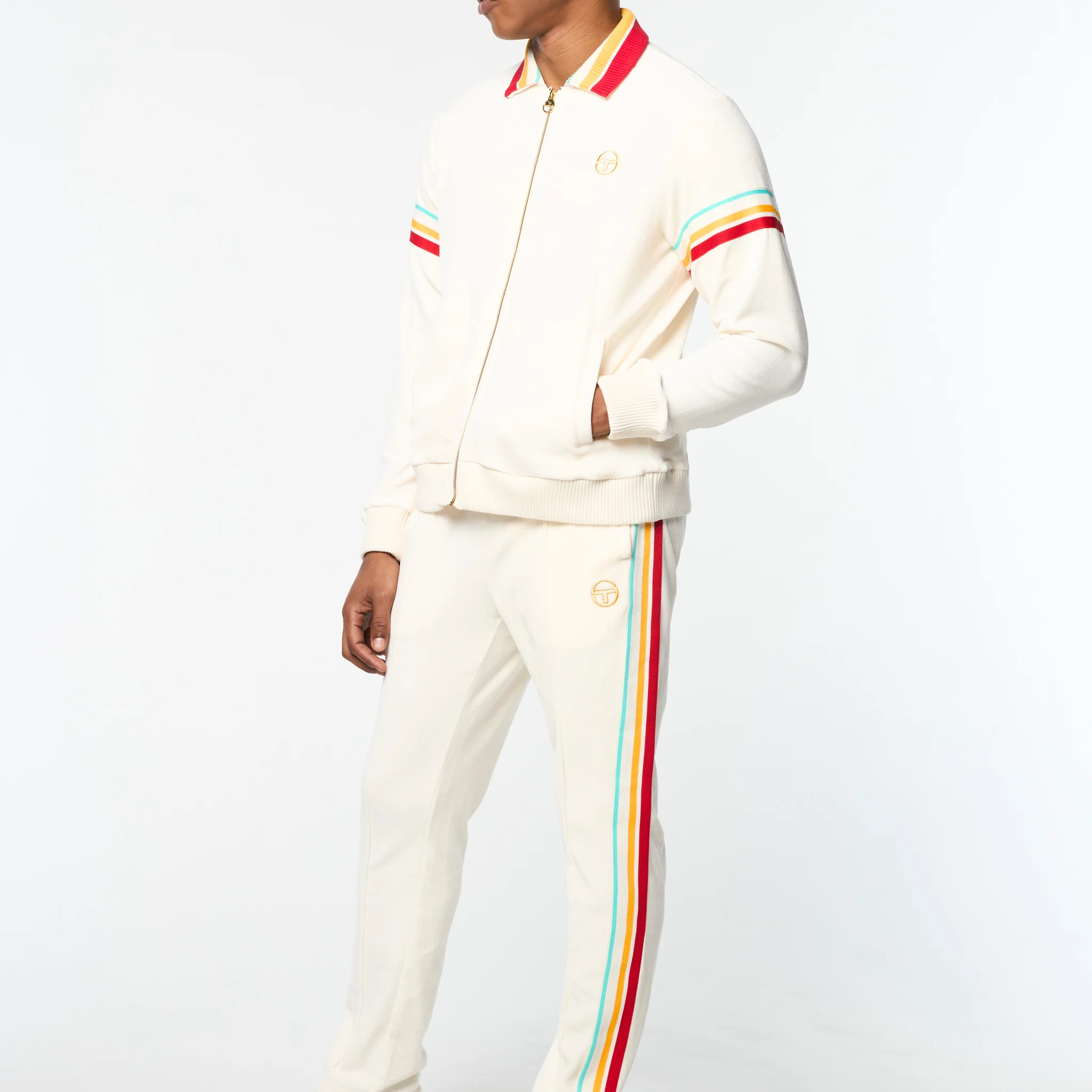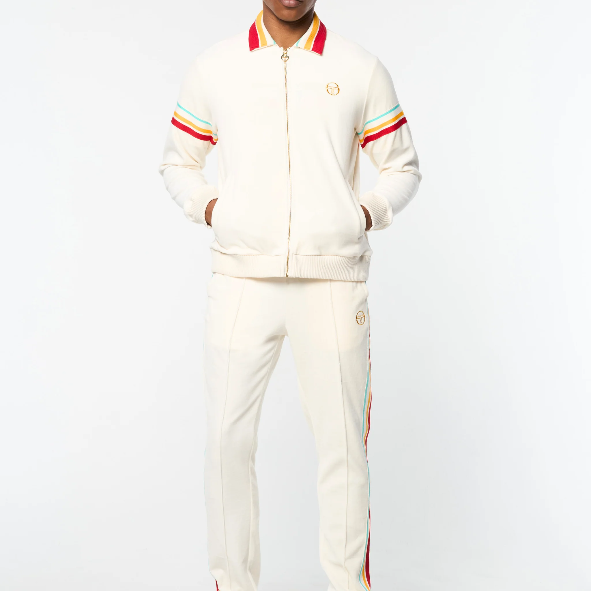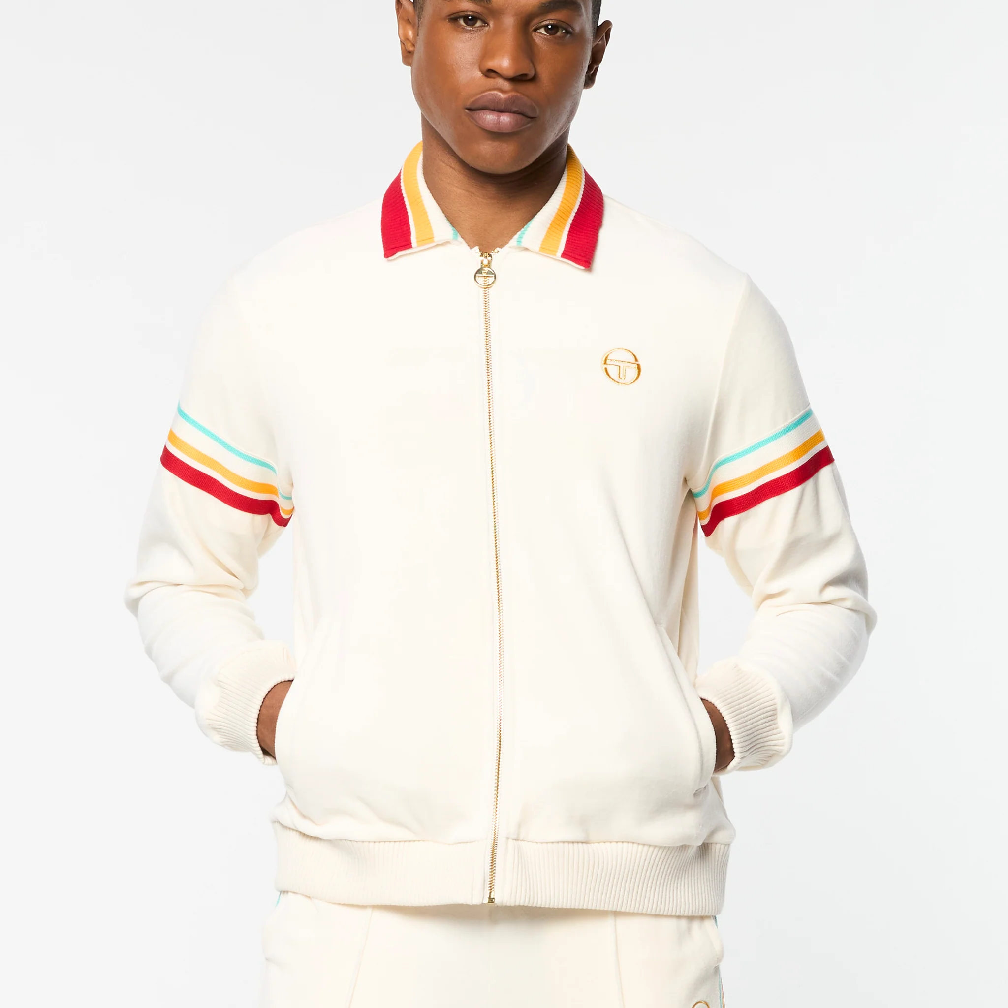 Crafted from premium velour for a luxurious feel, the Slice Track Jacket features a gold metal full-zip closure and our iconic ‘ST’ monogram embroidered in metallic gold thread at the left chest. Designed with exquisite attention to detail, this elevated track jacket is finished with multicolored striping details inspired by a retro Tacchini polo worn by Goran Ivanisevic at the 1996 US Open.