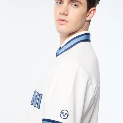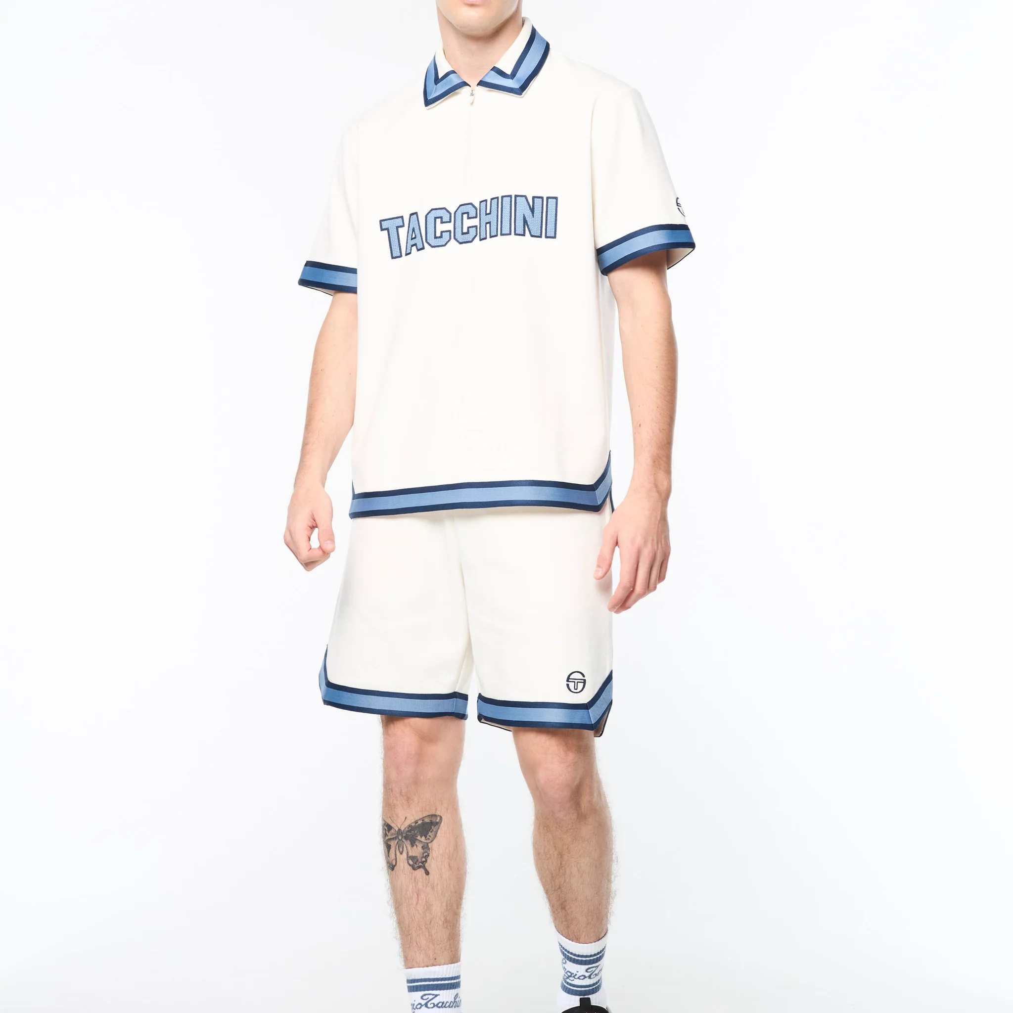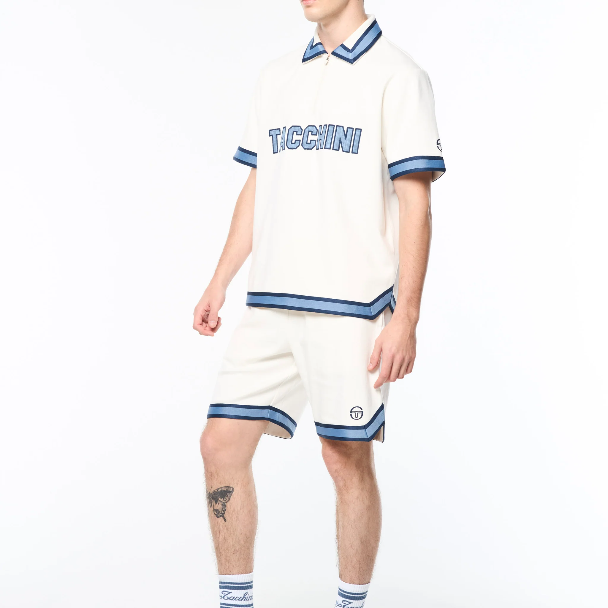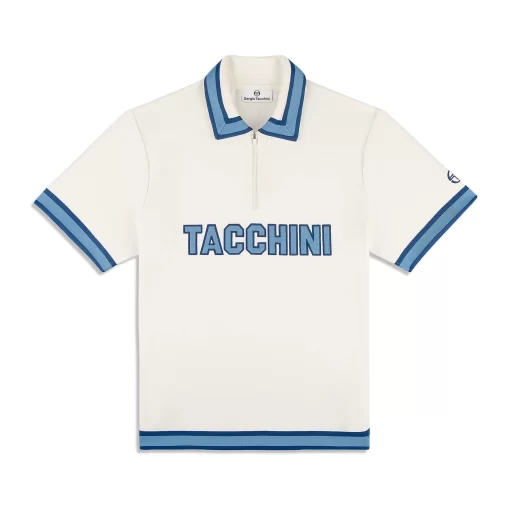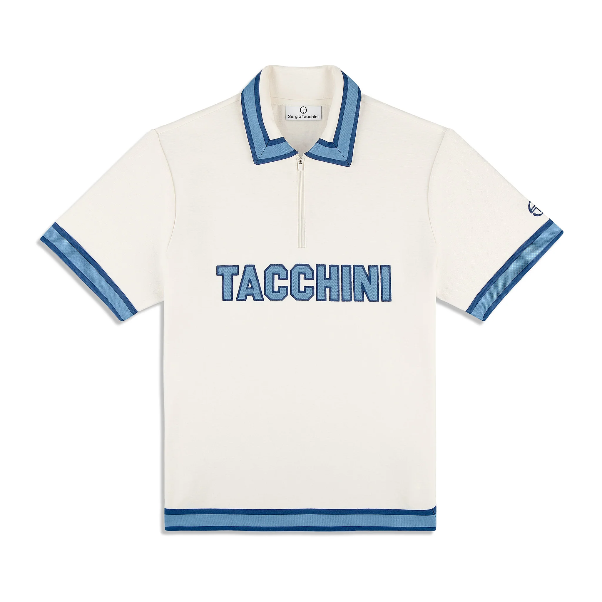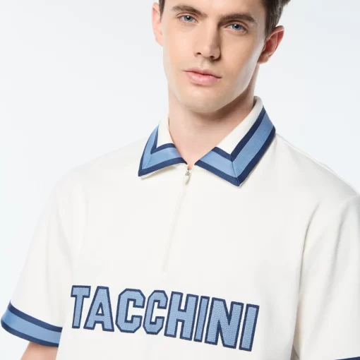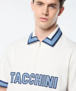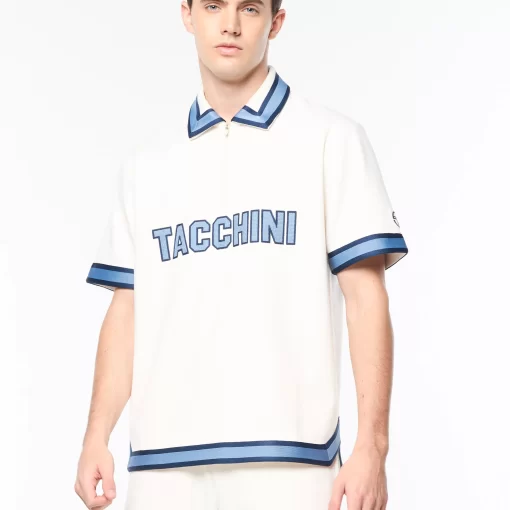 Keep it sharp with the elevated Tito Polo, crafted from heavyweight interlock fabric with an incredibly soft handfeel and subtle stretch for a refined finish. Topped with a zippered placket, this premium polo is complete with a notched hem, striped rib-knit taping at the trims, and a bold chainstitched Tacchini logo at the chest.