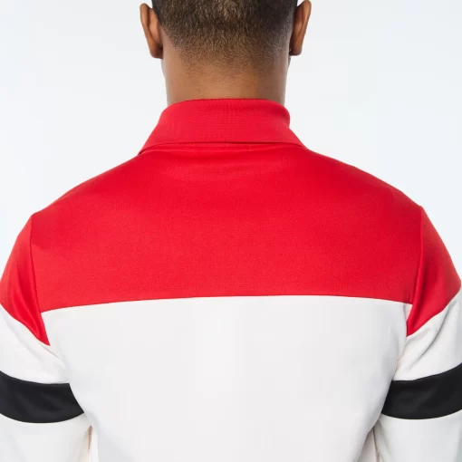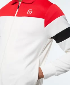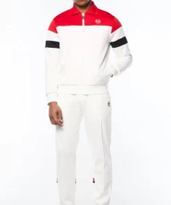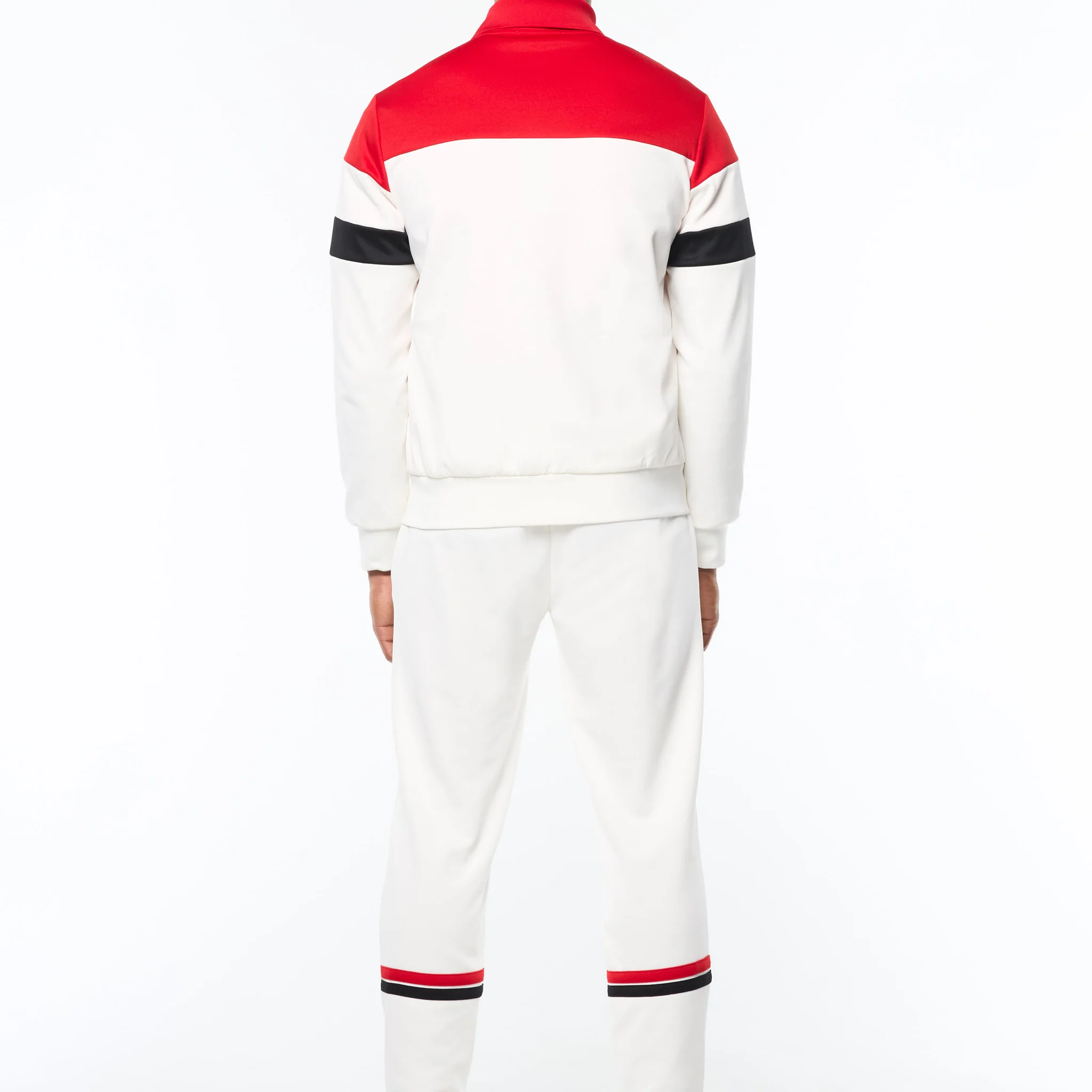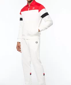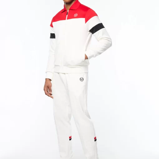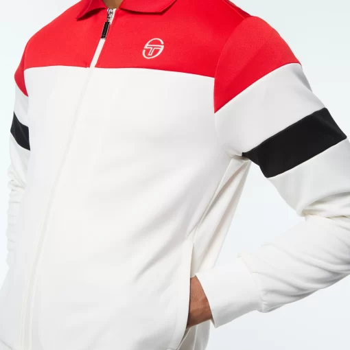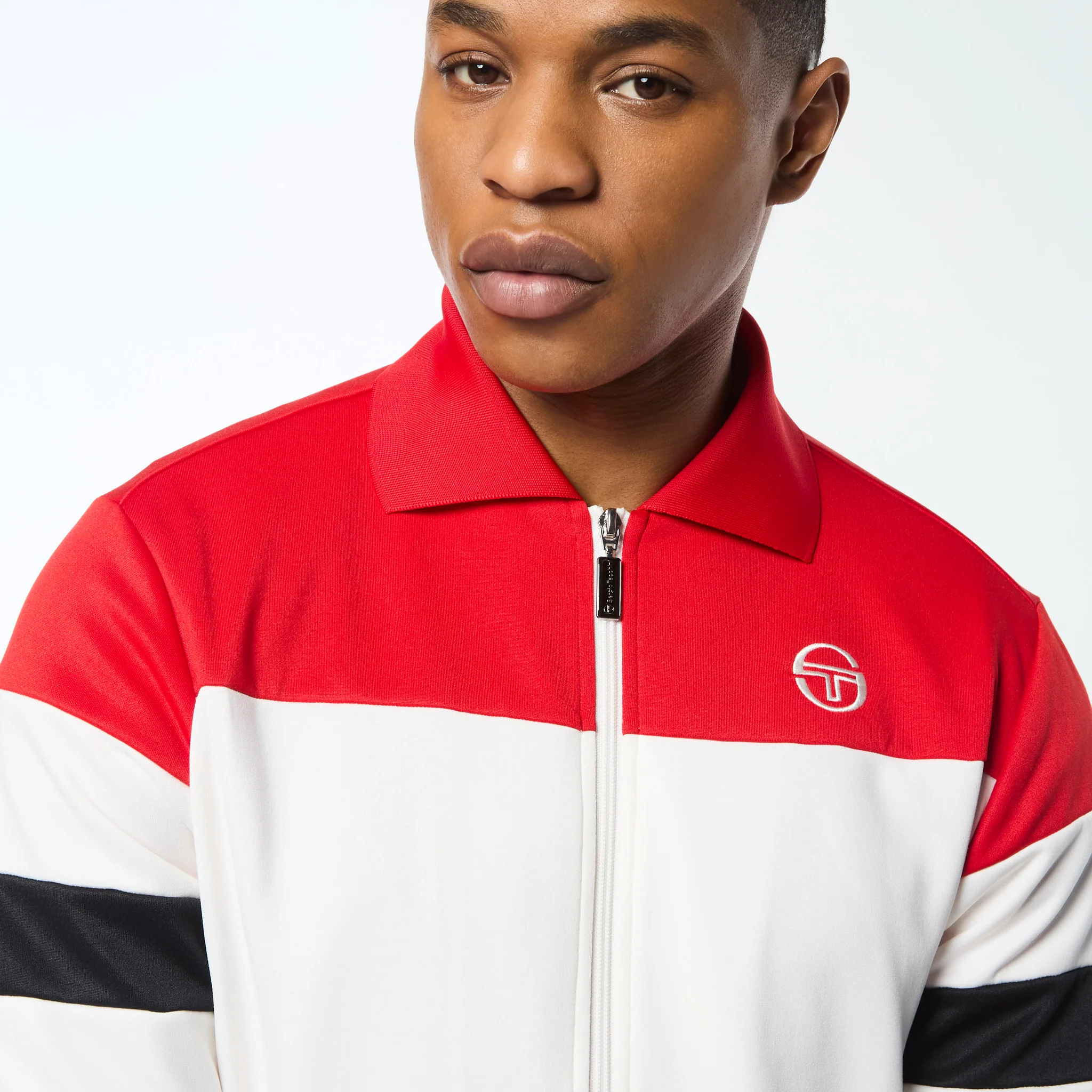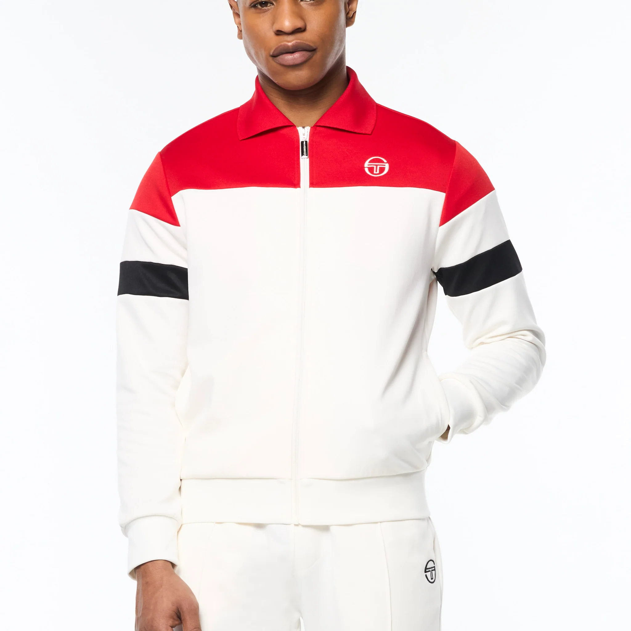 A Tacchini fan favorite, the Tomme Track Jacket is made of soft poly-cotton featuring color-blocked paneling and stripe bands at the sleeves for a retro vibe. Sporting an embroidered ‘ST’ monogram at the left chest, this premium full-zip track jacket is finished with a spread collar, spacious handwarmer pockets, and rib-knit trims.
