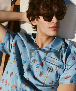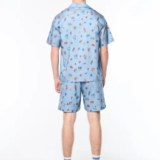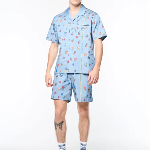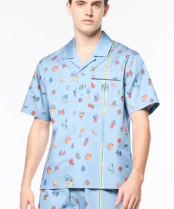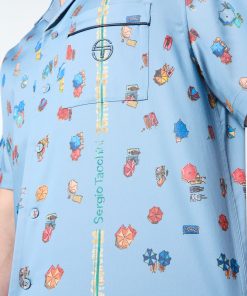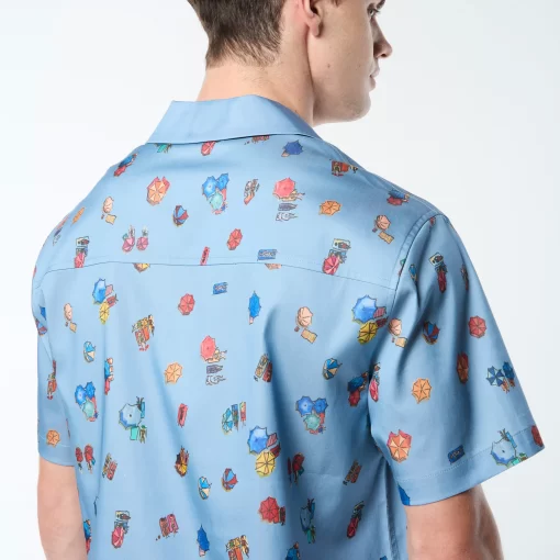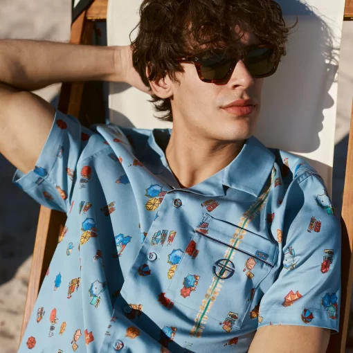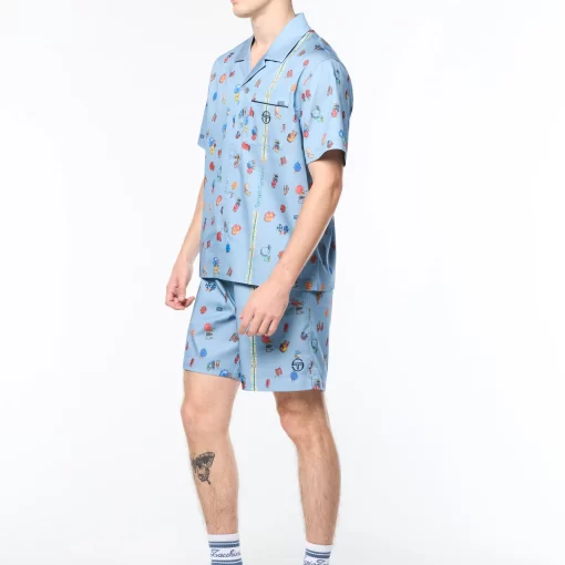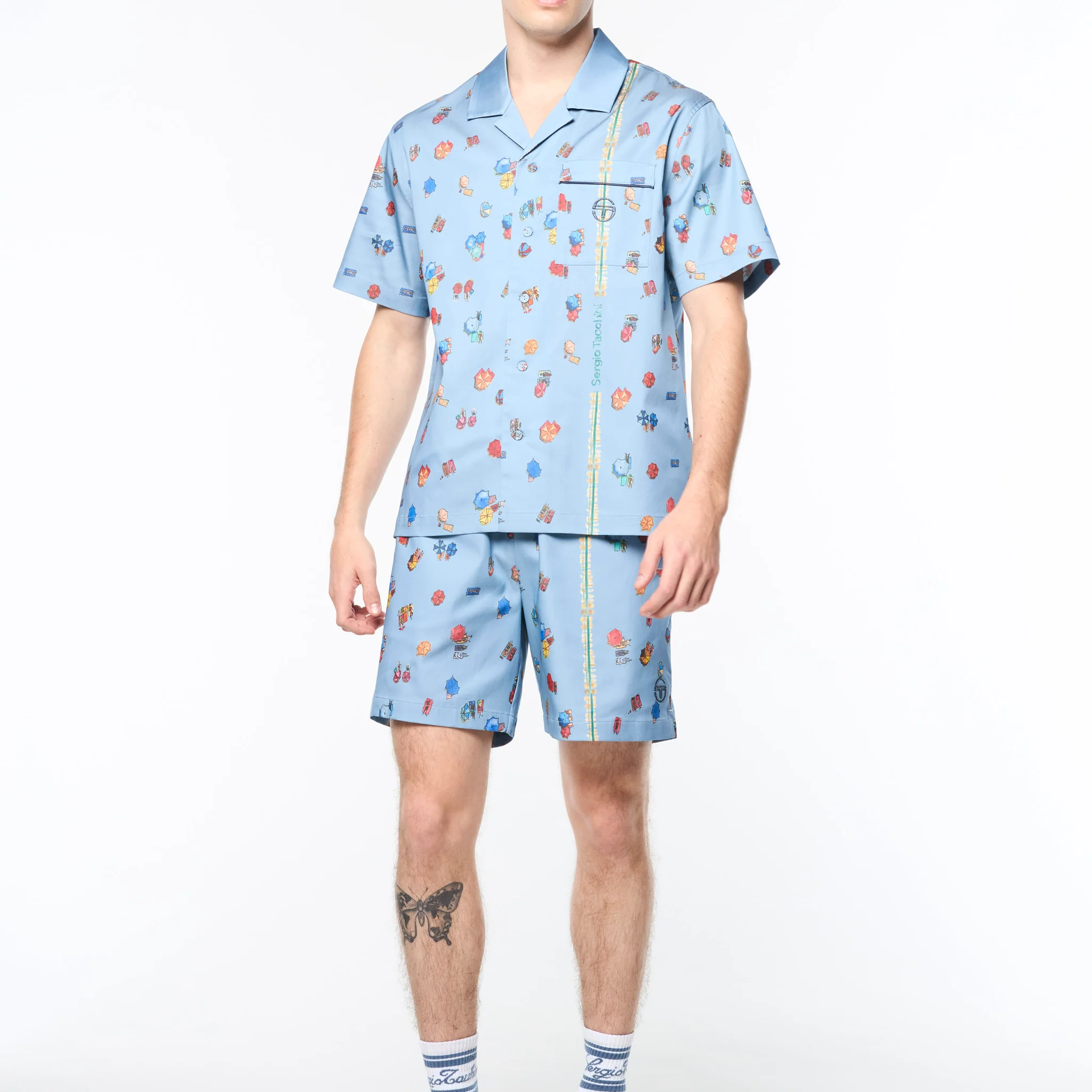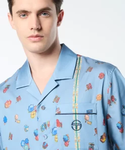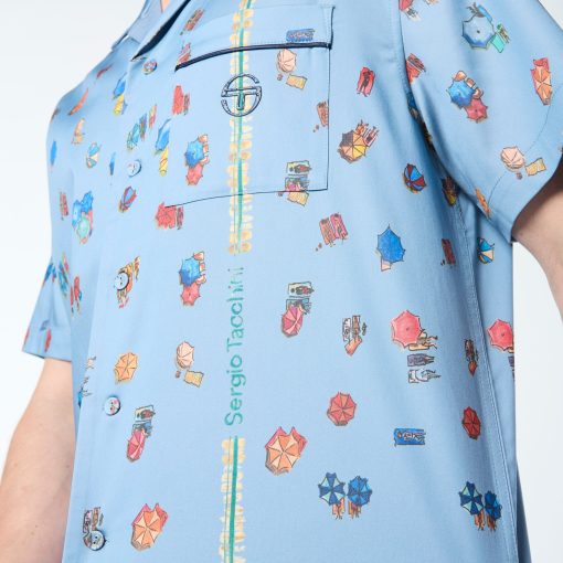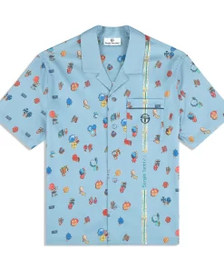 The Tosca Cabana Shirt is crafted from a luxurious Tencel-blend stretch fabric with a satin-like finish that’s exceptionally soft and smooth to the touch. Perfect for warmer weather, this leisure resort button-up features an all-over Mediterranean beach scene, casual camp collar, and a water droplet silicone ‘ST’ monogram at the chest pocket for a seaside vibe.
