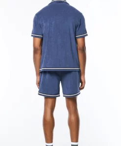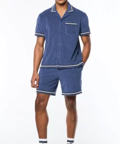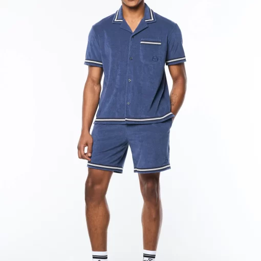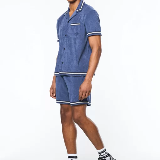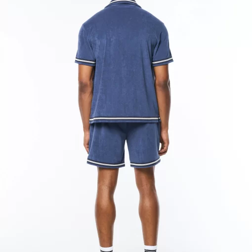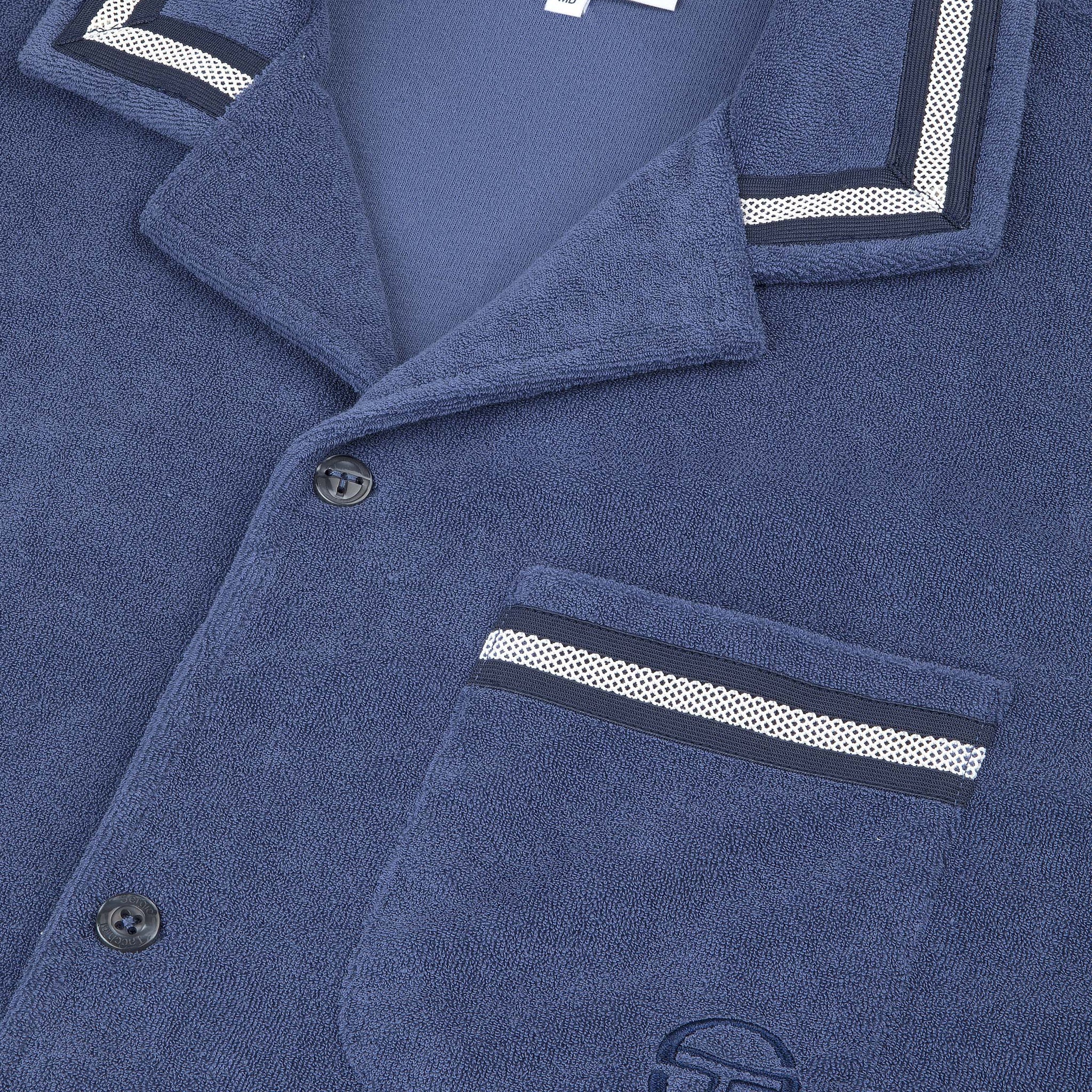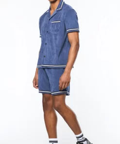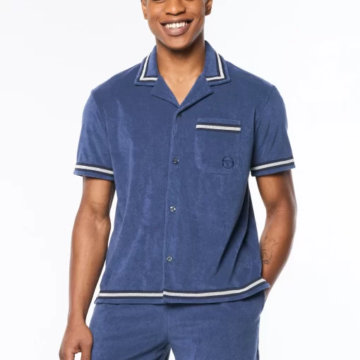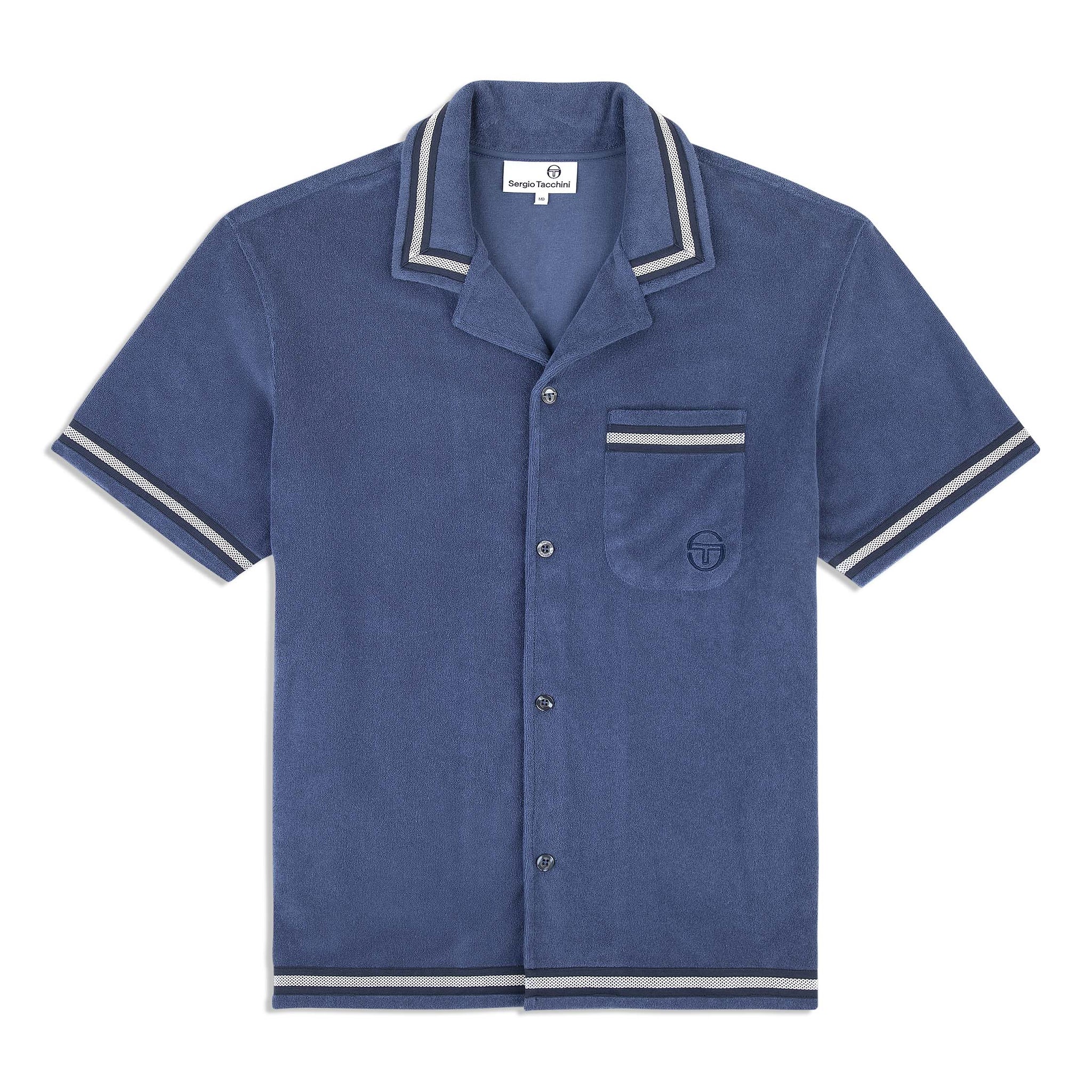 Upgrade your warm-weather wardrobe with the Vitus Terry Cabana Shirt, crafted from luxurious terry towel fabric for contemporary comfort with a touch of breezy nonchalance. Topped with a casual camp collar, this premium button-up is complete with custom “net” trim taping as an homage to classic tennis nets.