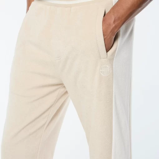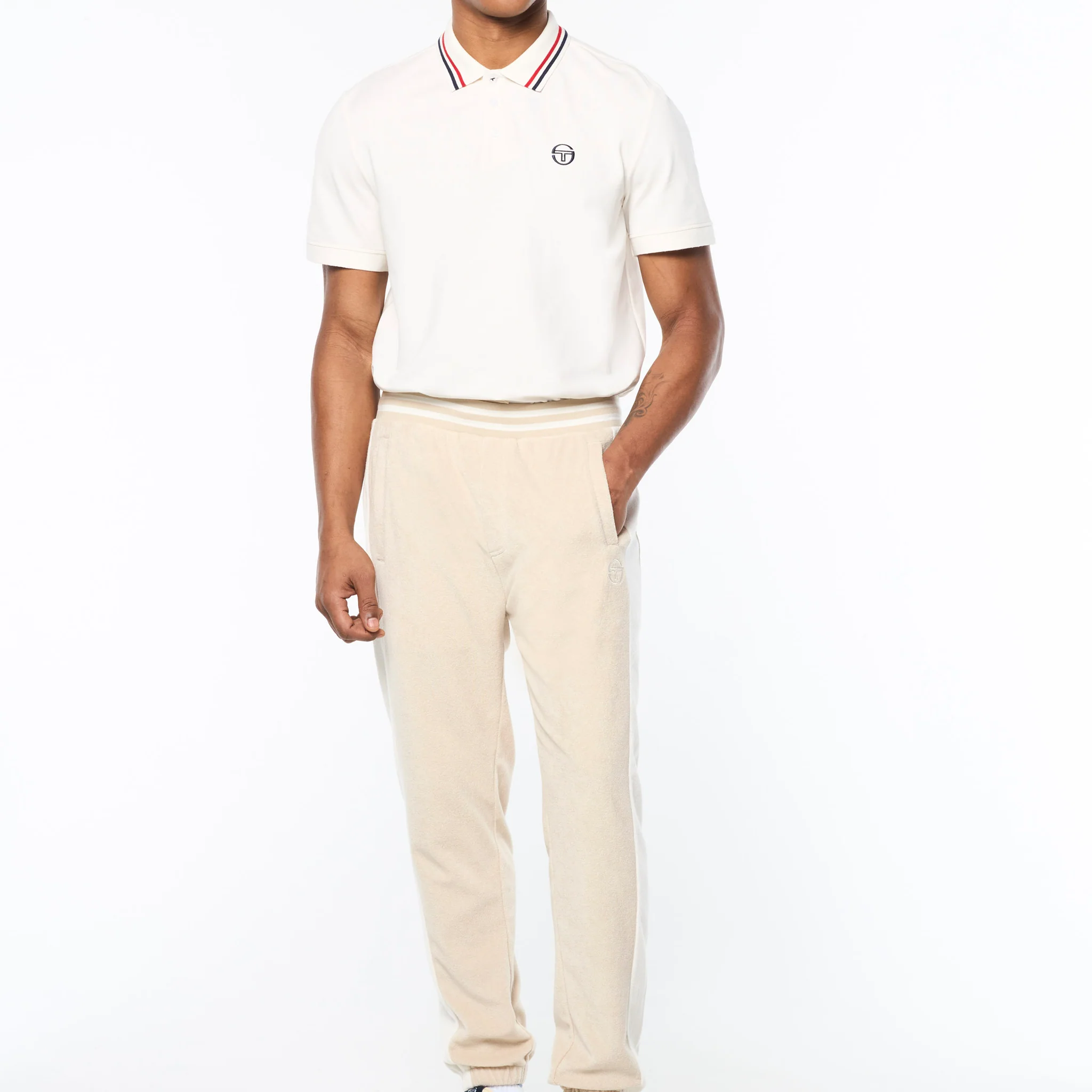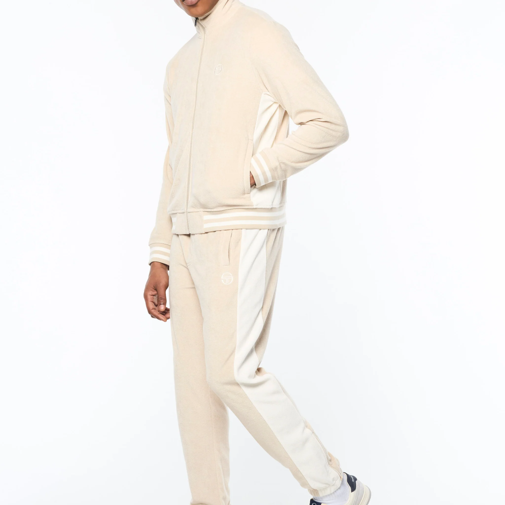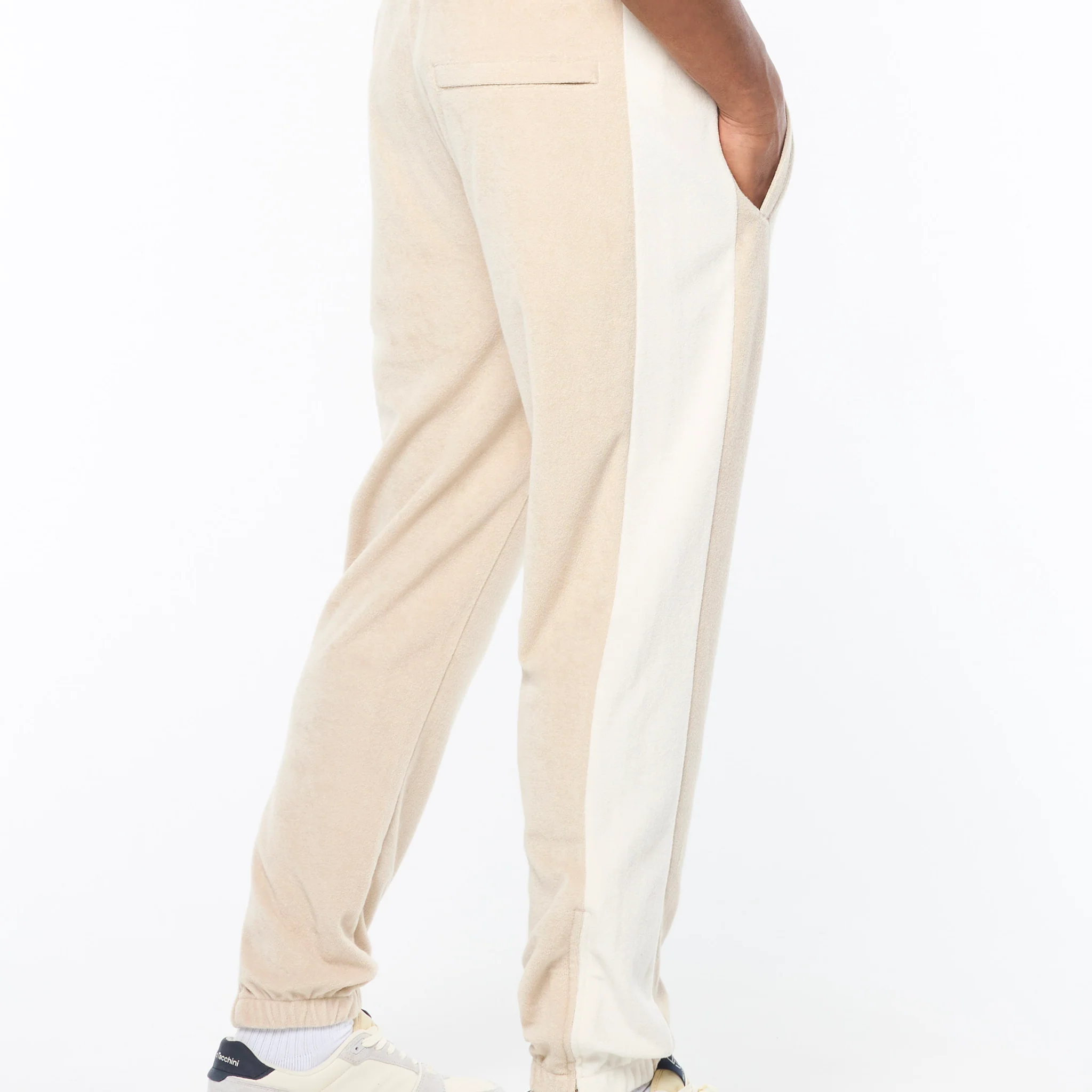 Upgrade your warm-weather wardrobe with the Vitus Track Pant, crafted from luxurious terry towel fabric for contemporary comfort with a touch of breezy nonchalance. Featuring a soft rib-knit waistband and adjustable ankle zips, these premium track pants are finished with color-block paneling and stripe details as a nod to retro leisurewear.