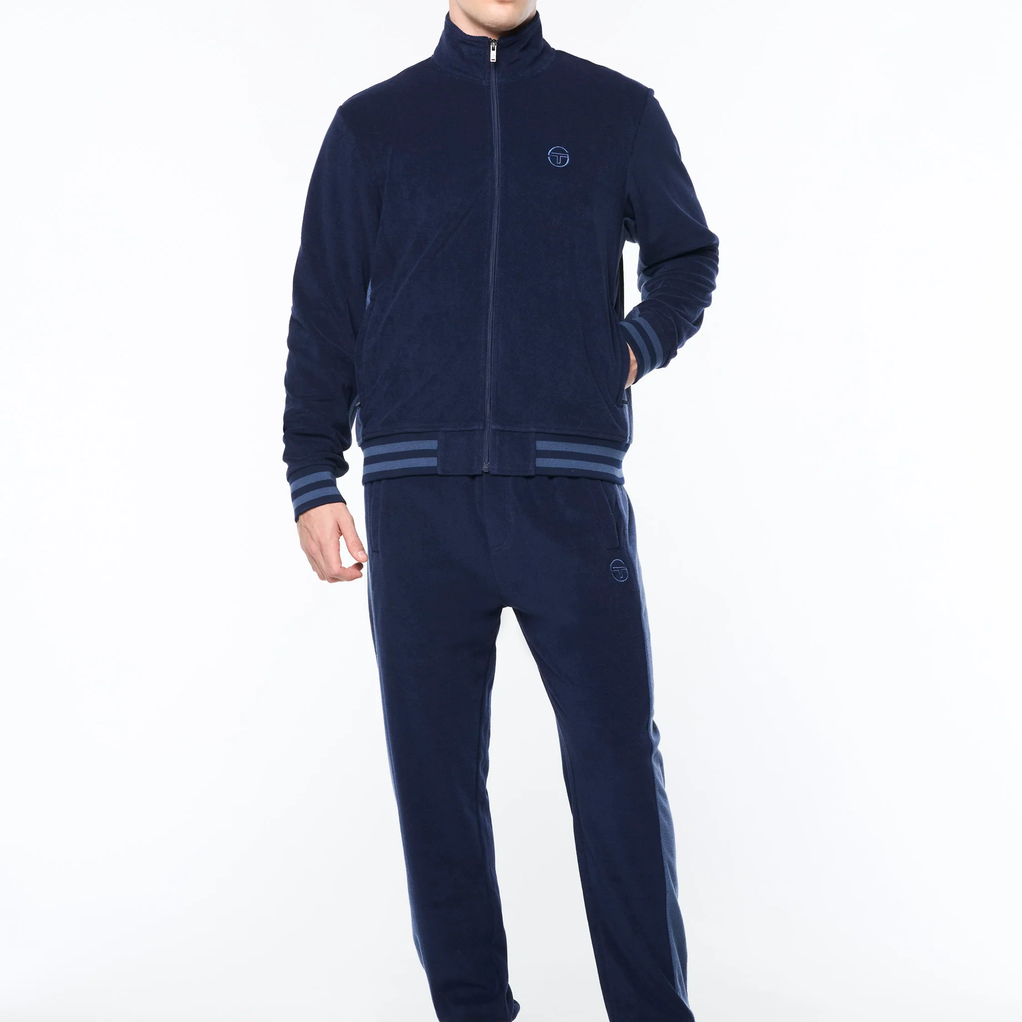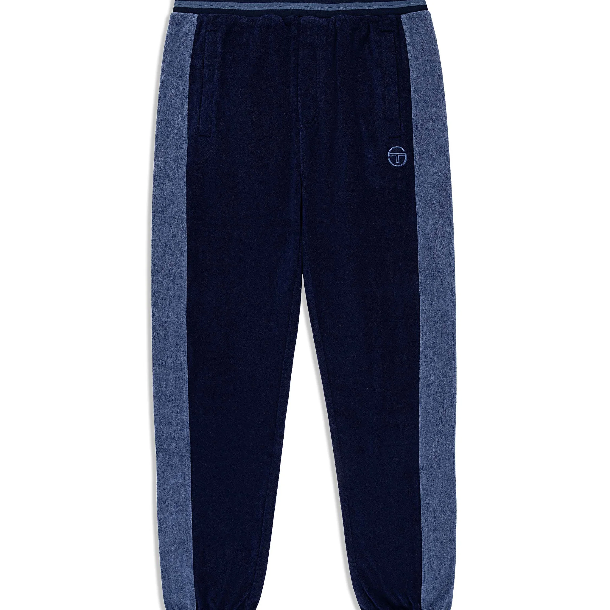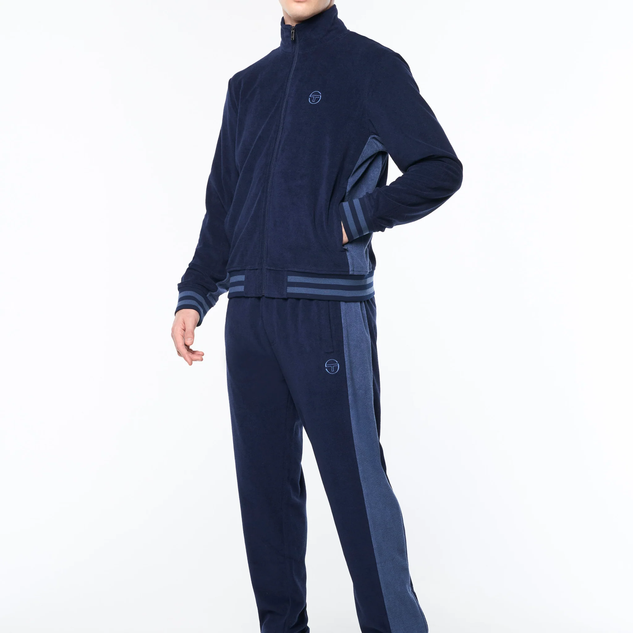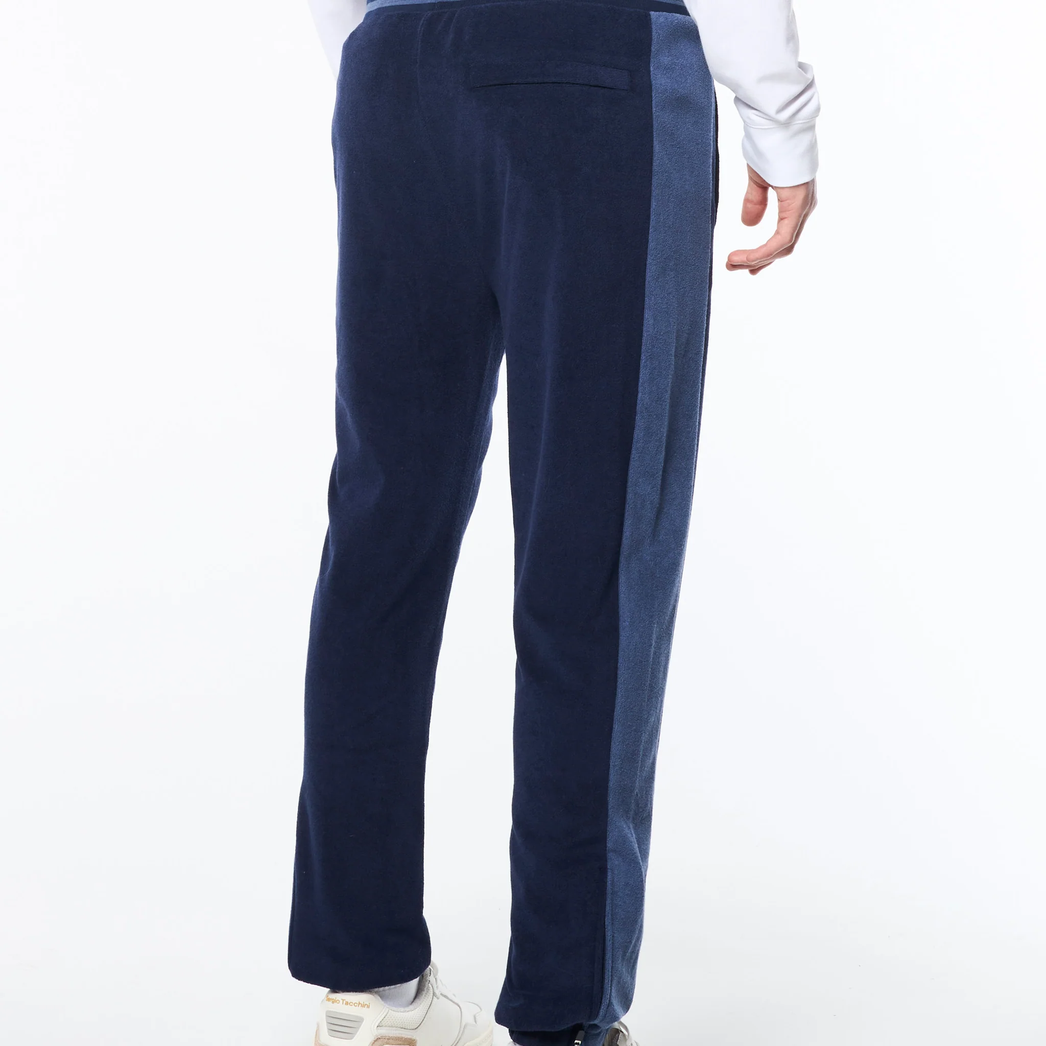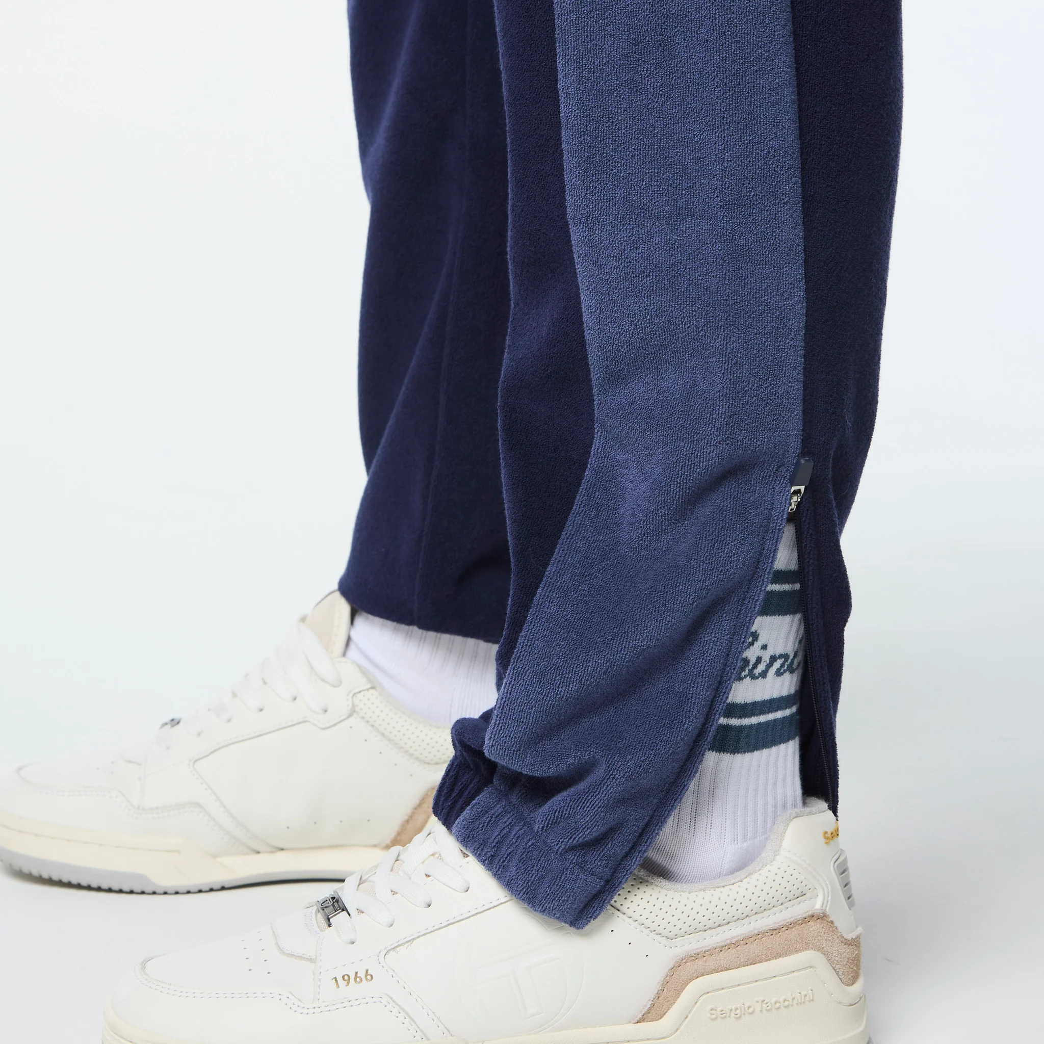 Upgrade your warm-weather wardrobe with the Vitus Track Pant, crafted from luxurious terry towel fabric for contemporary comfort with a touch of breezy nonchalance. Featuring a soft rib-knit waistband and adjustable ankle zips, these premium track pants are finished with color-block paneling and stripe details as a nod to retro leisurewear.