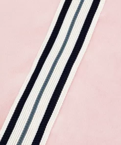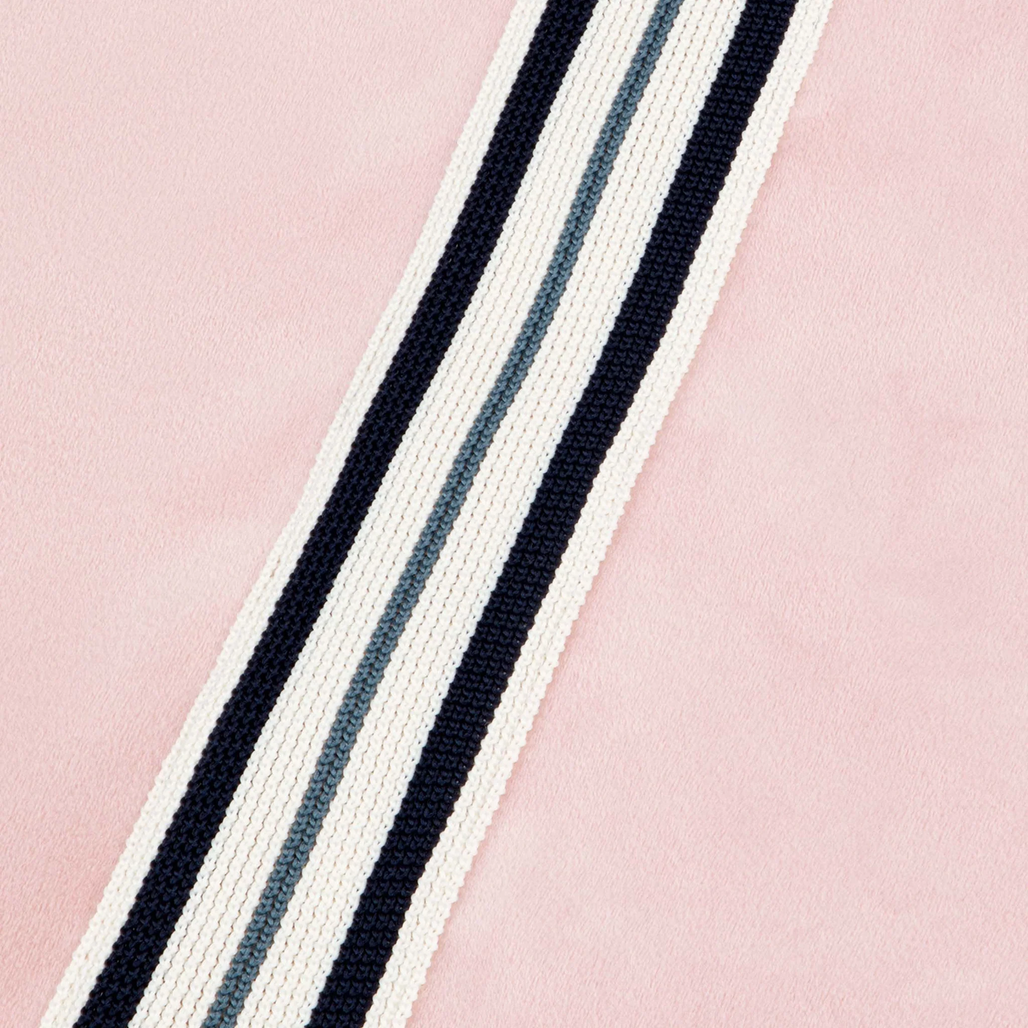- Rib-knit cuffs with striped tipping detail