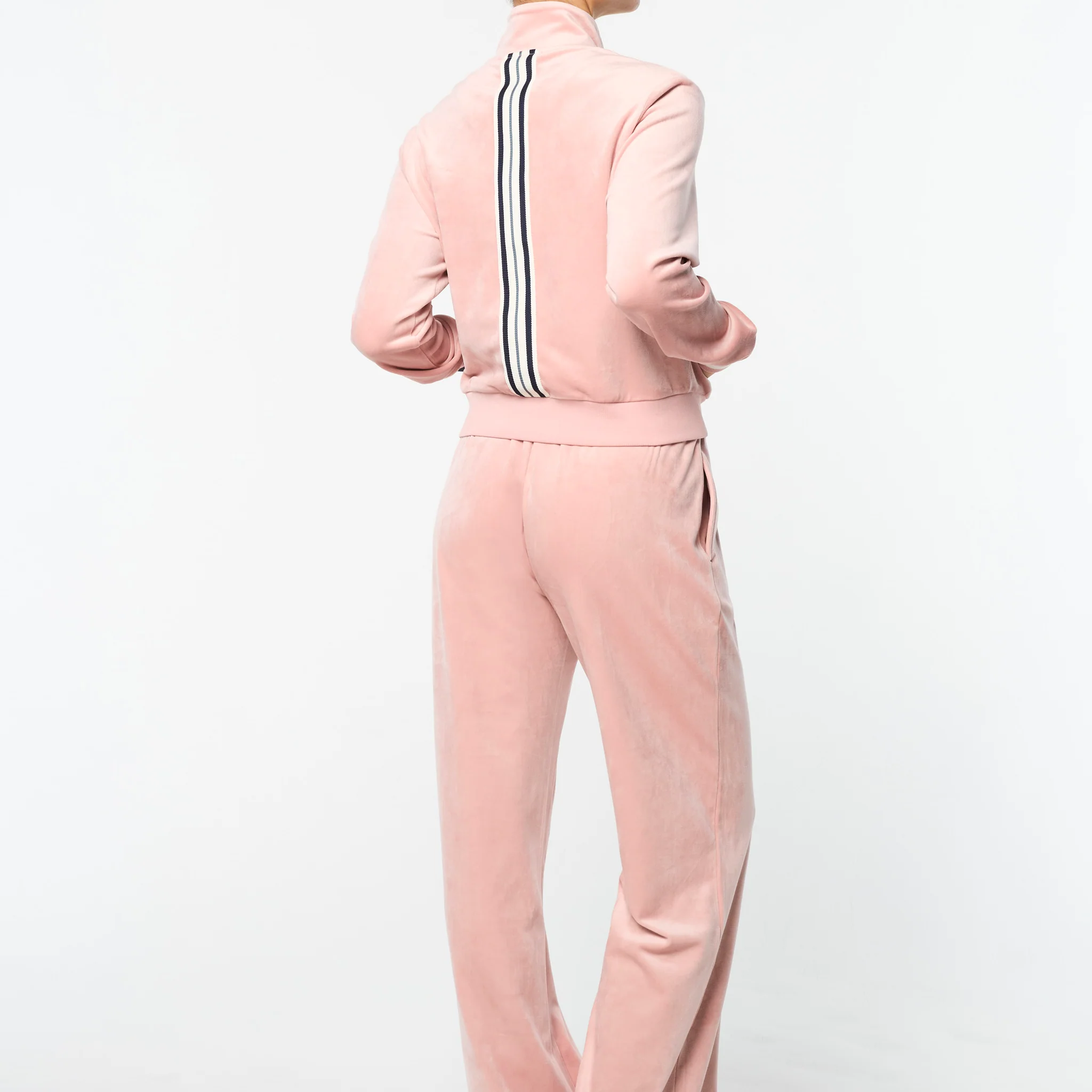 Crafted from super plush velour with sporty striped taping down the back, our luxe Adele Track Jacket is perfect for morning workouts, evening strolls, and everything in between. Dress it up or down—the choice is yours.