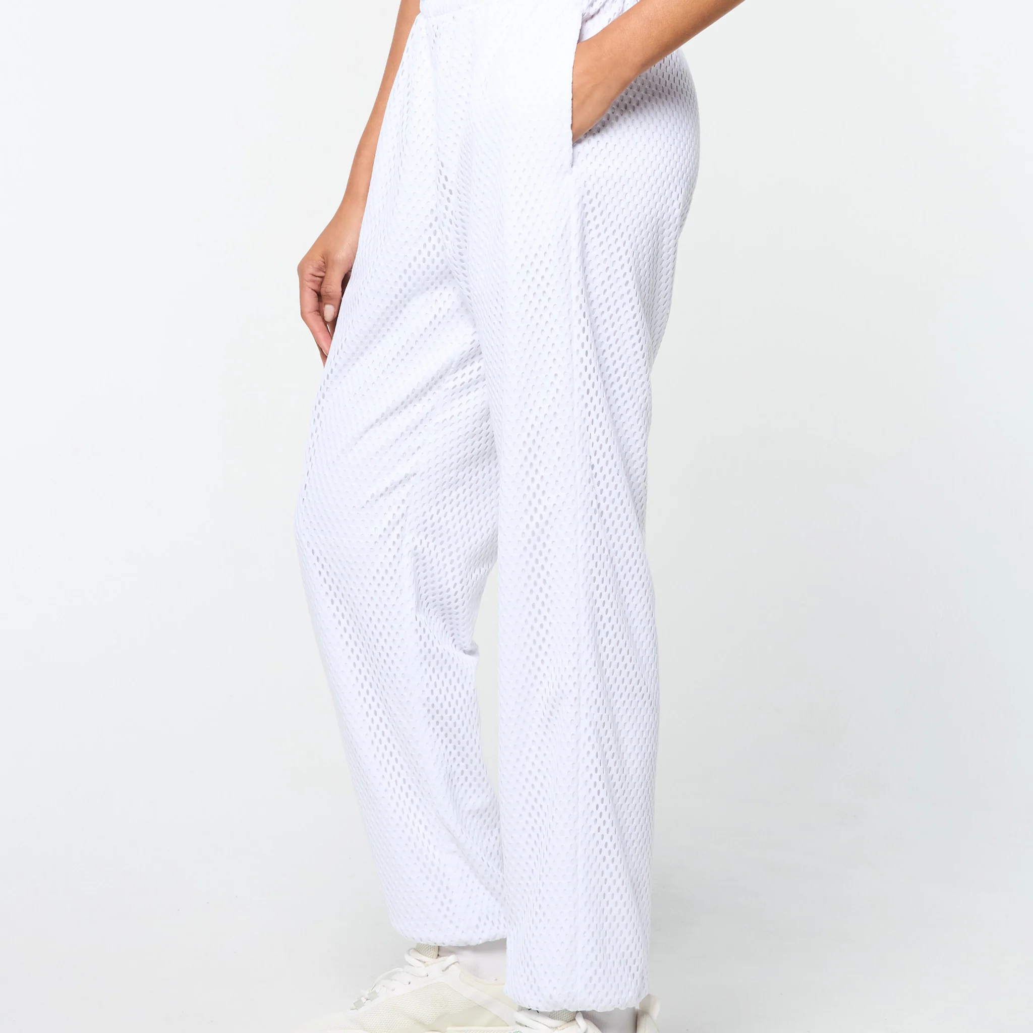 Your new go-to for workouts, walks, and luncheons, the Adria Mesh Track Pant is crafted from breathable mesh over a lightweight lining to keep you cool and comfy through your everyday. Topped with an adjustable drawstring elastic waistband, these athletic tennis track pants are equipped with spacious pockets for all your essentials.
