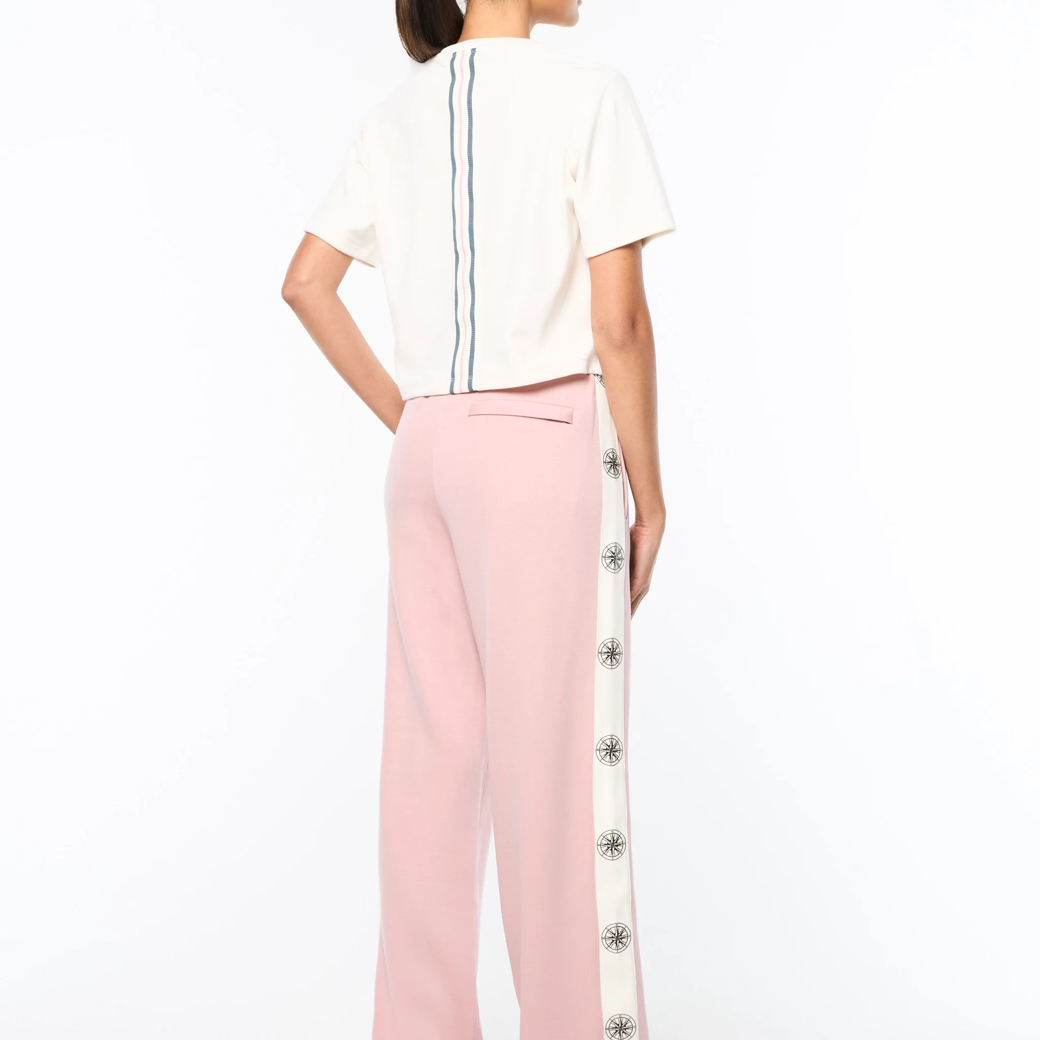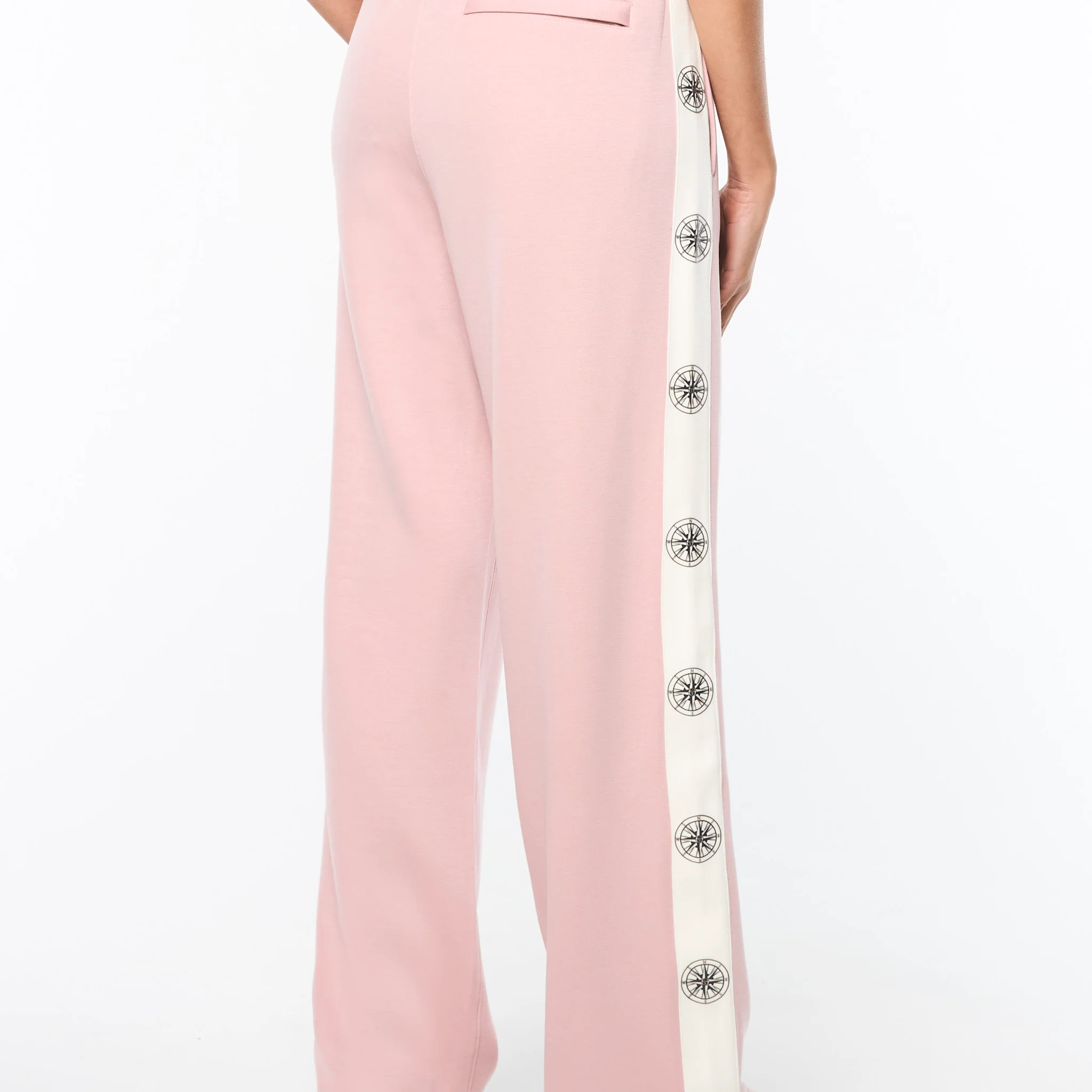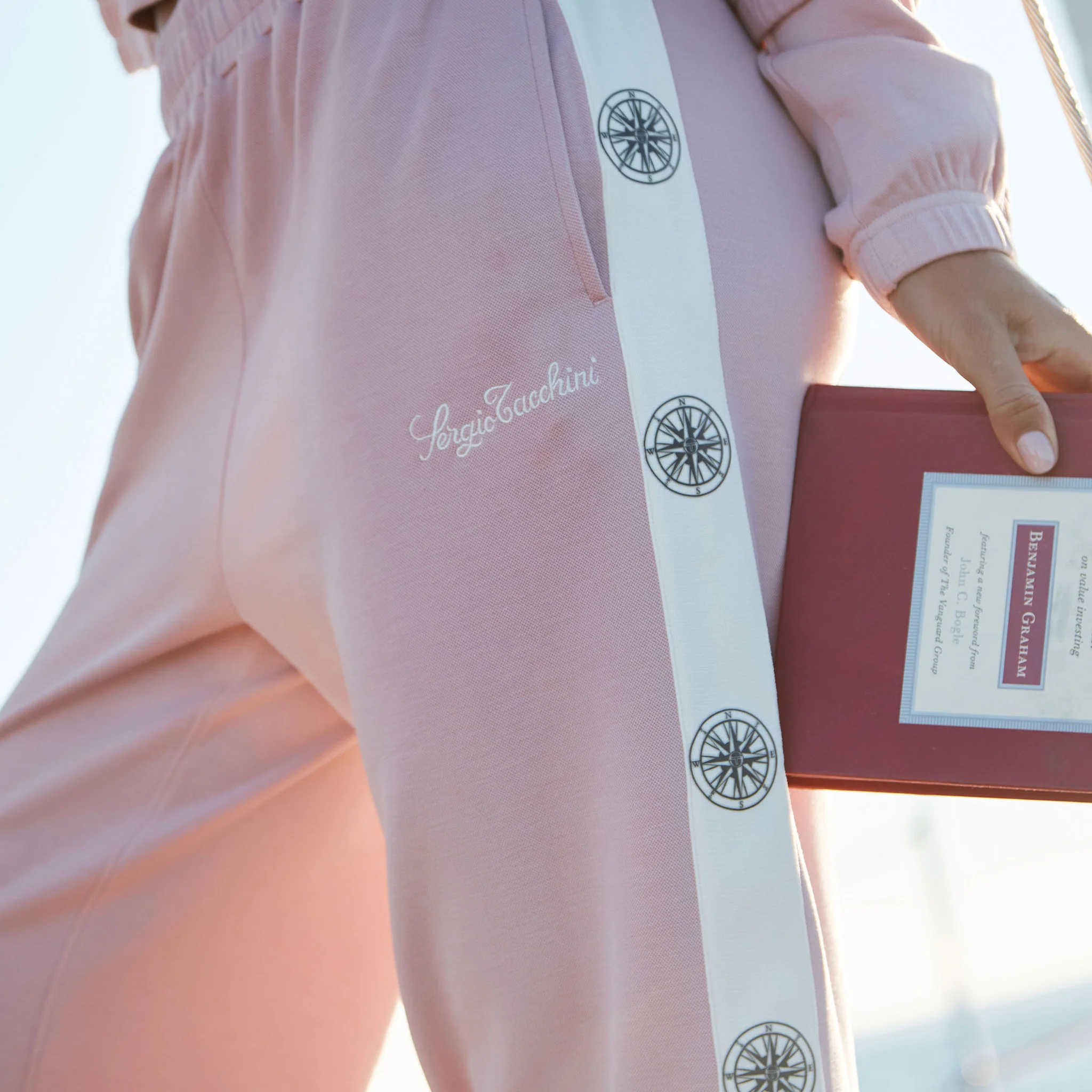 Set sail in our Women’s Bussola Track Pant, crafted from a luxurious Tencel blend piqué fabric that’s soft and breathable with a subtle stretch—perfect for active individuals and athleisure-wear enthusiasts alike. Featuring a nautical “Compass” rose repeat motif across contrast taping down the legs, these refined track pants offer style and comfort with a Riviera vibe.