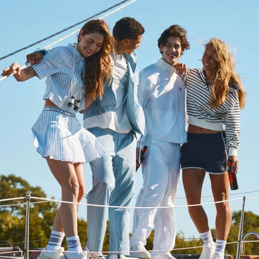 Inspired by Roman columns—a nod to Sergio Tacchini’s Italian heritage.