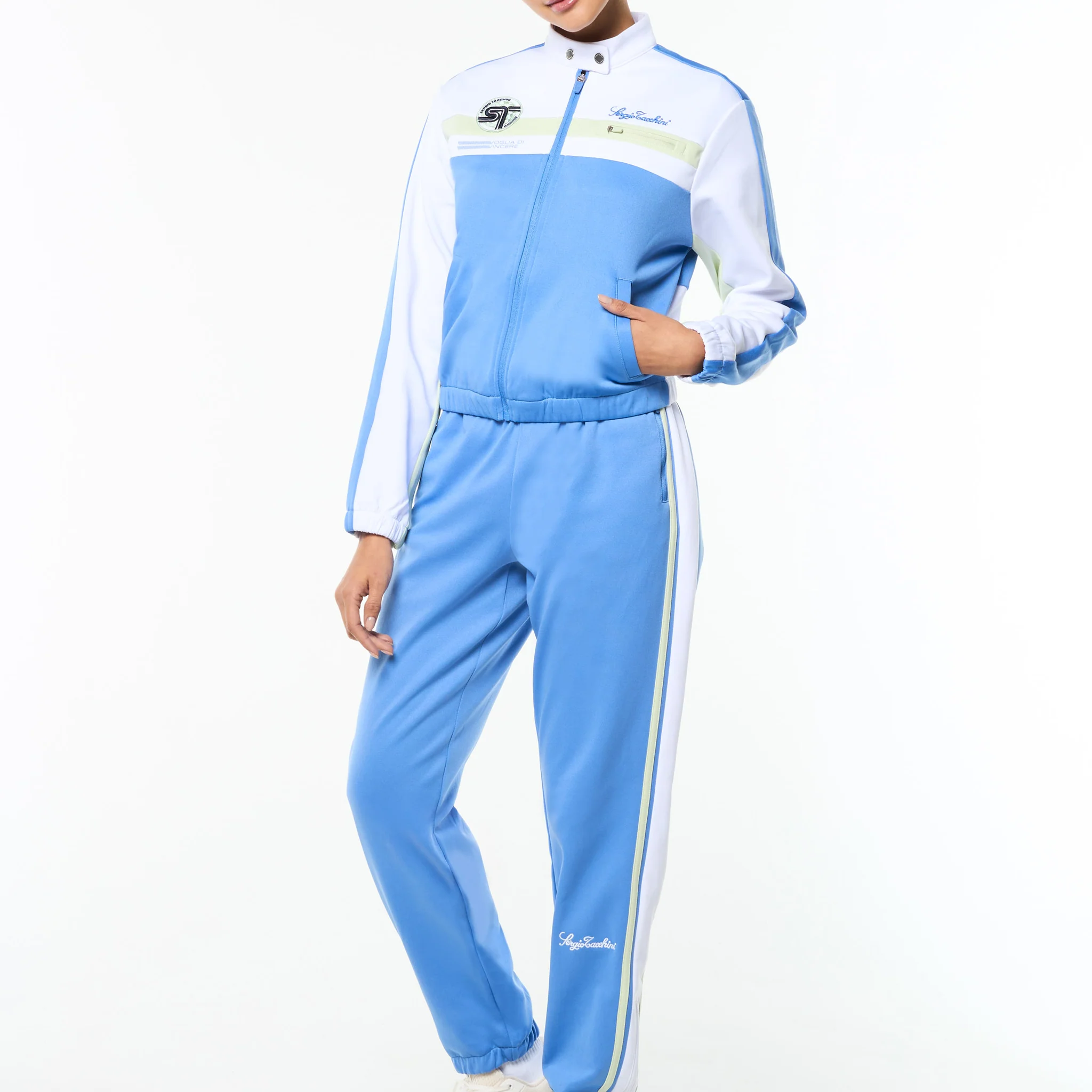 - Embroidered Sergio Tacchini script logo at left chest