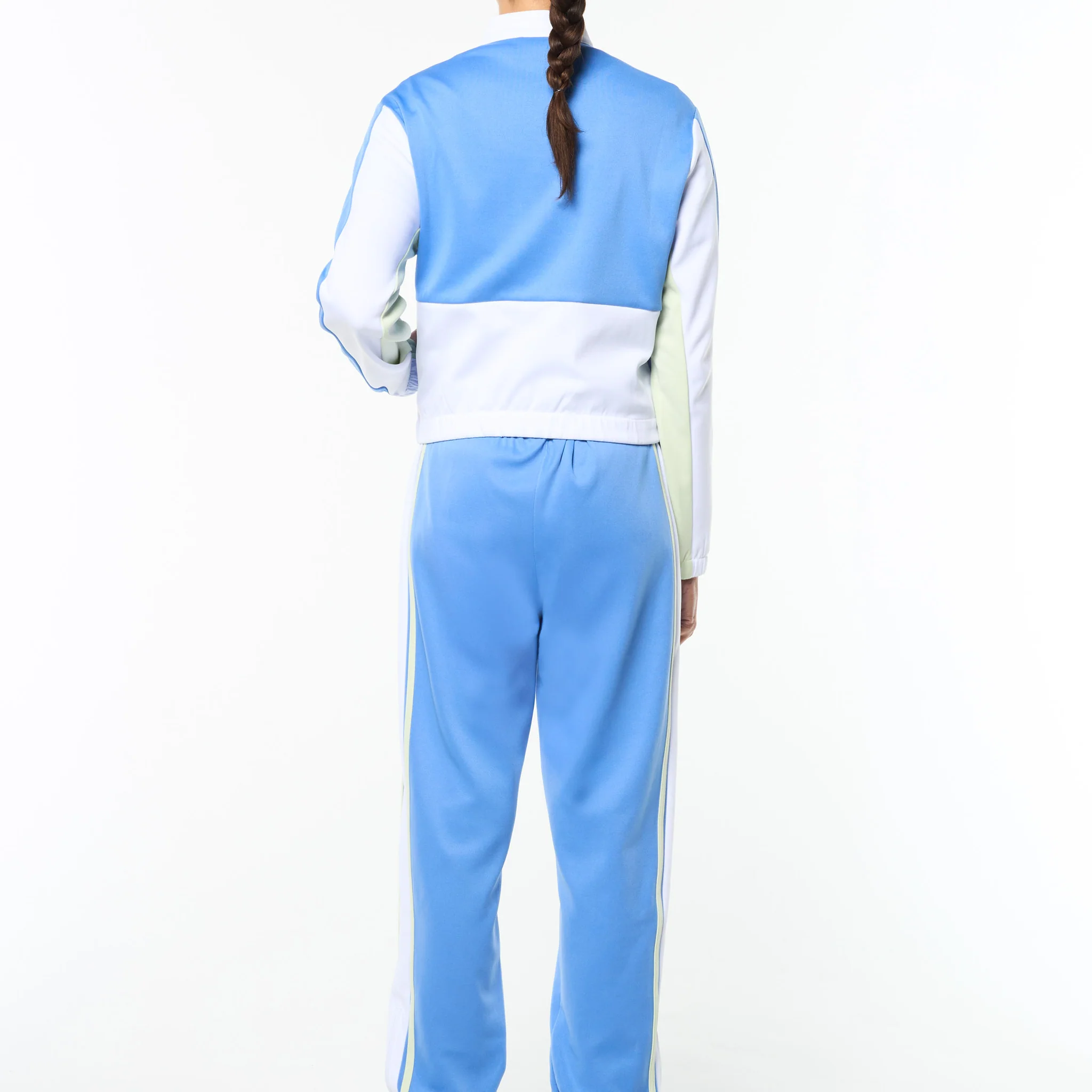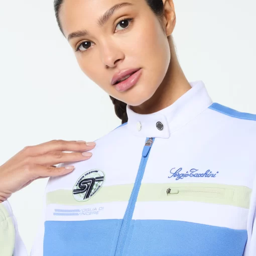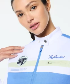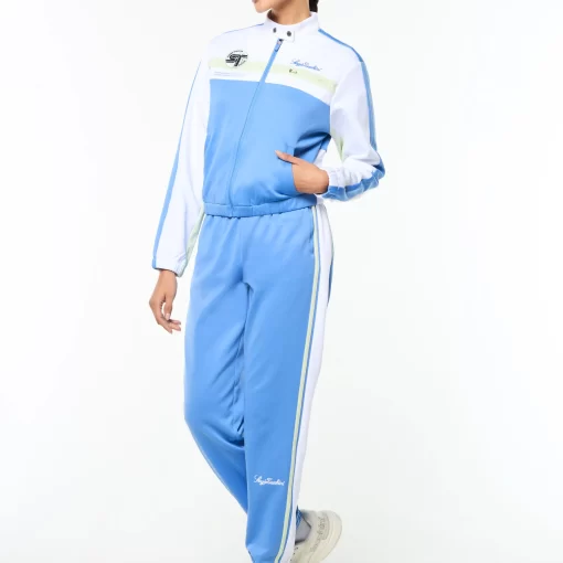 Where sport meets statement. Our Women’s Corsa Track Jacket takes cues from vintage racing kits—revved up with modern edge. Crafted from soft yet structured double-face knit fabric, this premium track jacket features bold color-block paneling, a sleek snap-button stand collar, and a custom racing-inspired ST monogram “Corsa” patch.