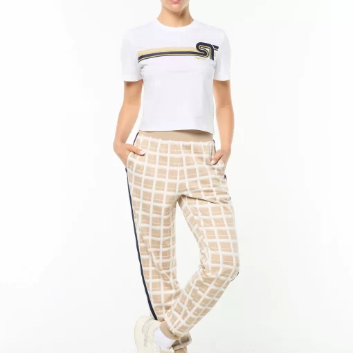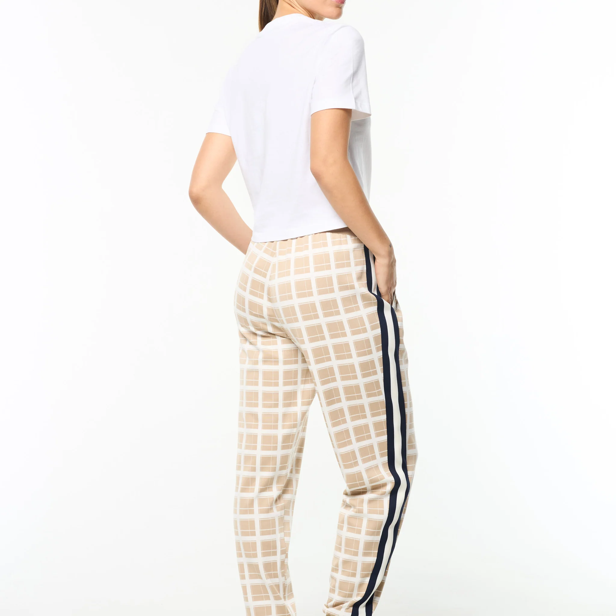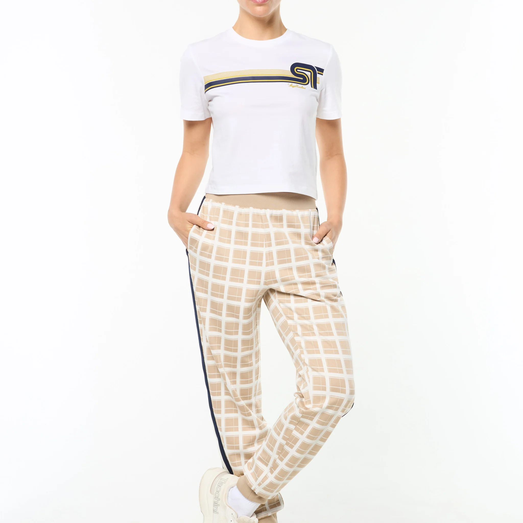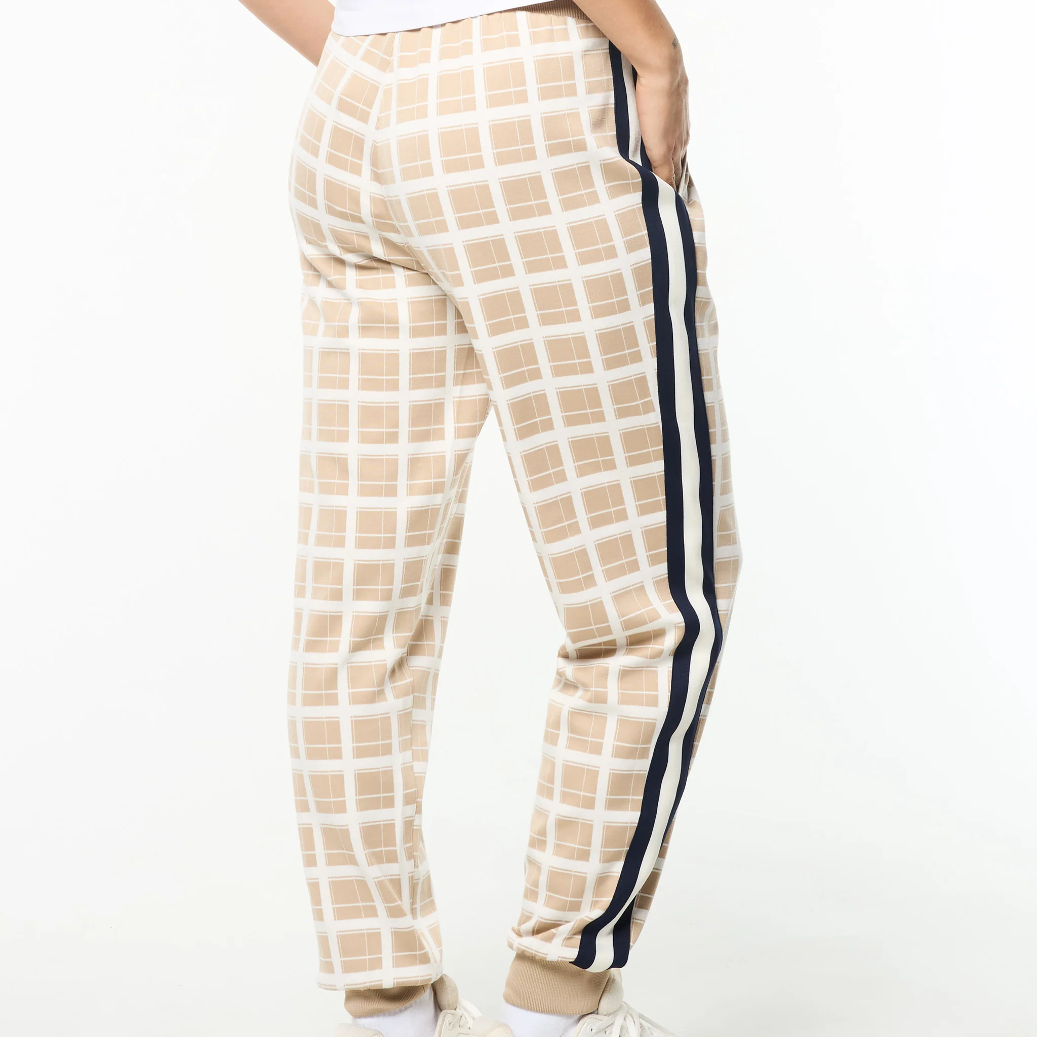 A new women’s spin on a long-time Tacchini classic. The Damarindo Check Track Pant features an all-over custom jacquard check pattern derived from our iconic Damarindo double stripe for a breezy, youthful vibe. Stripe taping down the legs adds a sporty touch, while a solid rib-knit waistband completes the look.