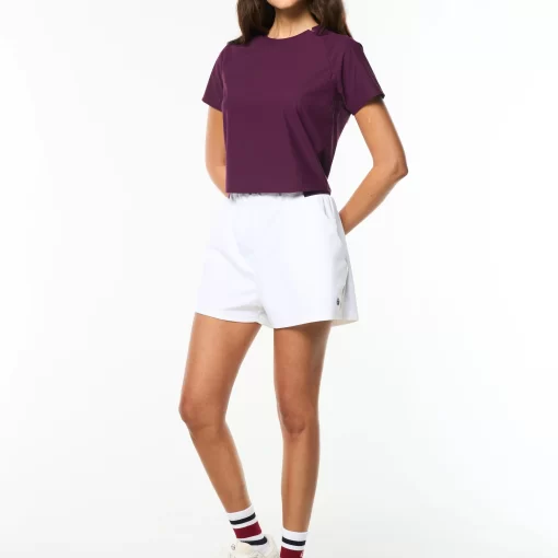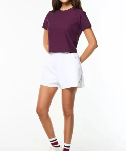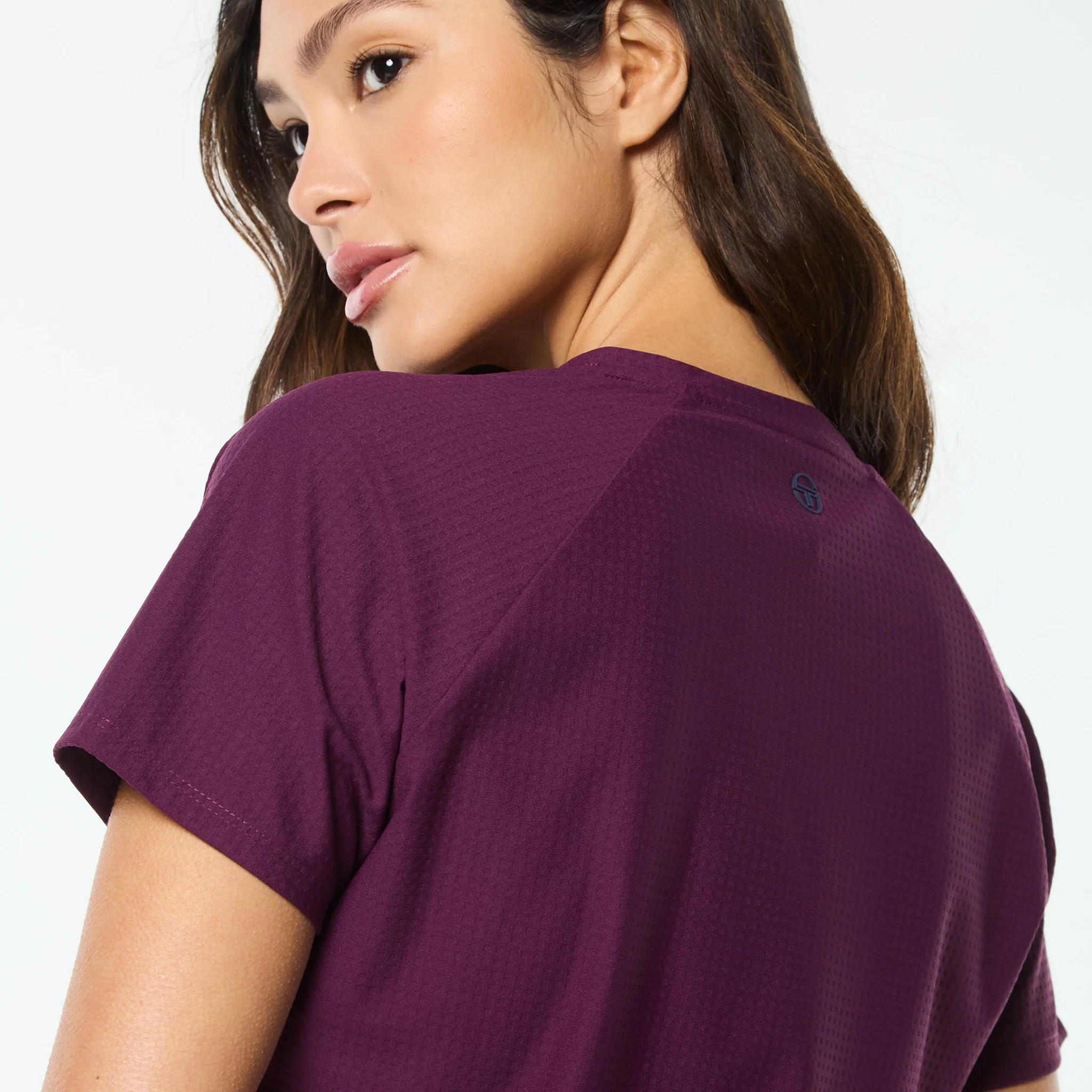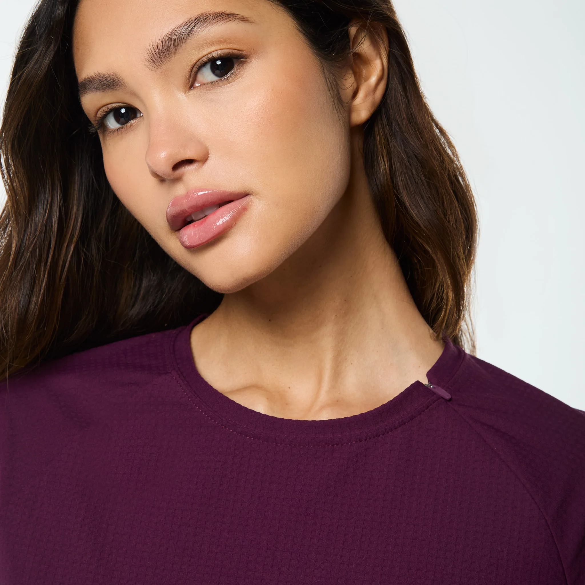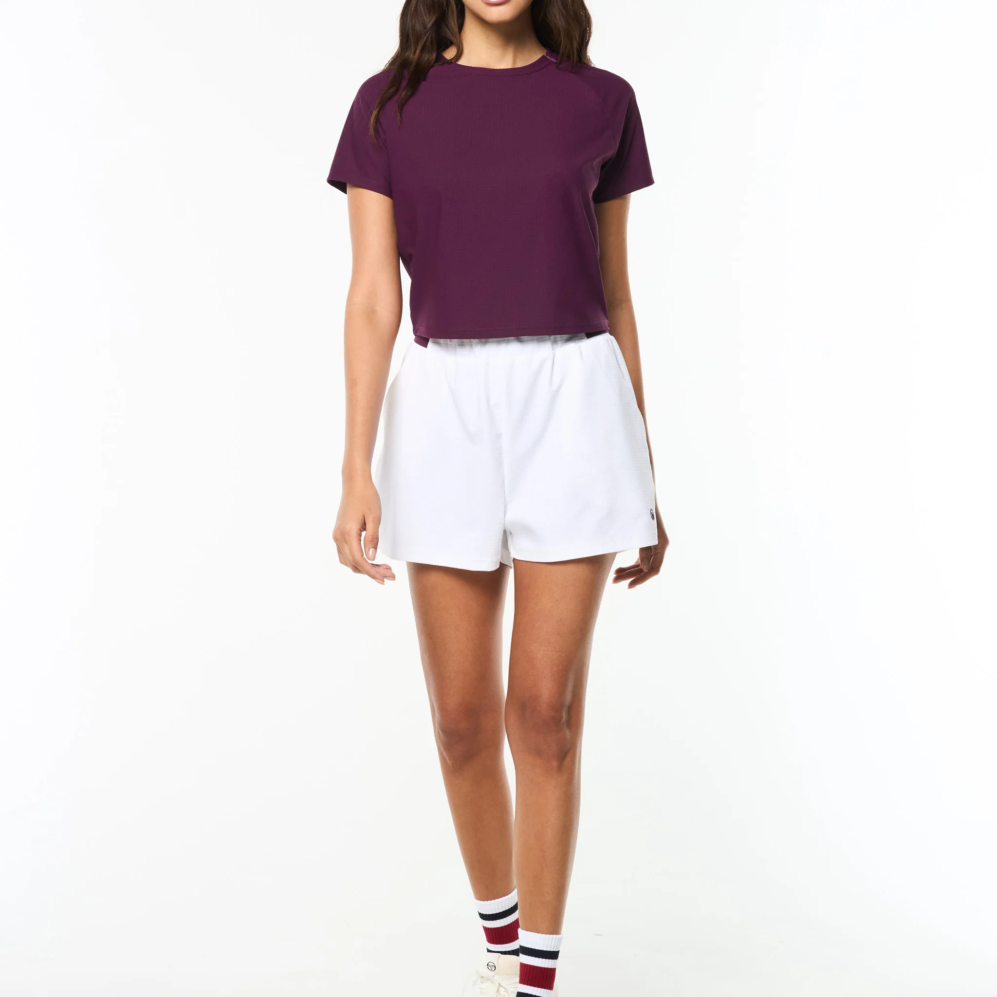 Streamlined and sculpted, the Eva Cropped Top is built to move with you. Crafted from a stretch grid knit that’s breathable and moisture-wicking with a subtle texture, this fitted performance tee features a sleek invisible zip at the collar seam and a barely-there silicone logo hit at the back. Designed for sport, styled for everyday.