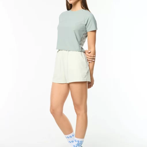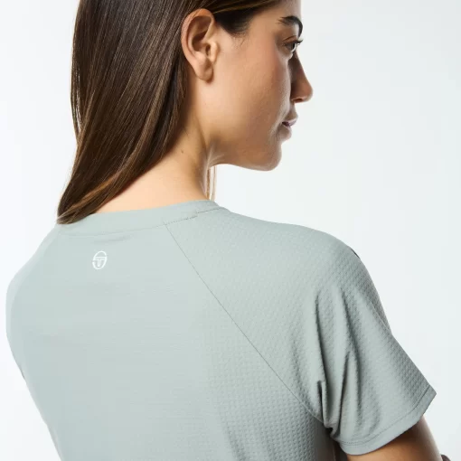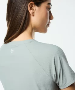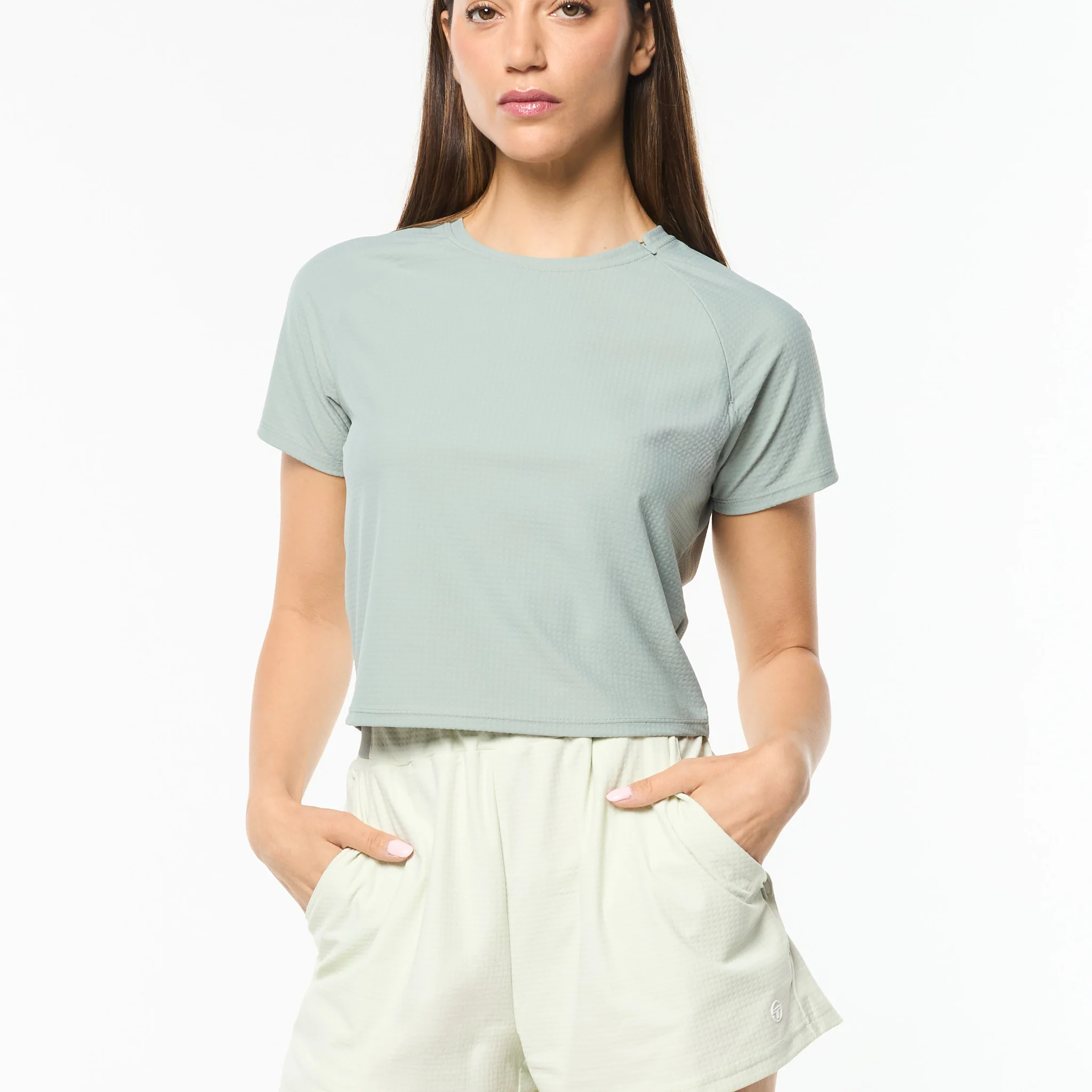 Streamlined and sculpted, the Eva Cropped Top is built to move with you. Crafted from a stretch grid knit that’s breathable and moisture-wicking with a subtle texture, this fitted performance tee features a sleek invisible zip at the collar seam and a barely-there silicone logo hit at the back. Designed for sport, styled for everyday.