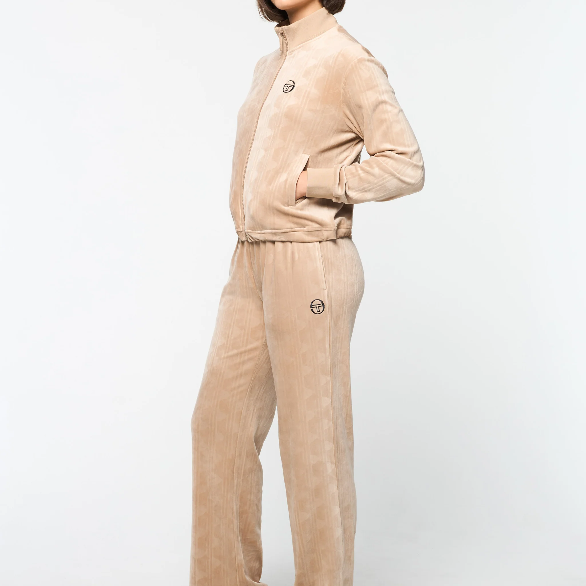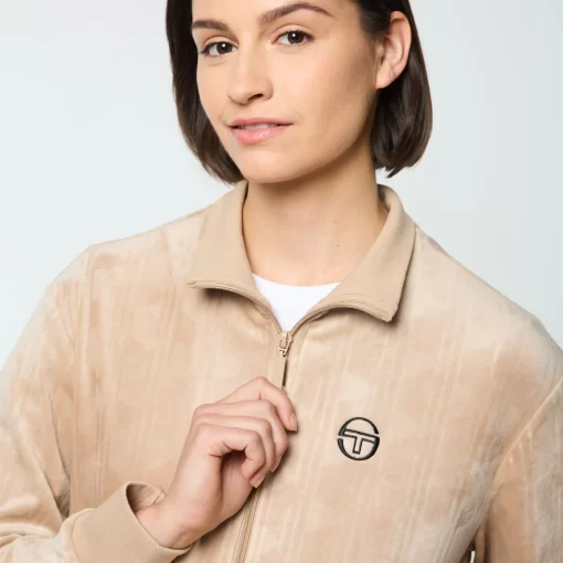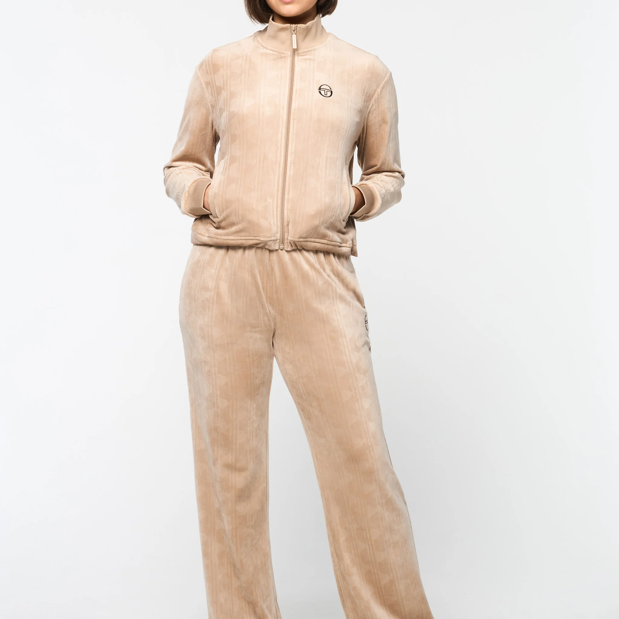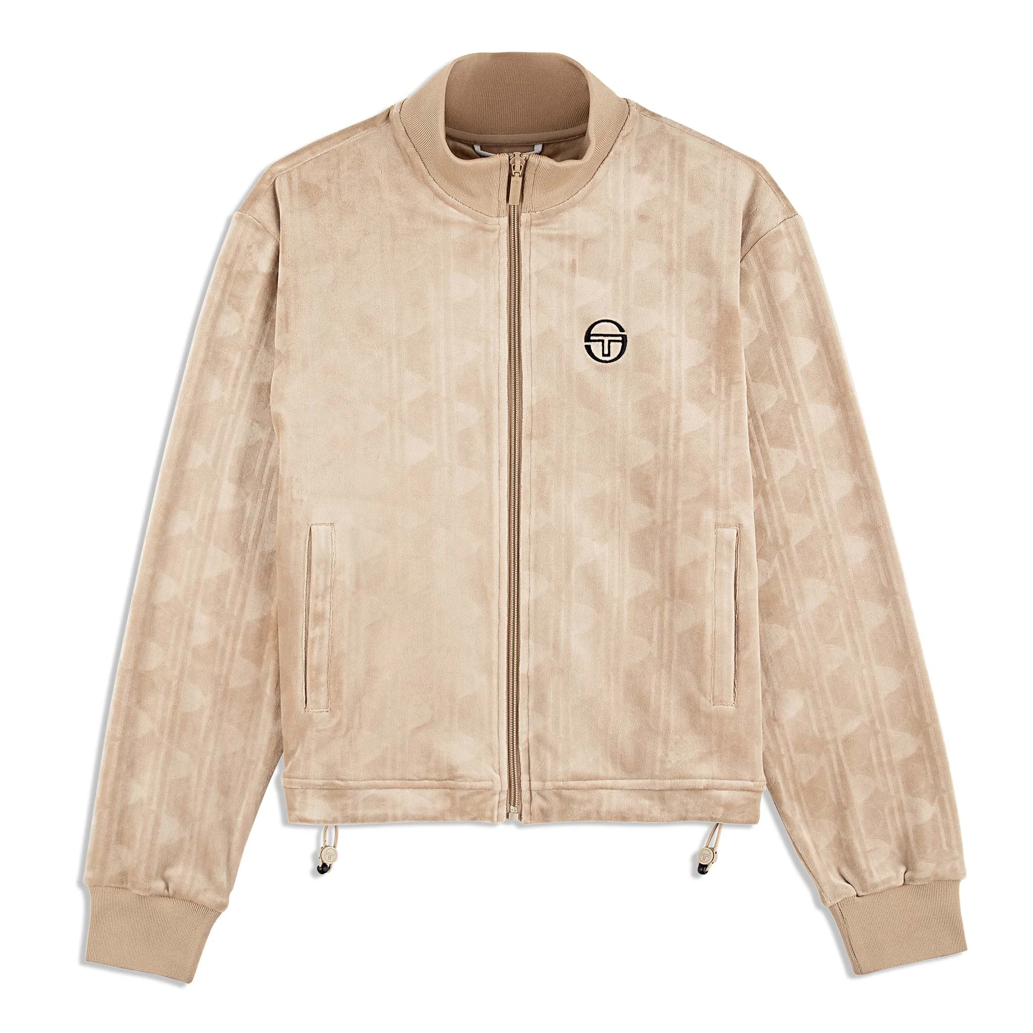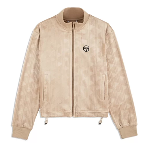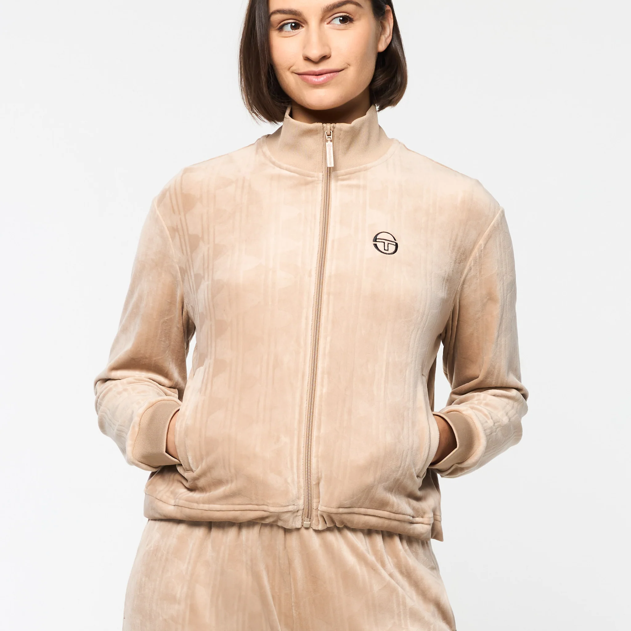 Elevate your everyday with the Gabrisa Velour Track Jacket, crafted from super plush velour with a tennis-ball inspired debossed motif for a luxurious spin on classic sportswear. Featuring a soft rib-knit stand-up collar and spacious handwarmer pockets, this premium full-zip is finished with an adjustable toggle cord at the hem for a secure fit.