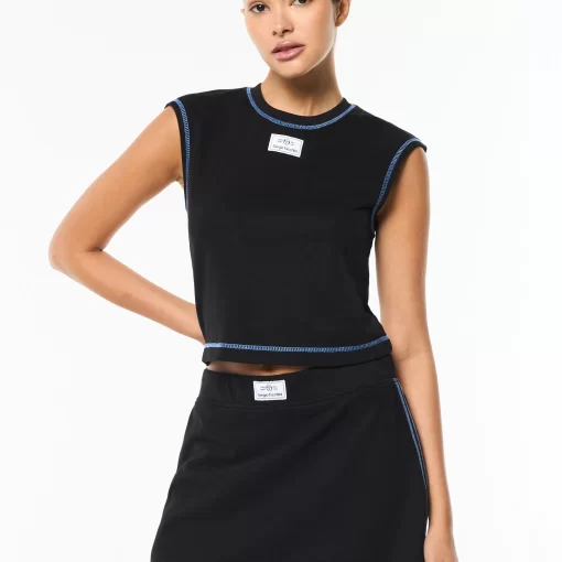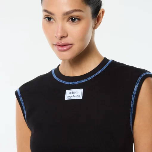 Inspired by timeless tennis elegance, our Greta Tank is crafted from incredibly soft cotton French terry to keep you comfy on the court and beyond. Designed to transition seamlessly from serving aces to lunch outings, this sporty tank features pop color stitching accents and a custom Sergio Tacchini woven label for extra style points.