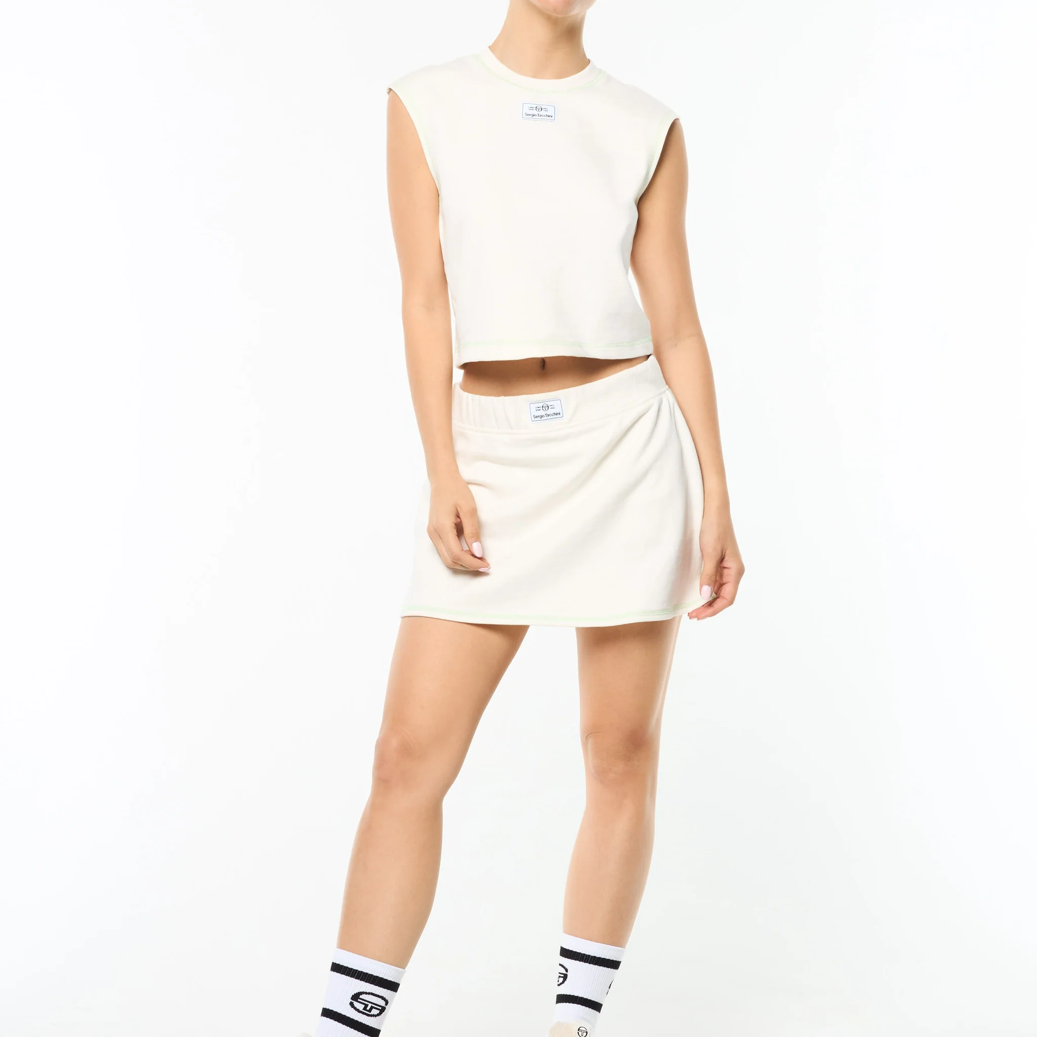 Inspired by timeless tennis elegance, our Greta Tank is crafted from incredibly soft cotton French terry to keep you comfy on the court and beyond. Designed to transition seamlessly from serving aces to lunch outings, this sporty tank features pop color stitching accents and a custom Sergio Tacchini woven label for extra style points.