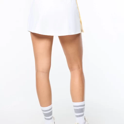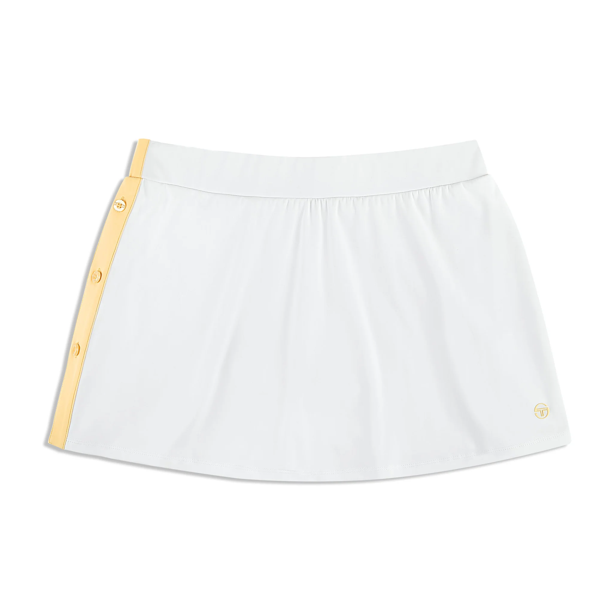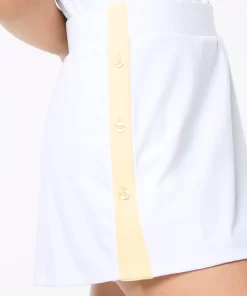 Elevate your game in our Idalia Skort, crafted from performance double knit stretch fabric that’s buttery-soft, moisture-wicking, and breathable. Draped over supportive stretch undershorts, this athletic skort is cut with a contrast button-up placket at the right leg for an adjustable fit and free range of movement on the court.