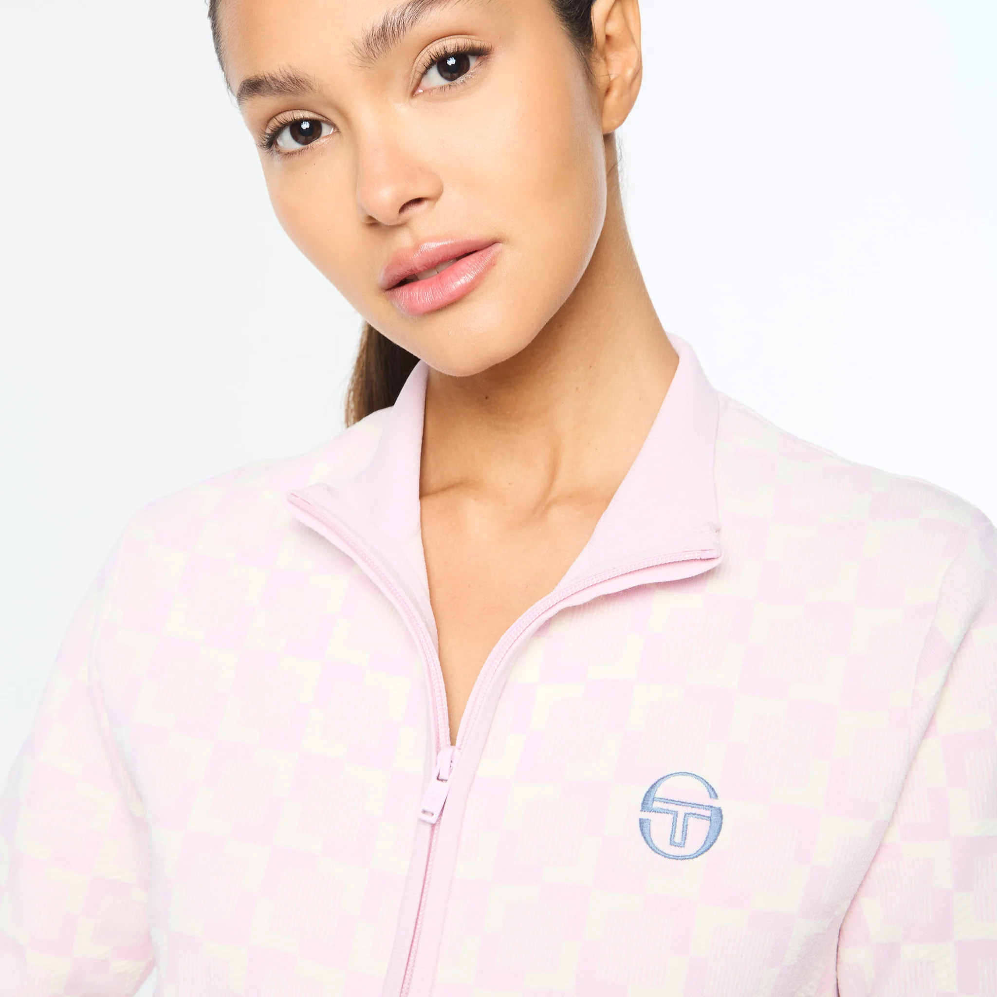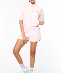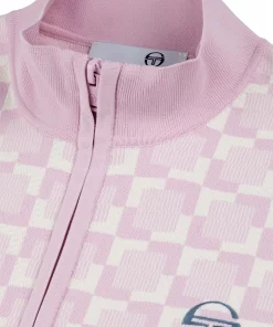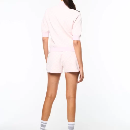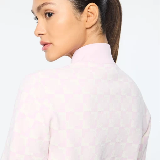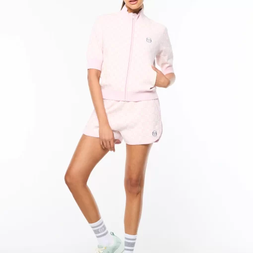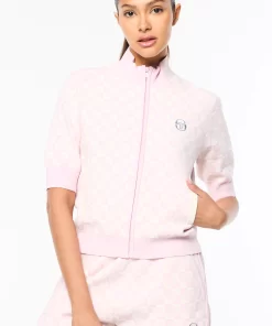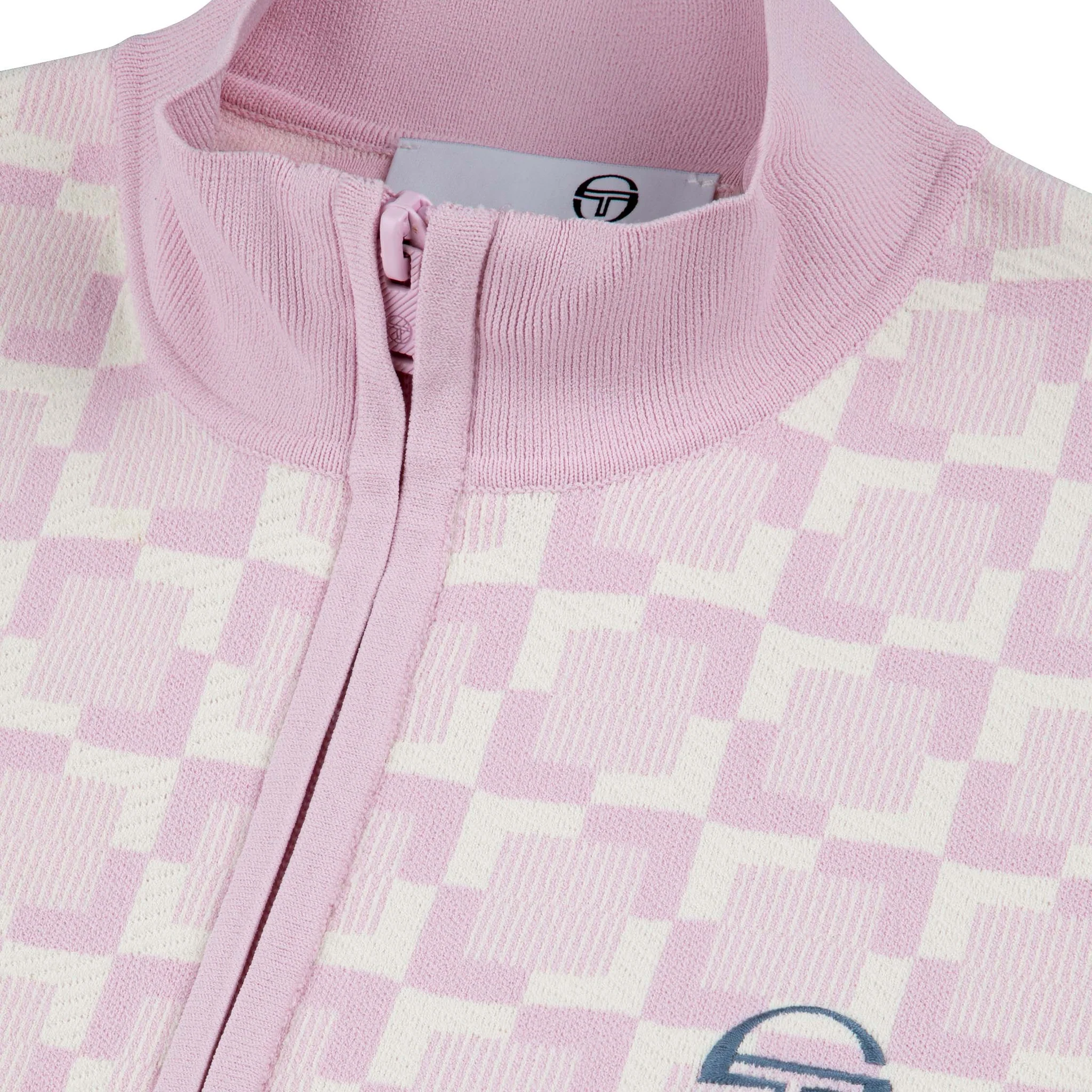 The Leila Short Sleeve Track Jacket is expertly crafted from a luxurious matte viscose and elite fiber blend that’s lightweight and breathable with a sturdy handfeel. Knit using an intricate birdseye-back jacquard technique, this elevated zip-up features an all-over geometric motif and super-soft ribbed trims.