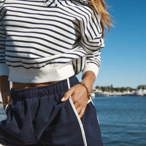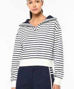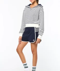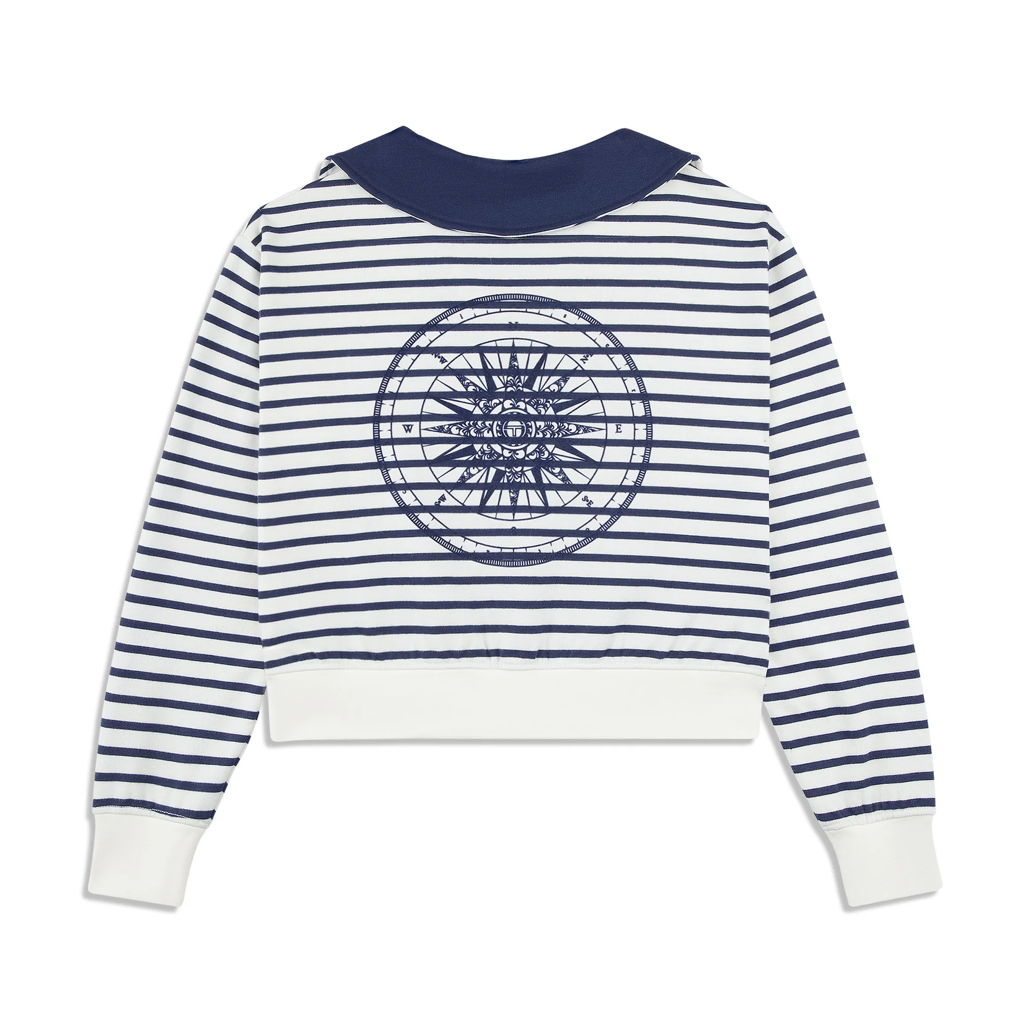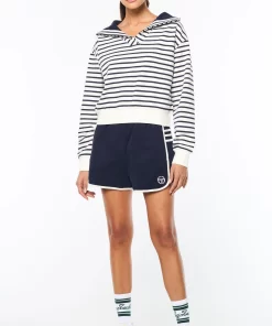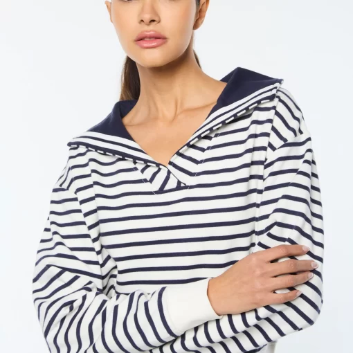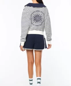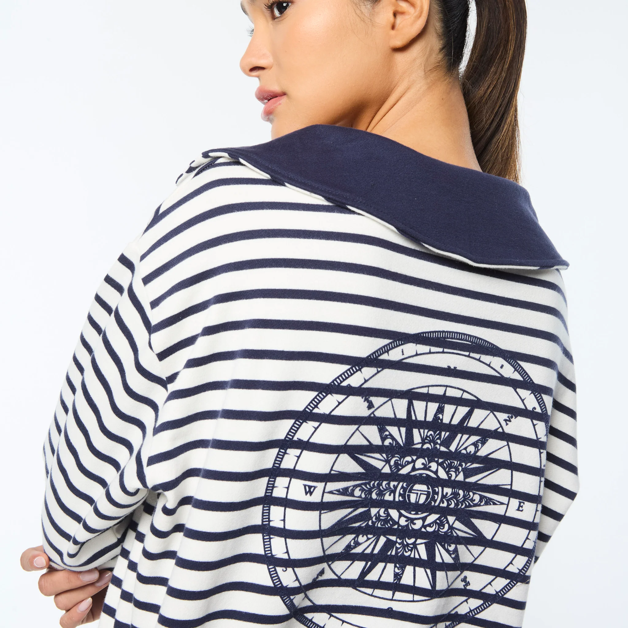 Set sail in the Marina Sailor Collar Sweatshirt, crafted from super-soft French terry cotton with maritime striping for maximum comfort with a nautical vibe. Embodying the spirit of exploration, this seaside-themed sweatshirt is finished with a classic sailor collar and a custom Sergio Tacchini compass rose in textured flocking at the back.
