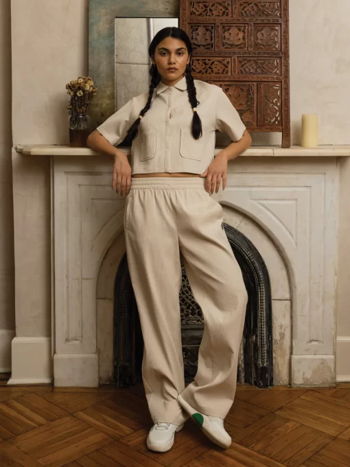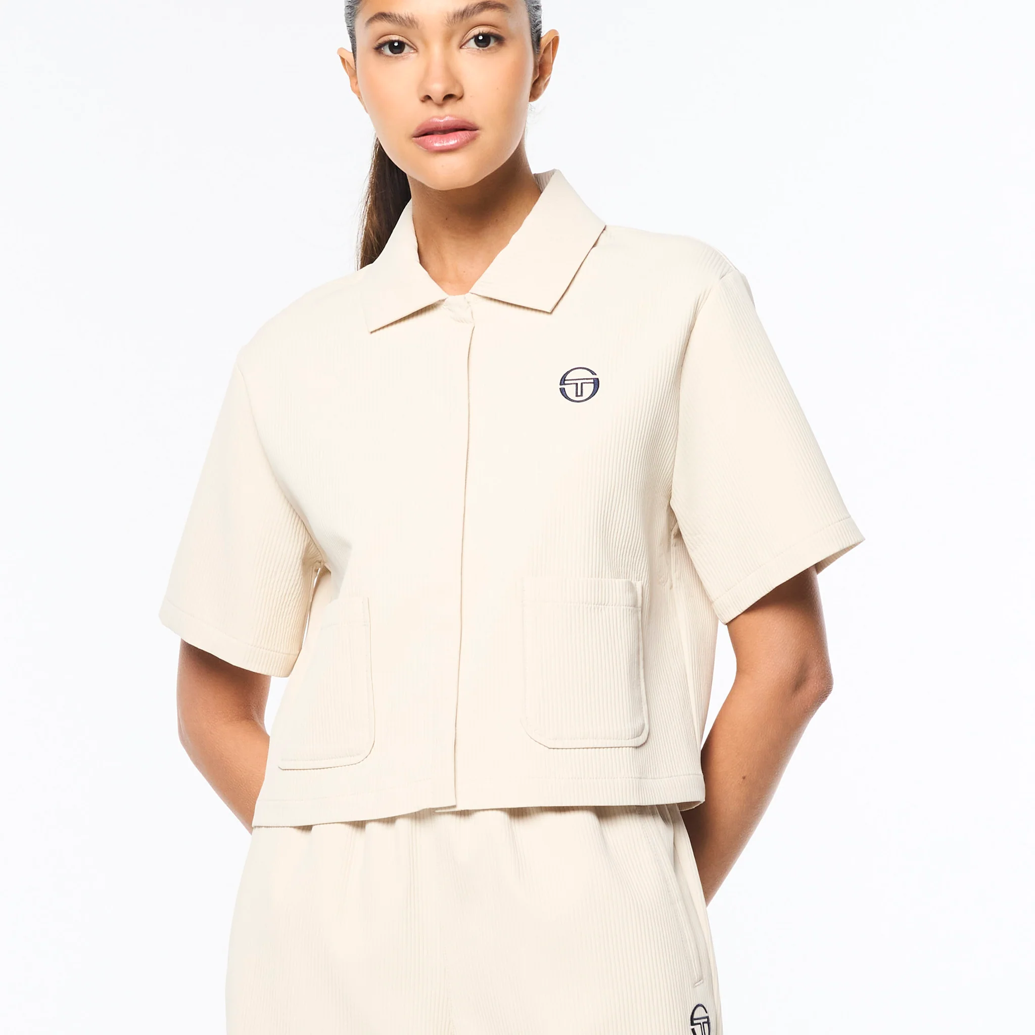 The perfect blend of elegance and comfort. Our Mia Cropped Shirt is crafted from premium mock pleat fabric for a refined look without compromising on softness. Featuring a snap button closure and concealed button placket for a clean finish, this luxurious cropped shirt is complete with two patch pockets at the hem.