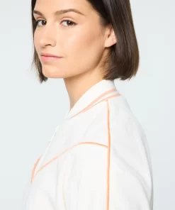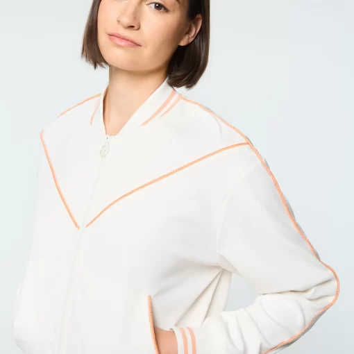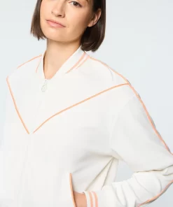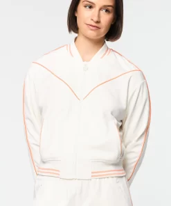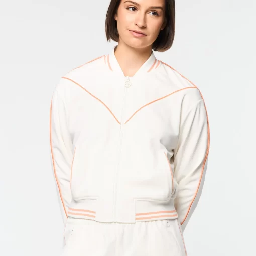 A fresh spin on elevated athleisurewear, the Pavia Twill Bomber Jacket is crafted from performance twill with contrast double stripes at the soft rib-knit trims. Featuring velour piping accents in a chevron shape at the chest and down the sleeves, this sporty full-zip bomber is finished with spacious handwarmer pockets and an embroidered ‘ST’ monogram at the back.