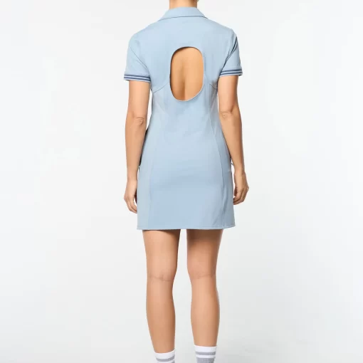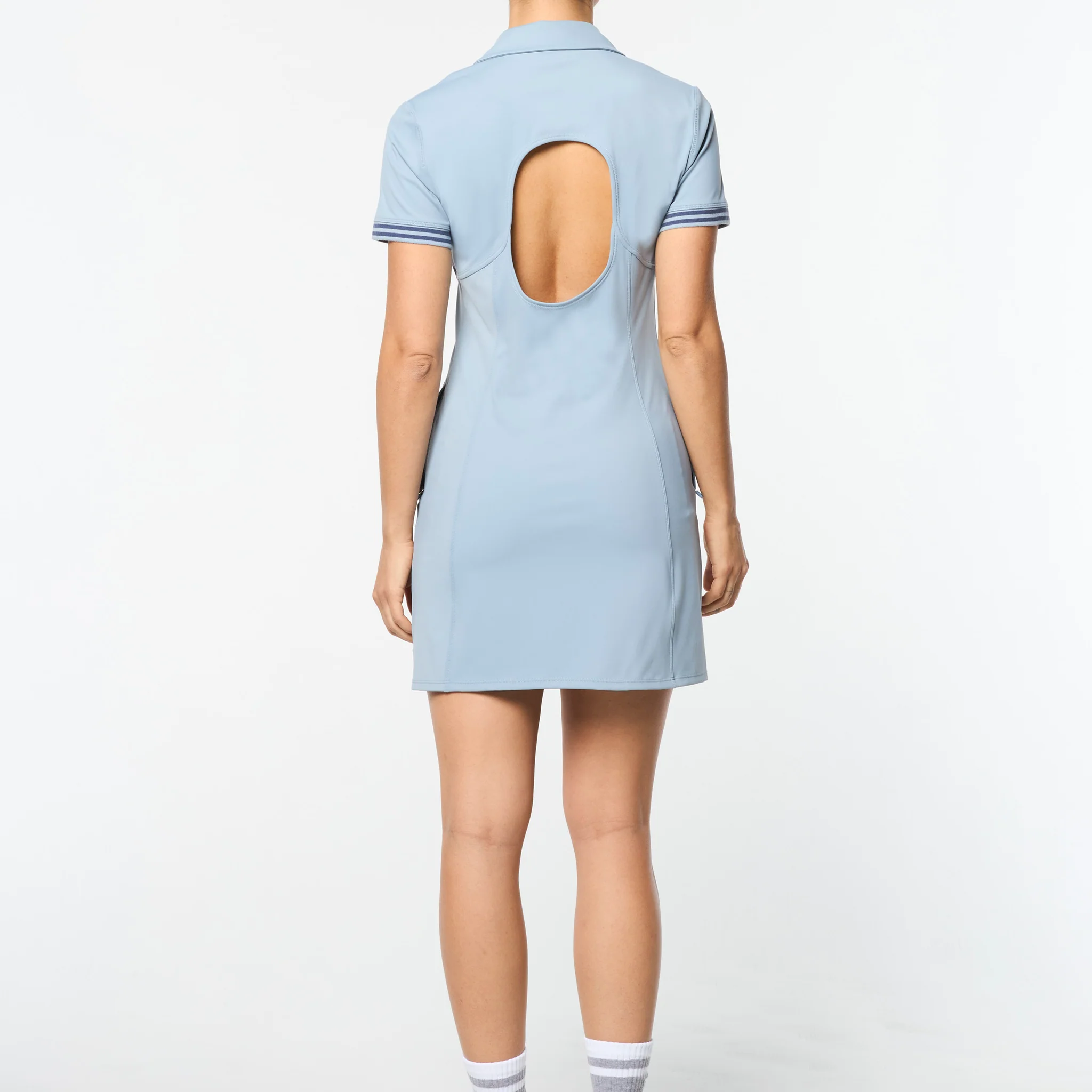 Elevate your fashion game with the Silvia Dress, crafted from buttery-soft performance stretch fabric that’s stylish, practical, and made to move with you through any practice. Topped with a notched lapel collar for a touch of class, this elevated tennis dress features a circle cutout at the back and princess seam detailing down the front making it perfect for evenings out.
