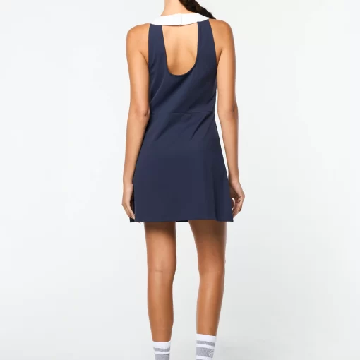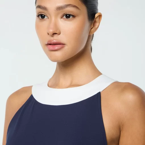 Channel your inner tennis pro with the Tessa Dress, crafted from buttery-soft performance stretch fabric to keep you moving freely and comfortably when practice heats up. Featuring a contrast neckband and scoop back for a flattering fit, this elevated athleisure dress is finished with an ‘ST’ monogram at the hem.