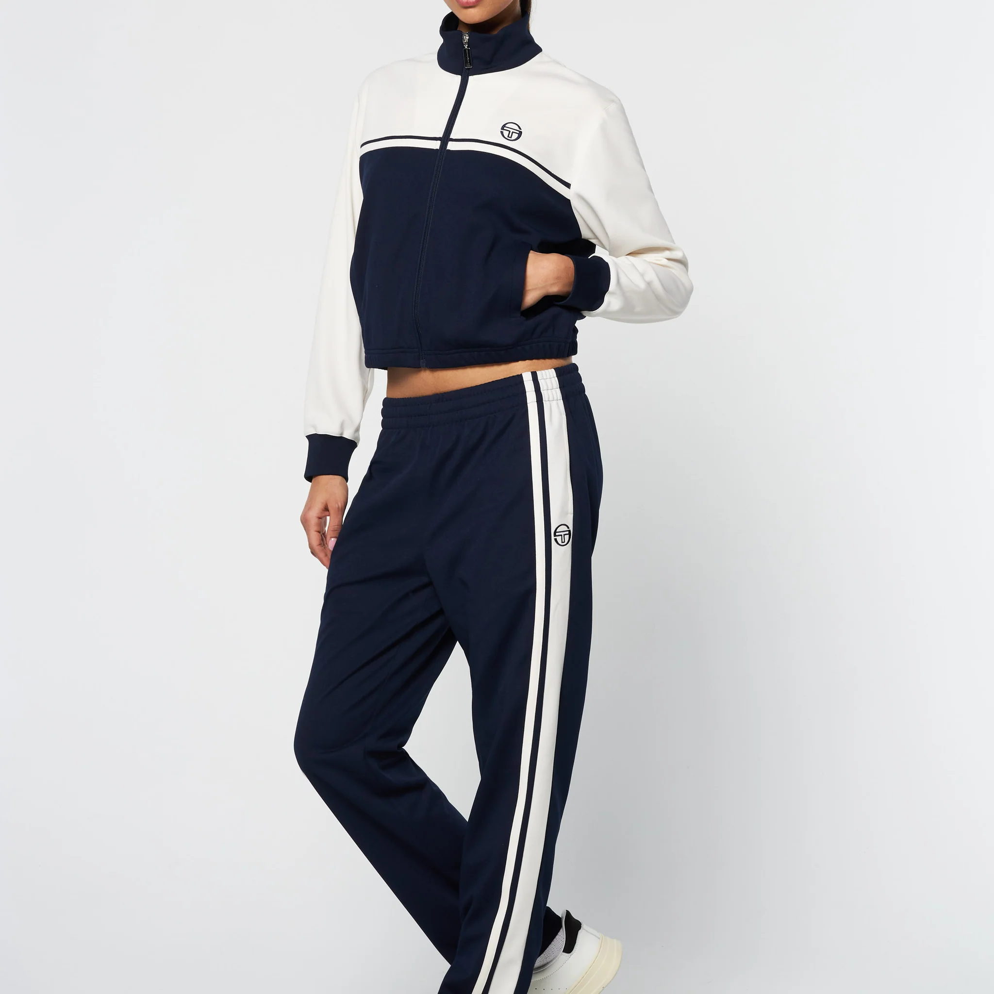 A for-her spin on retro sportswear, the Vasto Track Jacket is crafted from sturdy twill in a color-blocked silhouette to keep you looking good from the court to the streets. Cut cropped with an elastic hem, this easy-to-style track jacket is complete with spacious pockets and our iconic ‘ST’ monogram logo embroidered at the chest.