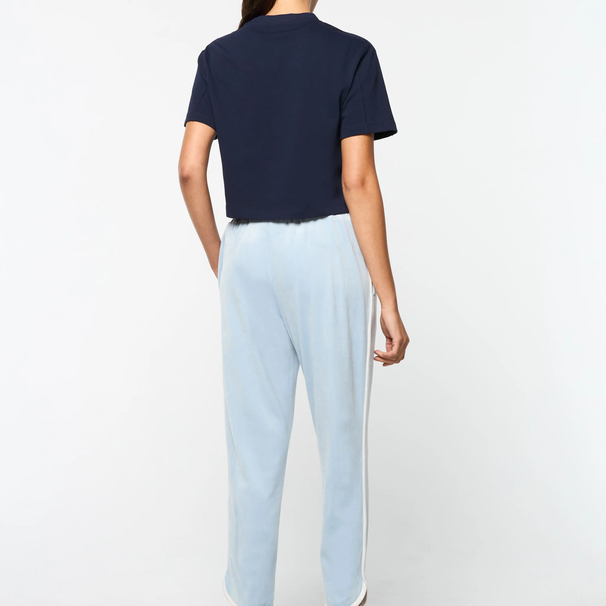Crafted from ultra-soft velour, the Veneto 3/4 Track Pant features a plush chenille ‘ST’ monogram patch and contrast binding accents for a playful twist on varsity athletics and cheerleader fashion. A comfy wardrobe staple, these luxe 3/4-length pants are part of our seasonal “New Ivy” capsule—a contemporary take on collegiate prep aesthetics.
