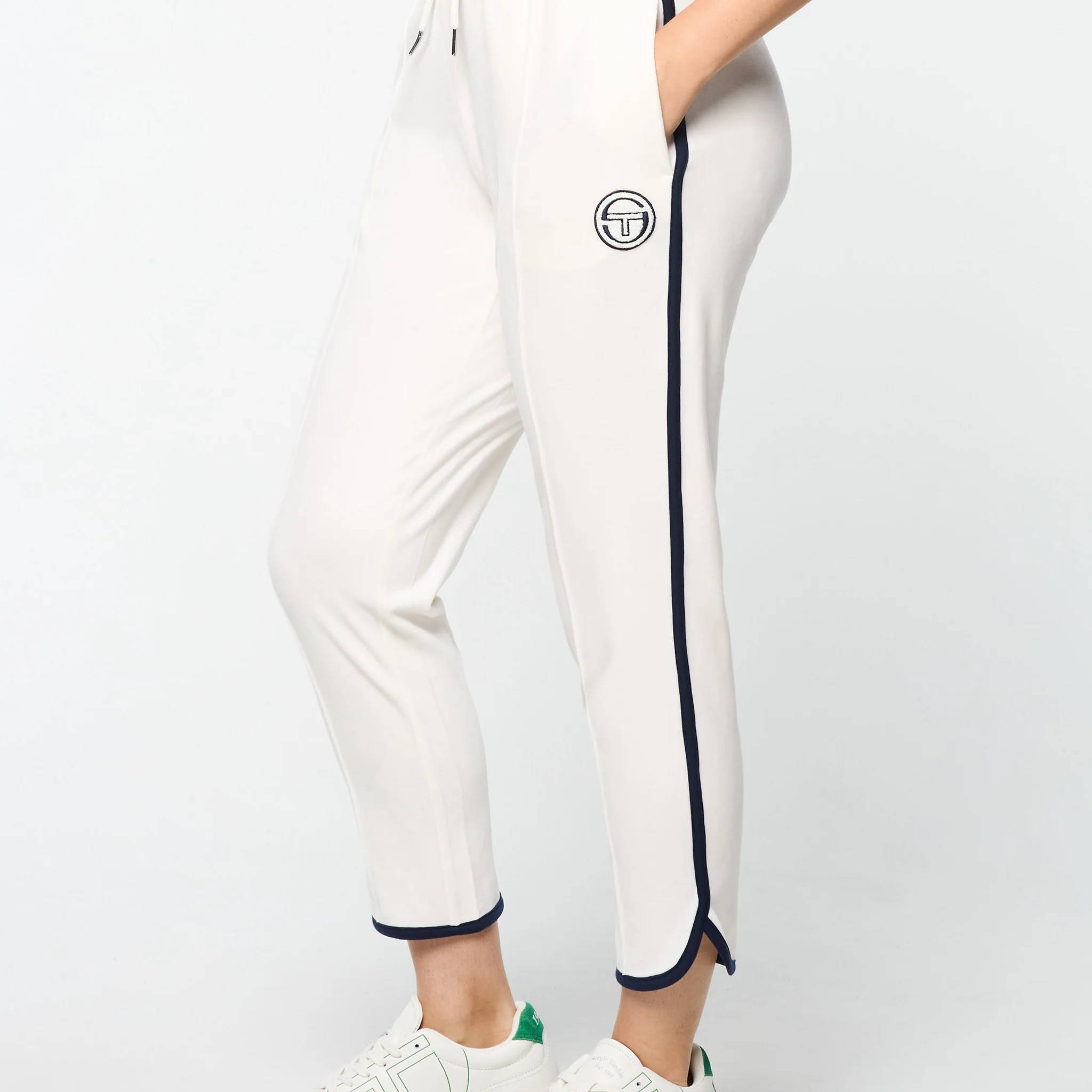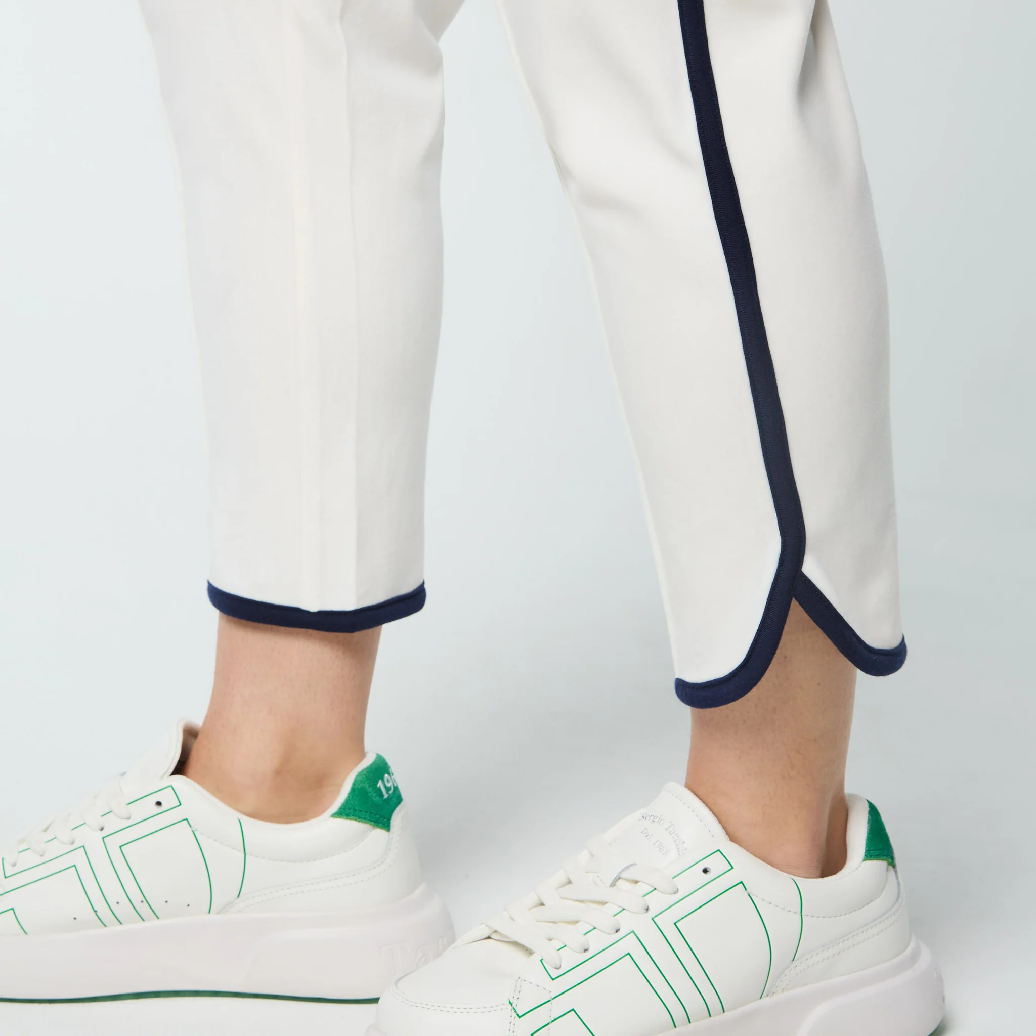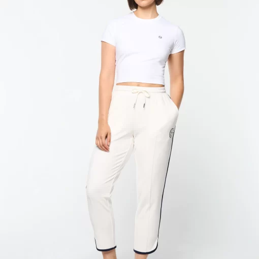 Crafted from ultra-soft velour, the Veneto 3/4 Track Pant features a plush chenille ‘ST’ monogram patch and contrast binding accents for a playful twist on varsity athletics and cheerleader fashion. A comfy wardrobe staple, these luxe 3/4-length pants are part of our seasonal “New Ivy” capsule—a contemporary take on collegiate prep aesthetics.