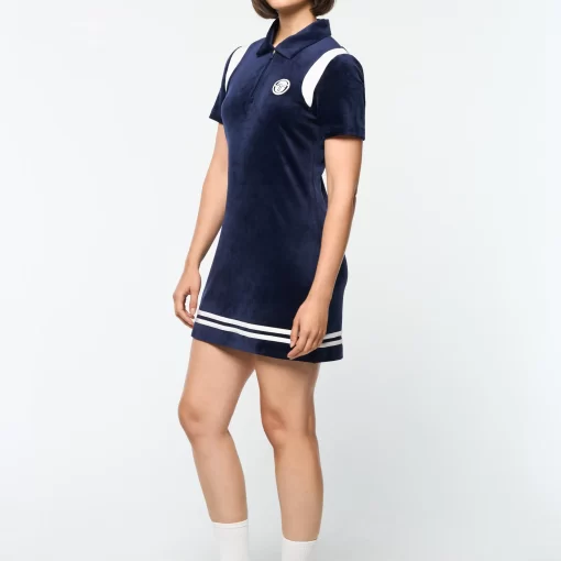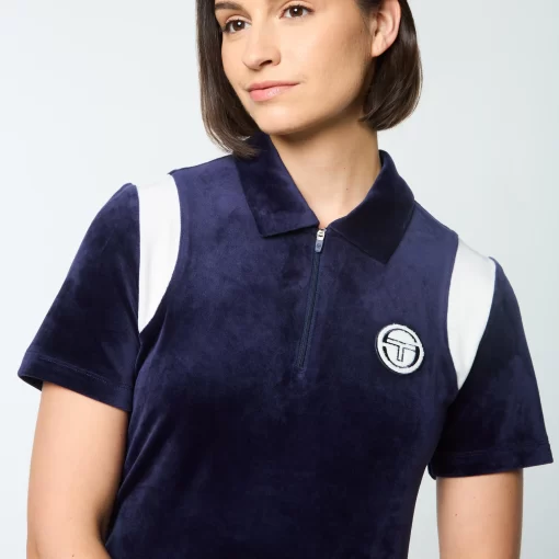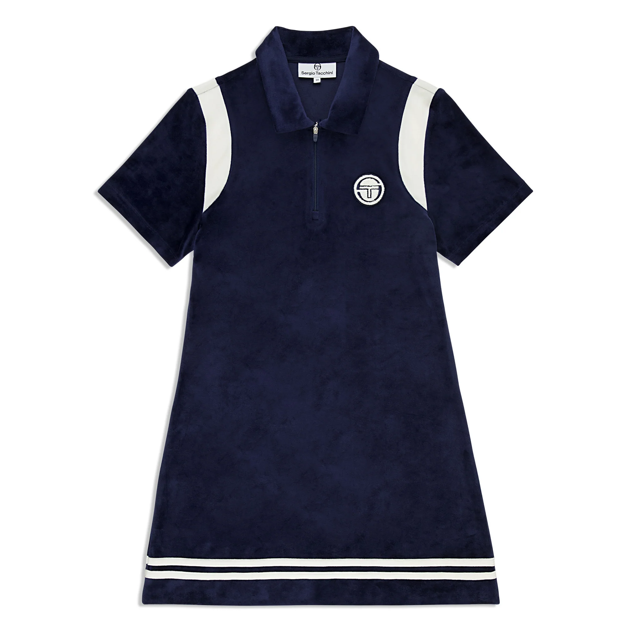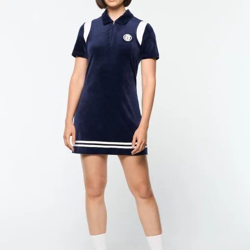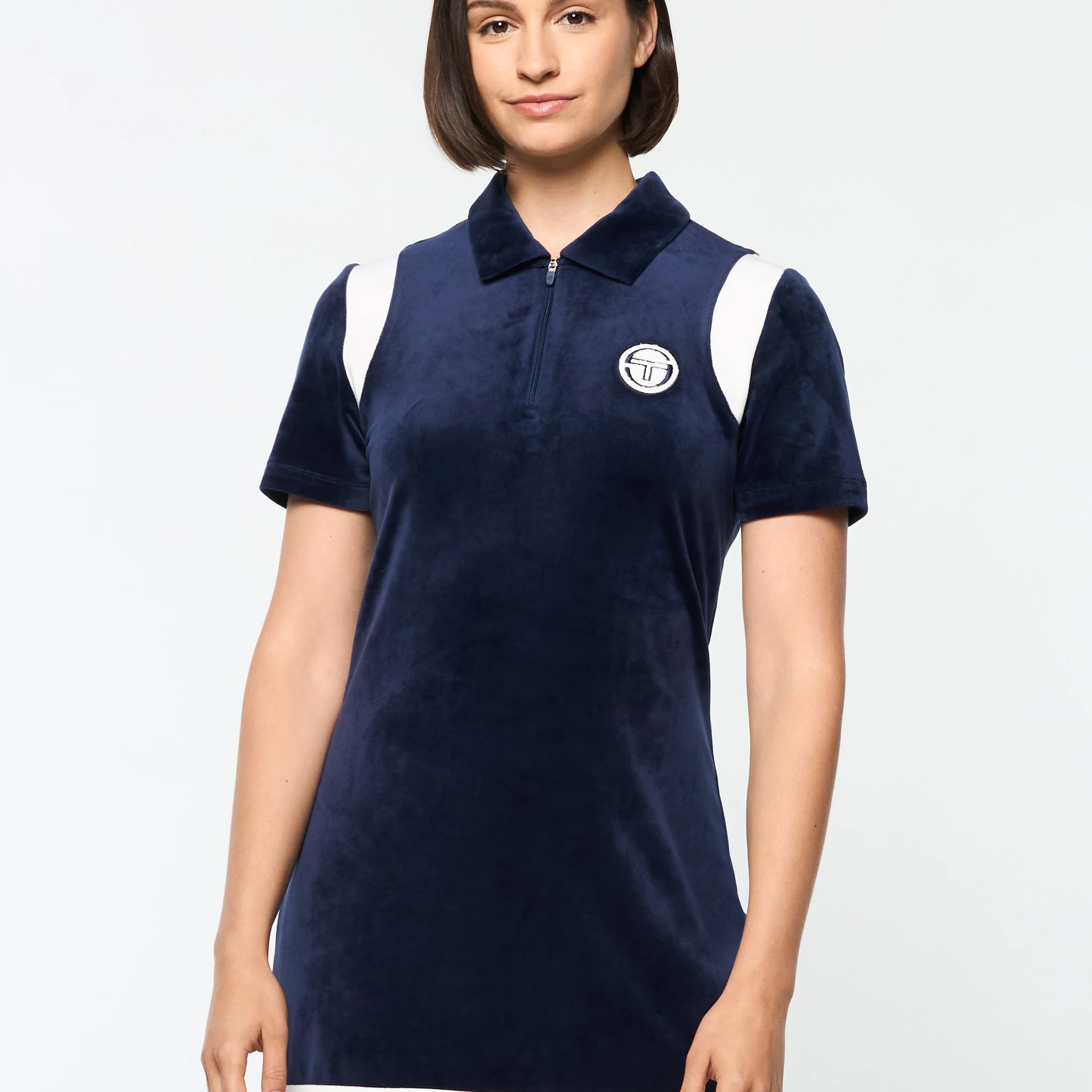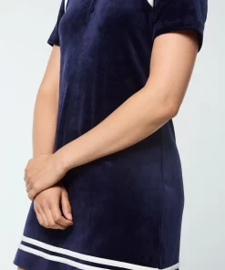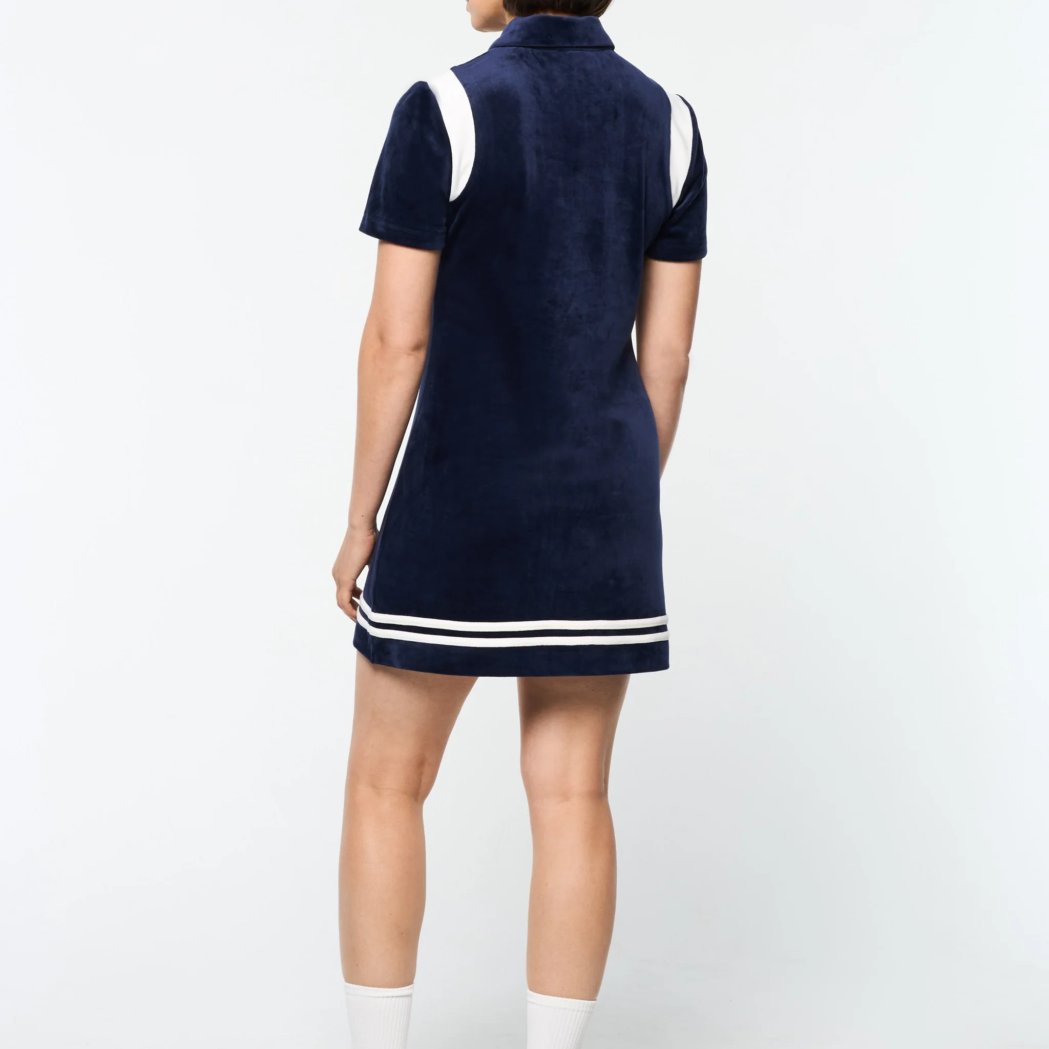 Crafted from ultra-soft velour, the Veneto Polo Mini Dress features a plush chenille ‘ST’ monogram patch and contrast stripe accents for a playful twist on varsity athletics and cheerleader fashion. Topped with a zip placket for easy venting, this luxe dress is part of our seasonal “New Ivy” capsule—a contemporary take on collegiate prep aesthetics.