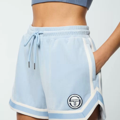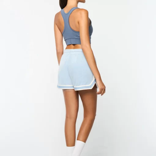 Crafted from ultra-soft velour, the Veneto Short features a plush chenille ‘ST’ monogram patch and contrast striping accents for a playful twist on varsity athletics and cheerleader fashion. Complete with a comfy drawstring waistband and a retro notched hem, these luxe shorts are part of our seasonal “New Ivy” capsule—a contemporary take on collegiate prep aesthetics.