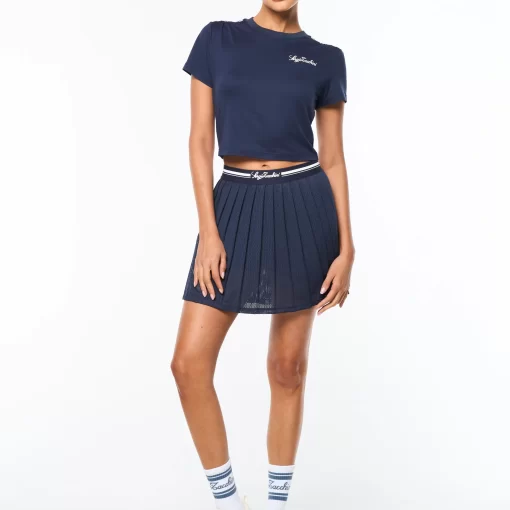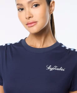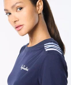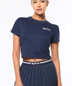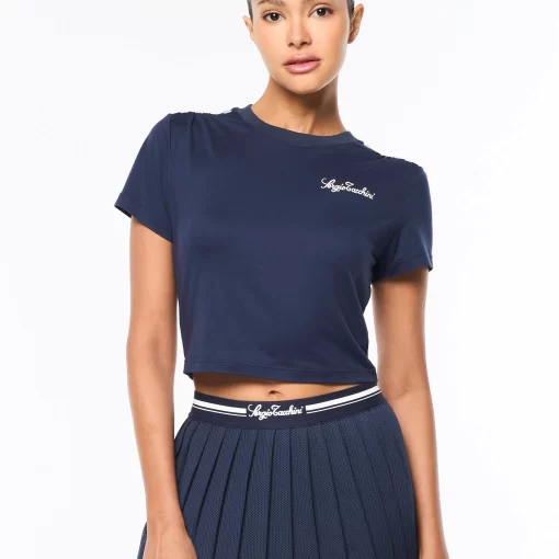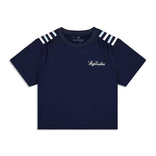 An elevated staple that transitions seamlessly from the court to your everyday. Our Verona Crop Top is crafted from buttery-soft performance stretch fabric that’s perfect for working out and casual wear. Featuring pop color stripe taping at the shoulders, this cropped form-fit tee is finished with a Sergio Tacchini script logo at the left chest.